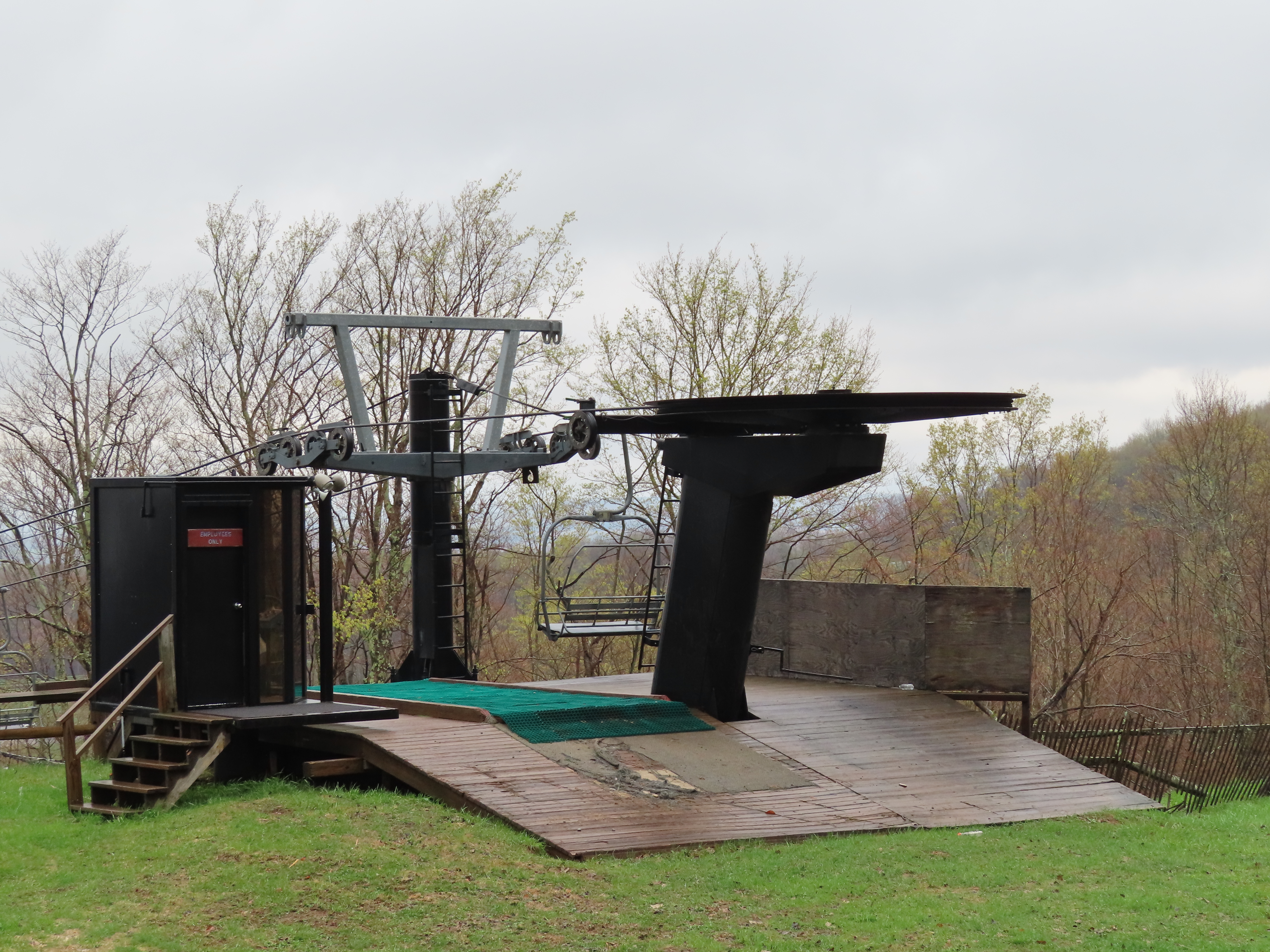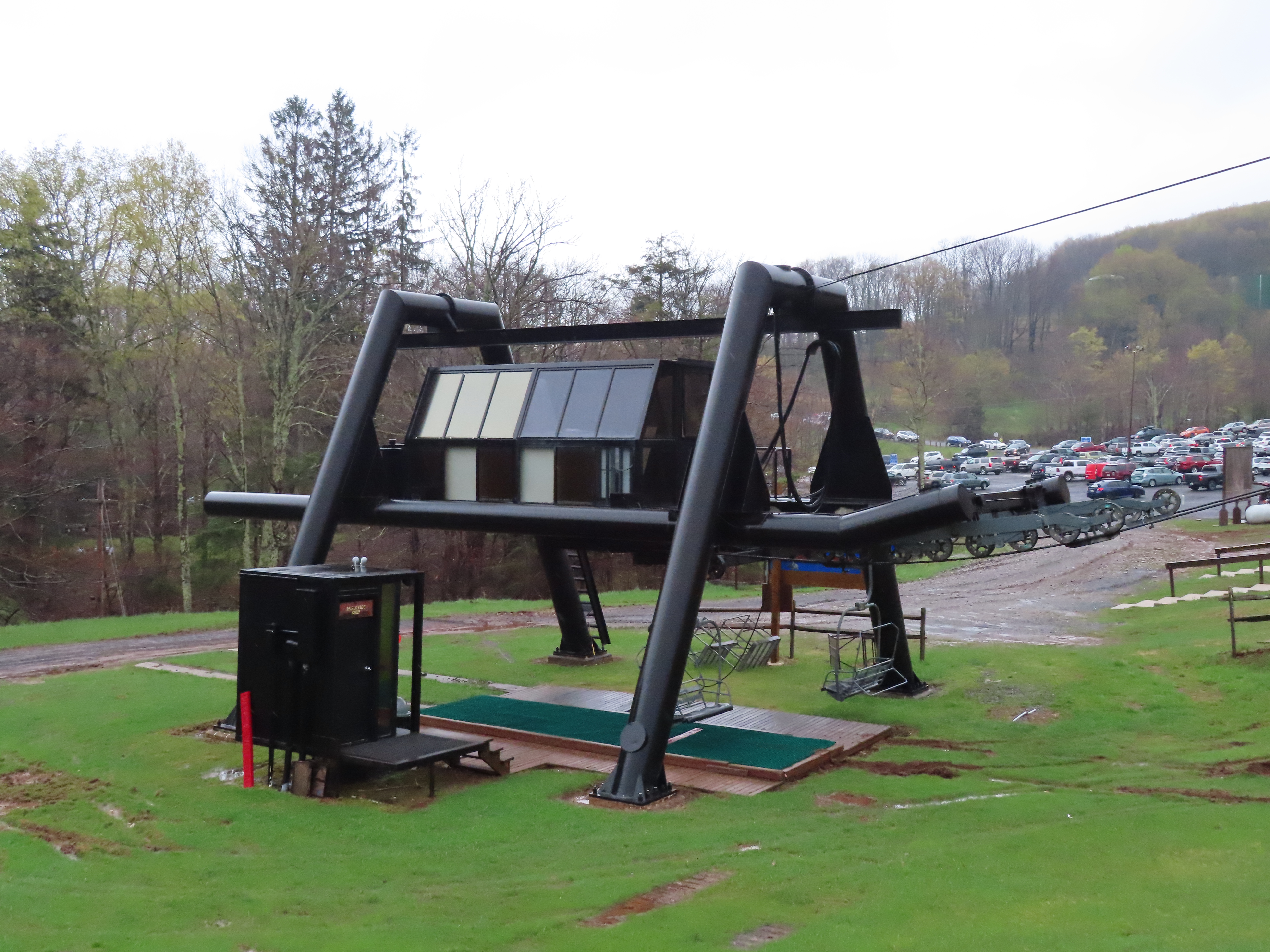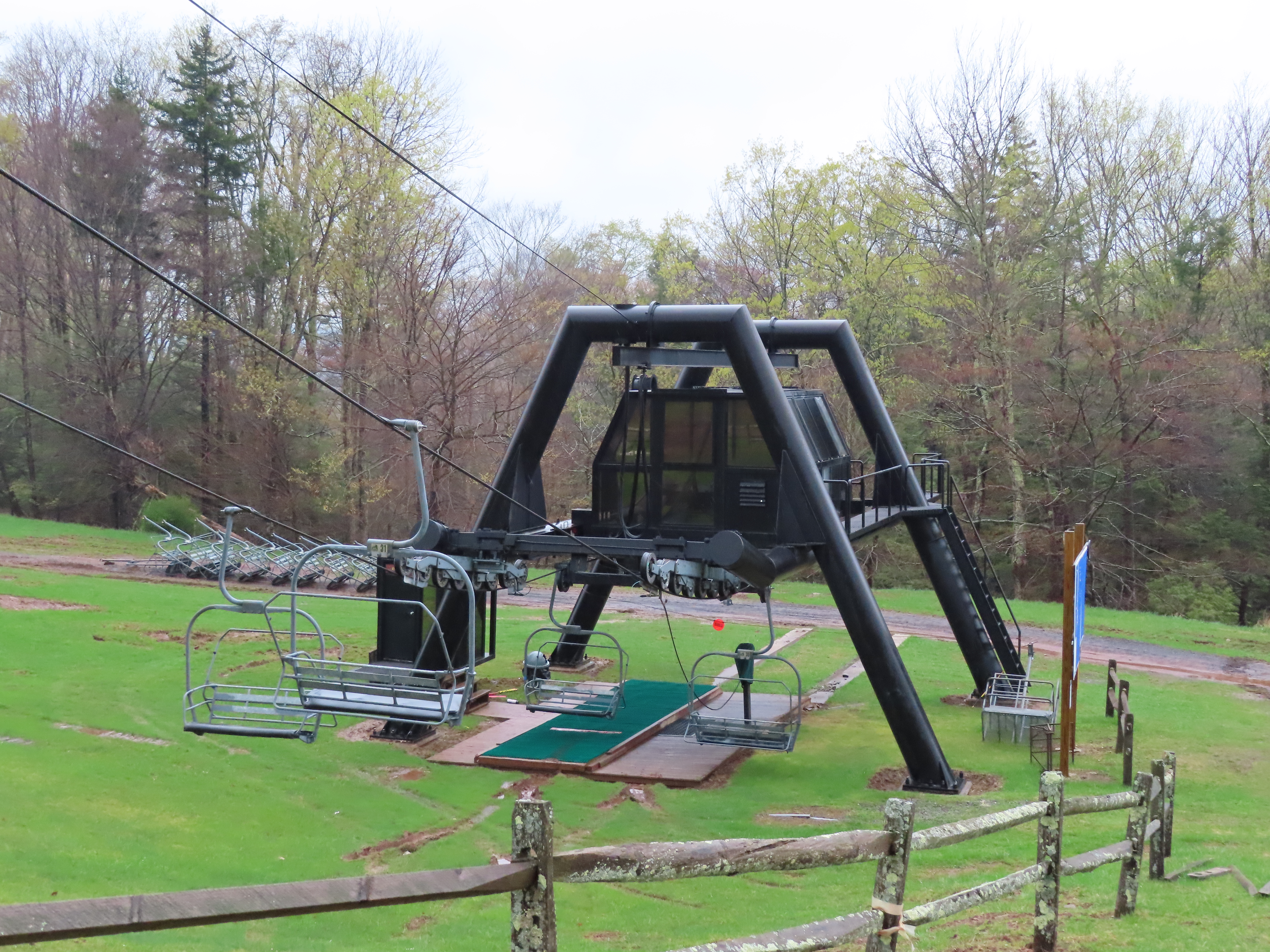 The beginner lift at Canaan is one of three CTEC fixed grips built in the mid 1980s.Enterprise model bottom station.View up the line.Uphill side of the bottom station.Orion top station.Doppelmayr added galvanized lifting frames to the old CTEC towers.View down from the summit.