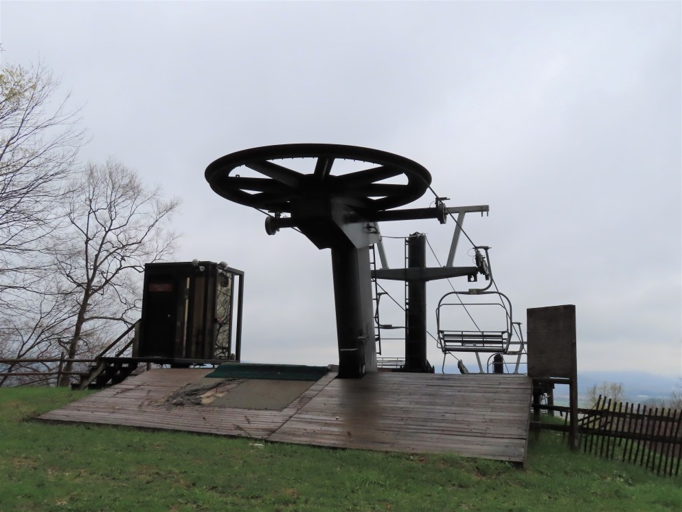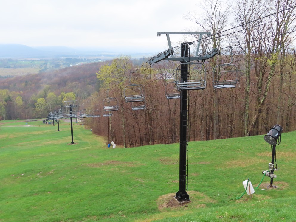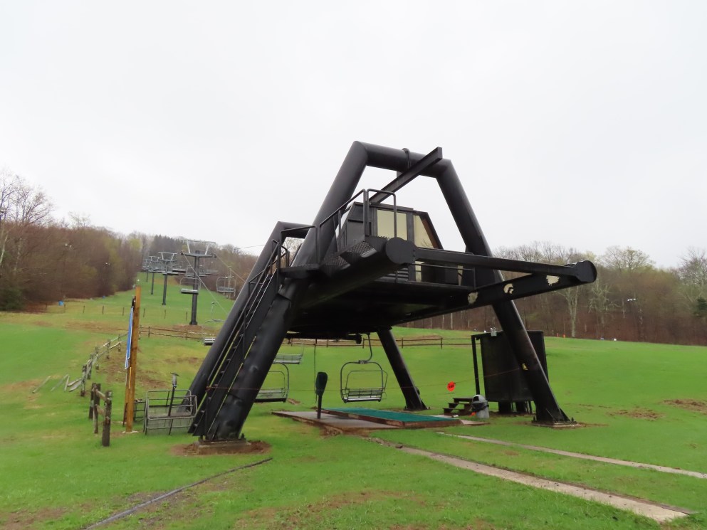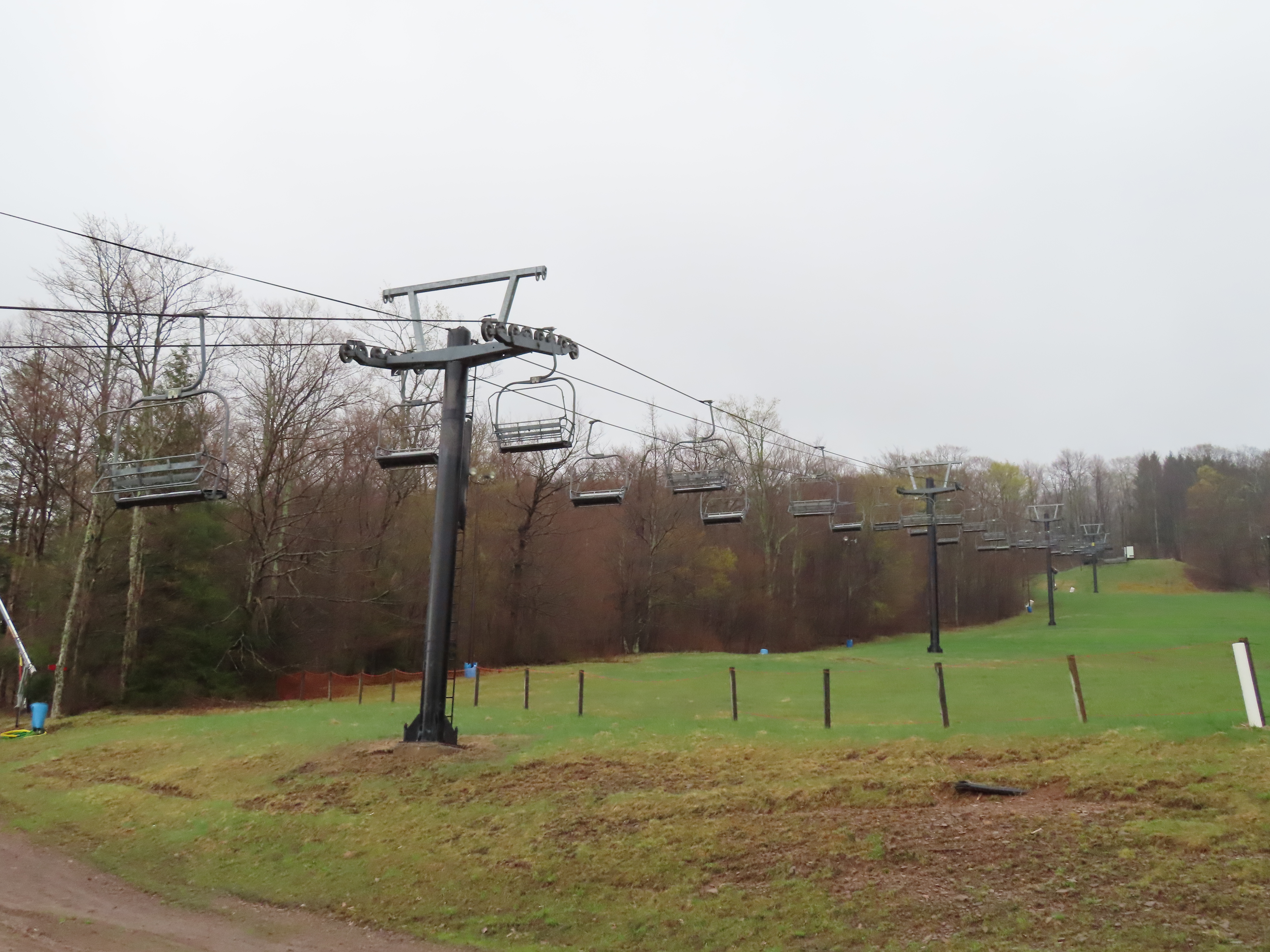 The beginner lift at Canaan is one of three CTEC fixed grips built in the mid 1980s.Enterprise model bottom station.View up the line.Uphill side of the bottom station.Orion top station.Doppelmayr added galvanized lifting frames to the old CTEC towers.View down from the summit.