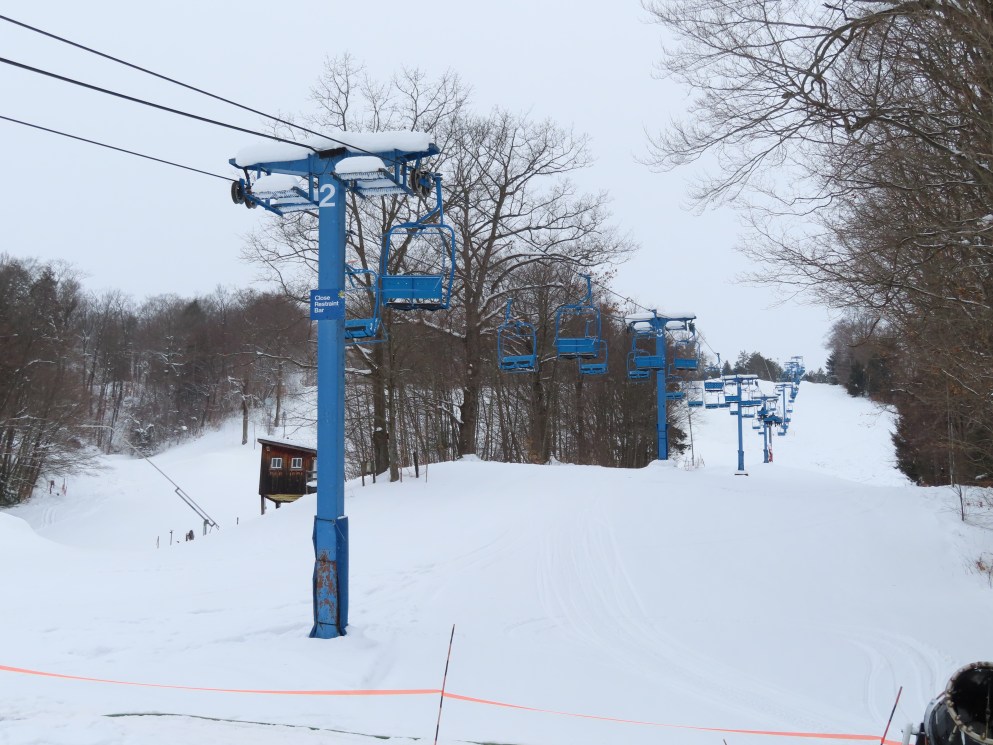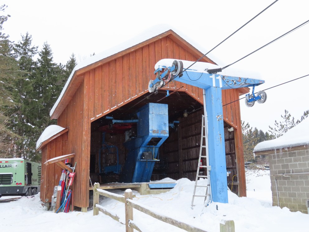 This double serves what used to be a separate ski club of the same name.Bottom terminal and portal tower 1.Lift overview.A Borvig tower head.View back down the line.The top terminal building.Lower lift line.Hold down tower 6.The first three towers.Unloading point at tower 10.