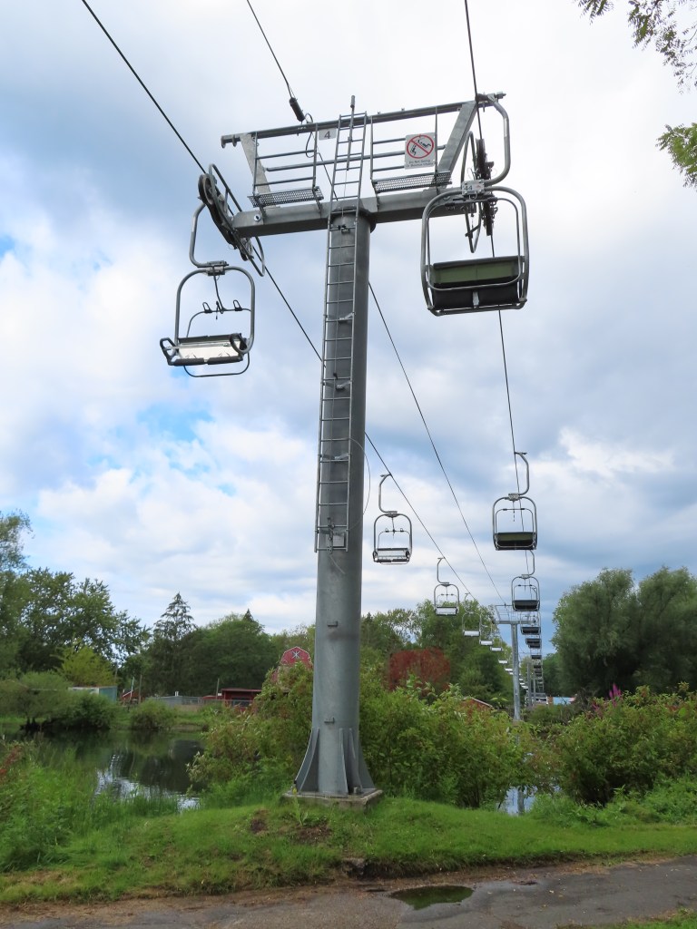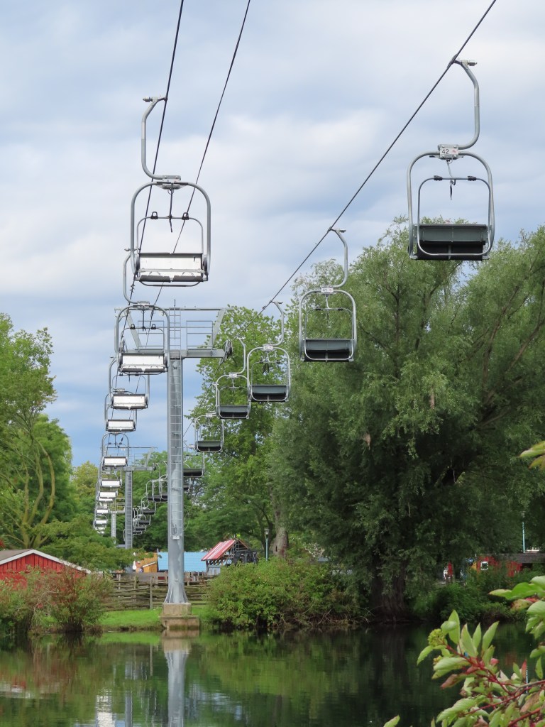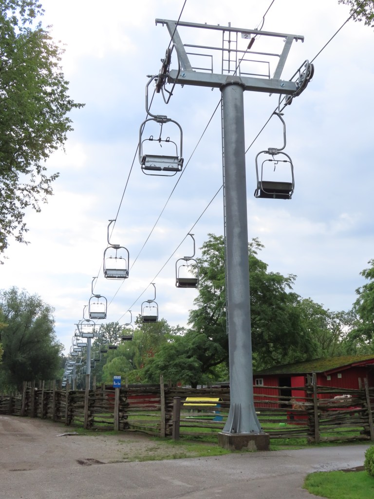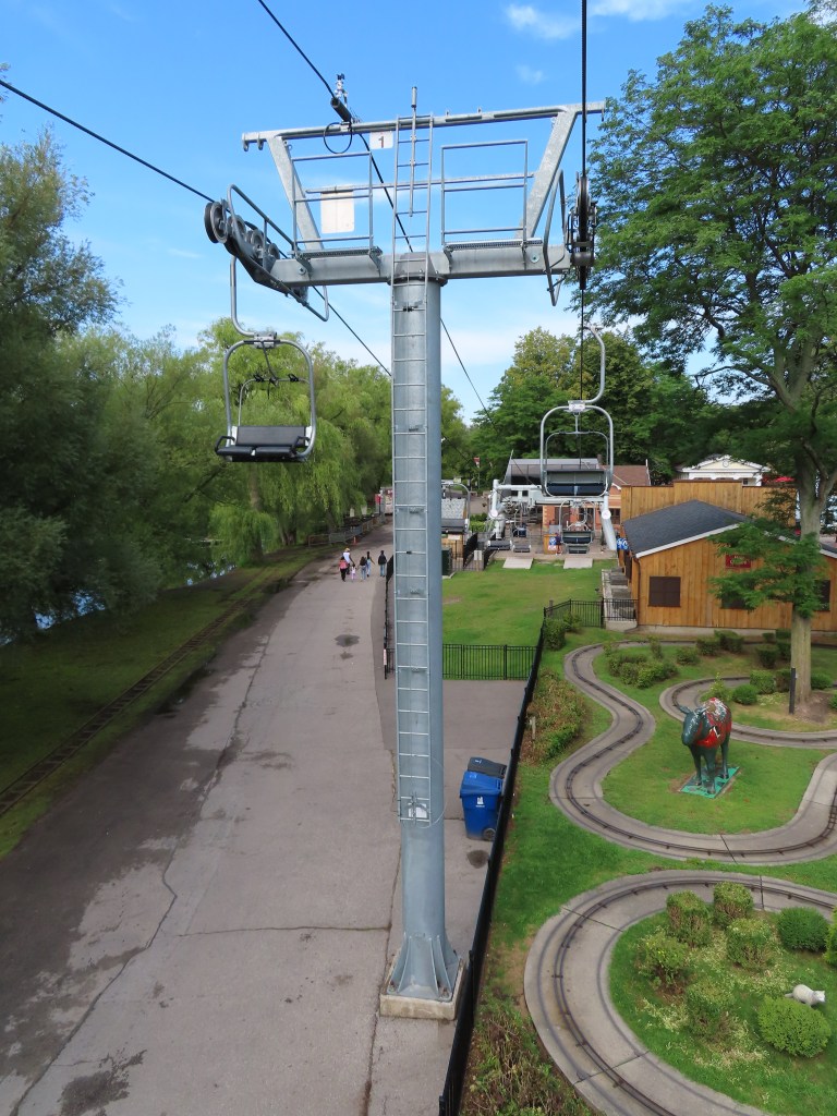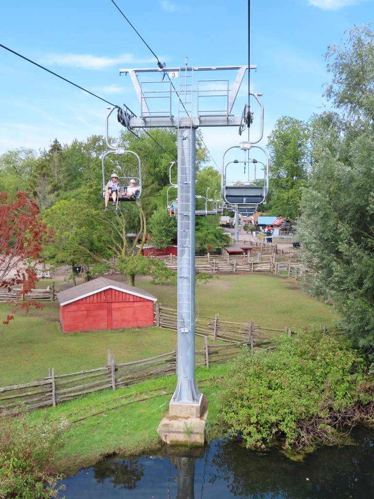 This rare Leitner-Poma double chair services and amusement park in the summer months.The lift replaced another double chair in 2016.The line is only five towers long.T4.Tower 5 is right next to the return terminal.Riders stay on board around the bullwheel.There is extra guidage due to the bullwheel riding.The lift crosses between two of the Toronto Islands and requires a ferry ride to get to.T5 and the east terminal.Combo assembly.Alpha drive station.The part of the lift line on Centre Island.Riding around the bullwheel on Ward’s Island.Riding over a small farm.Tower 1.Arriving at the loading station.