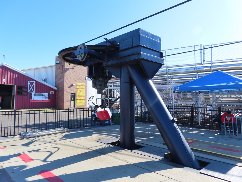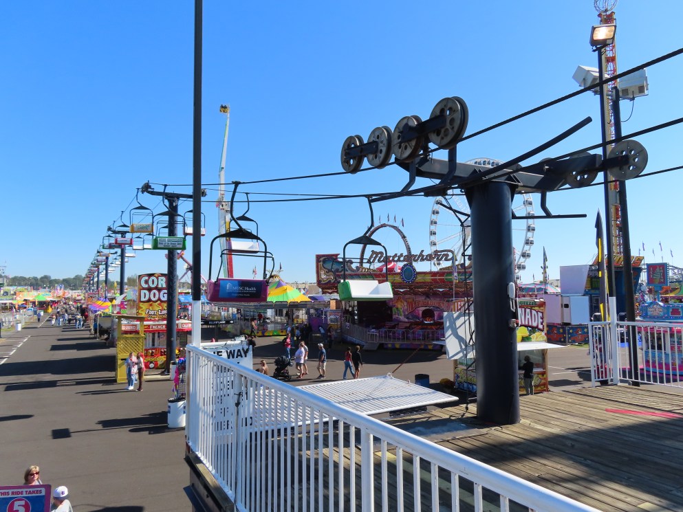 This skyride was originally located at Olympic Park in Chili (pronounced “CHeye-leye”, I do not know why), NY. It was an out-and-back with fake balloons on the hangers.