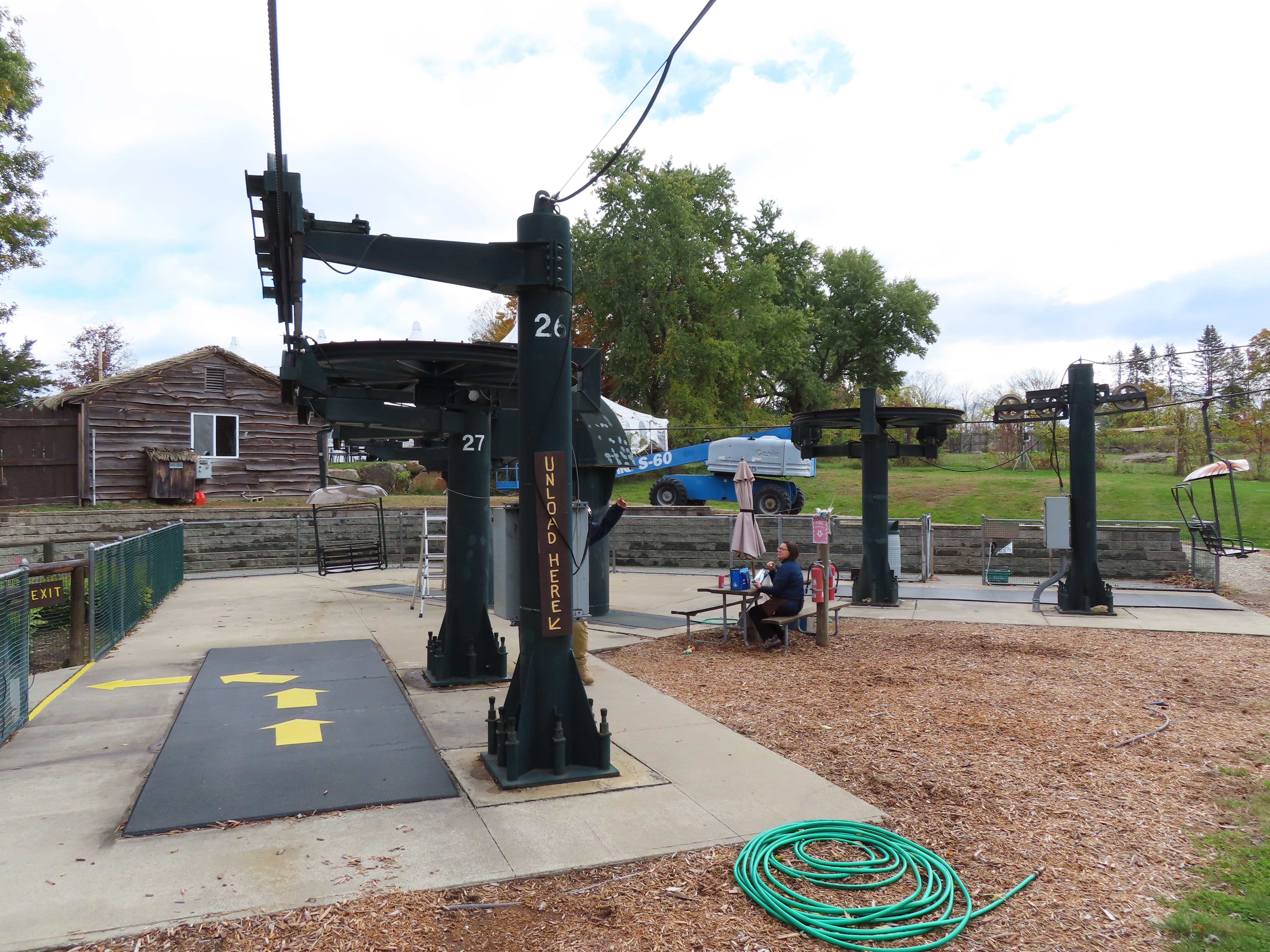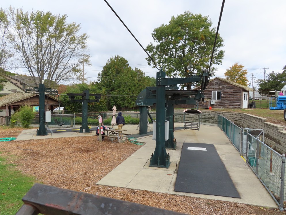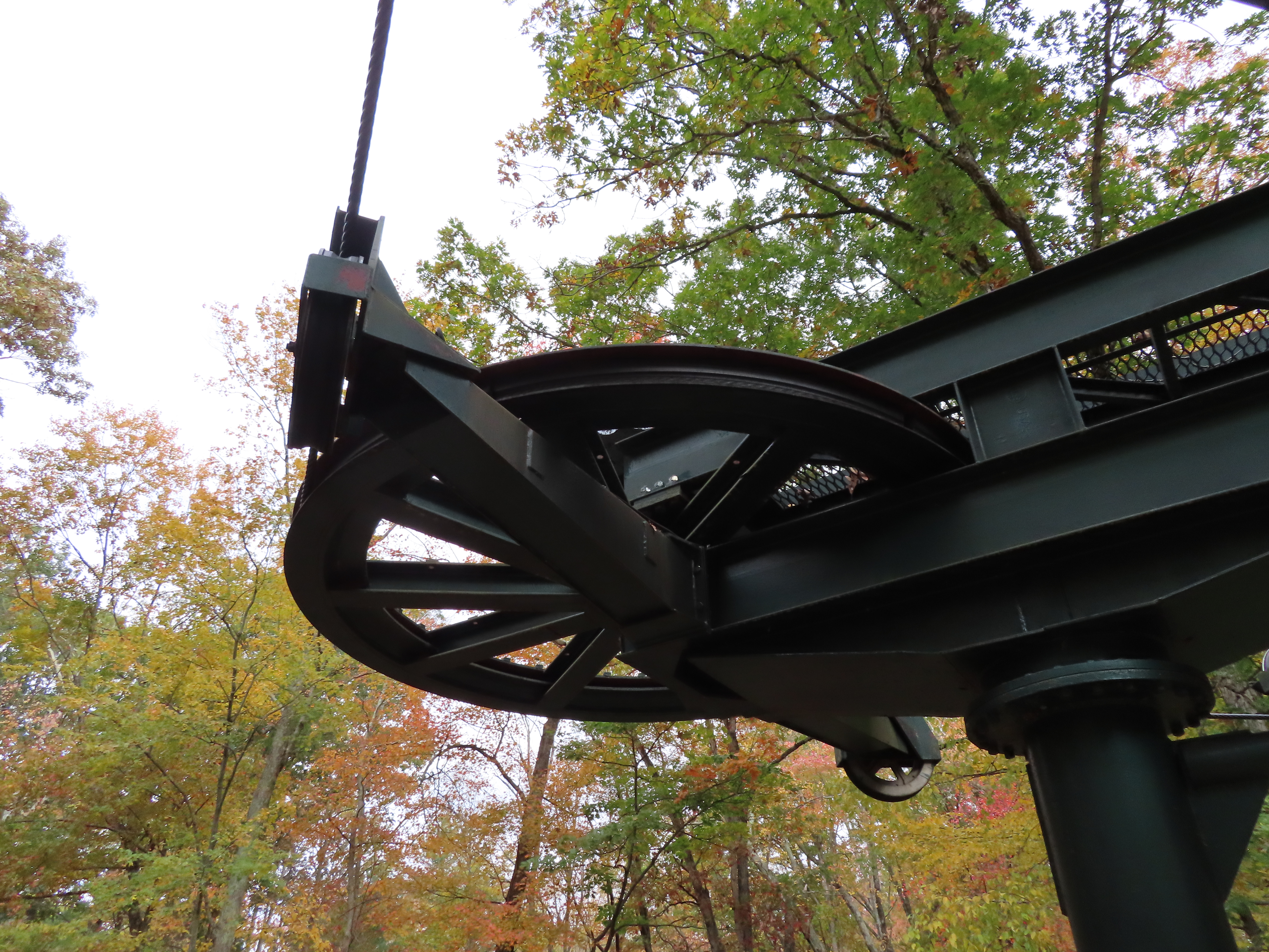 There is one other triangular skyride in Mexico (J.M. Romo), a Hopkins, that is tensioned by two bullwheels at the drive station. One is driven and the other one isn’t. Each one rides on its own tension carriage.