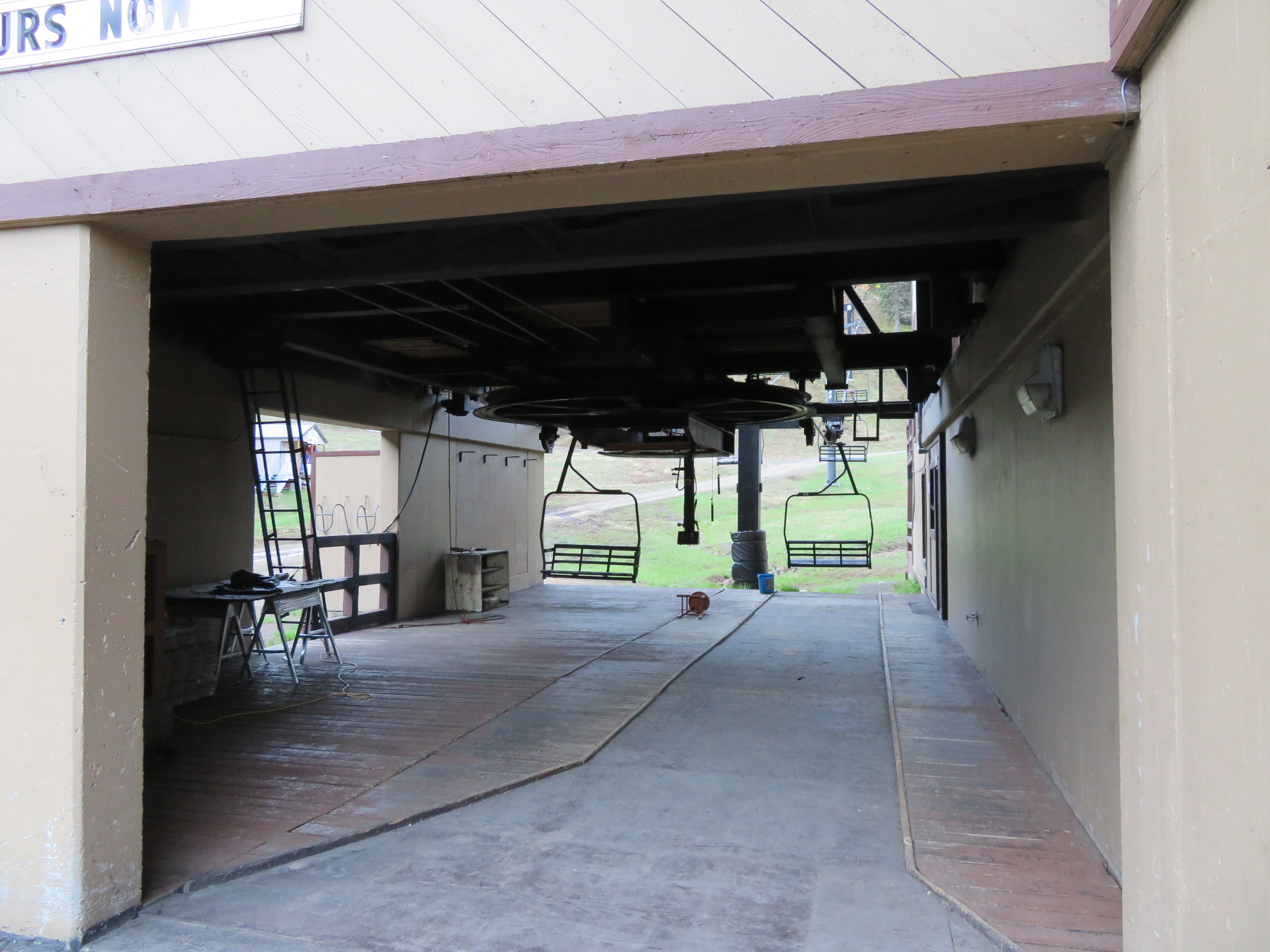 I was at Bluewood today, and Skyline Express was definitely hauling more than 600 skiers per hour, even with frequent stopping. I’m guessing that 600-passenger figure in the table is probably because they removed 2/3 of the chairs for summer ops… there’s a sign in that building that says downloading is limited to every third chair. I didn’t time it, but it seemed like today the chairs were coming every 9-10 seconds or so.