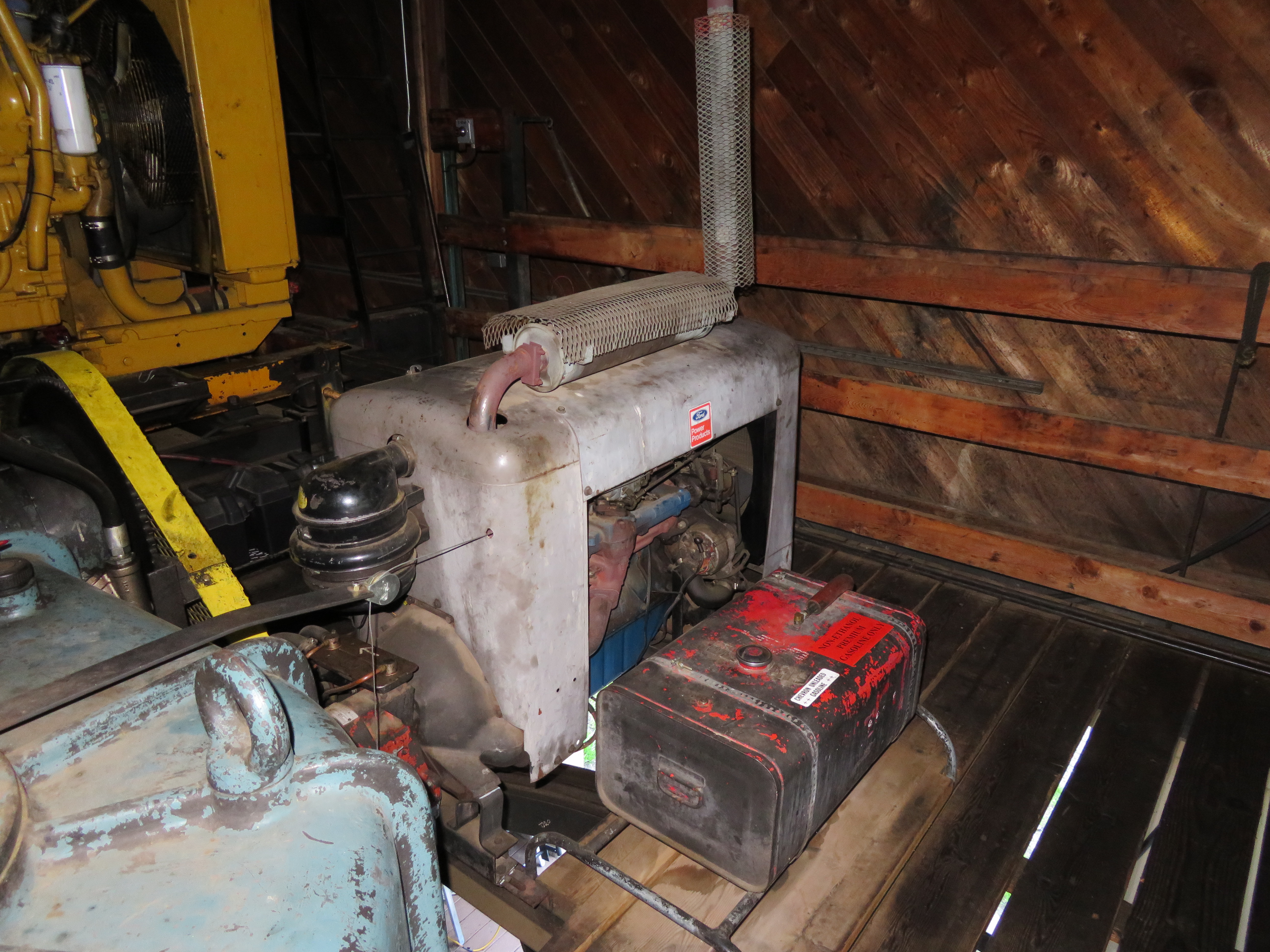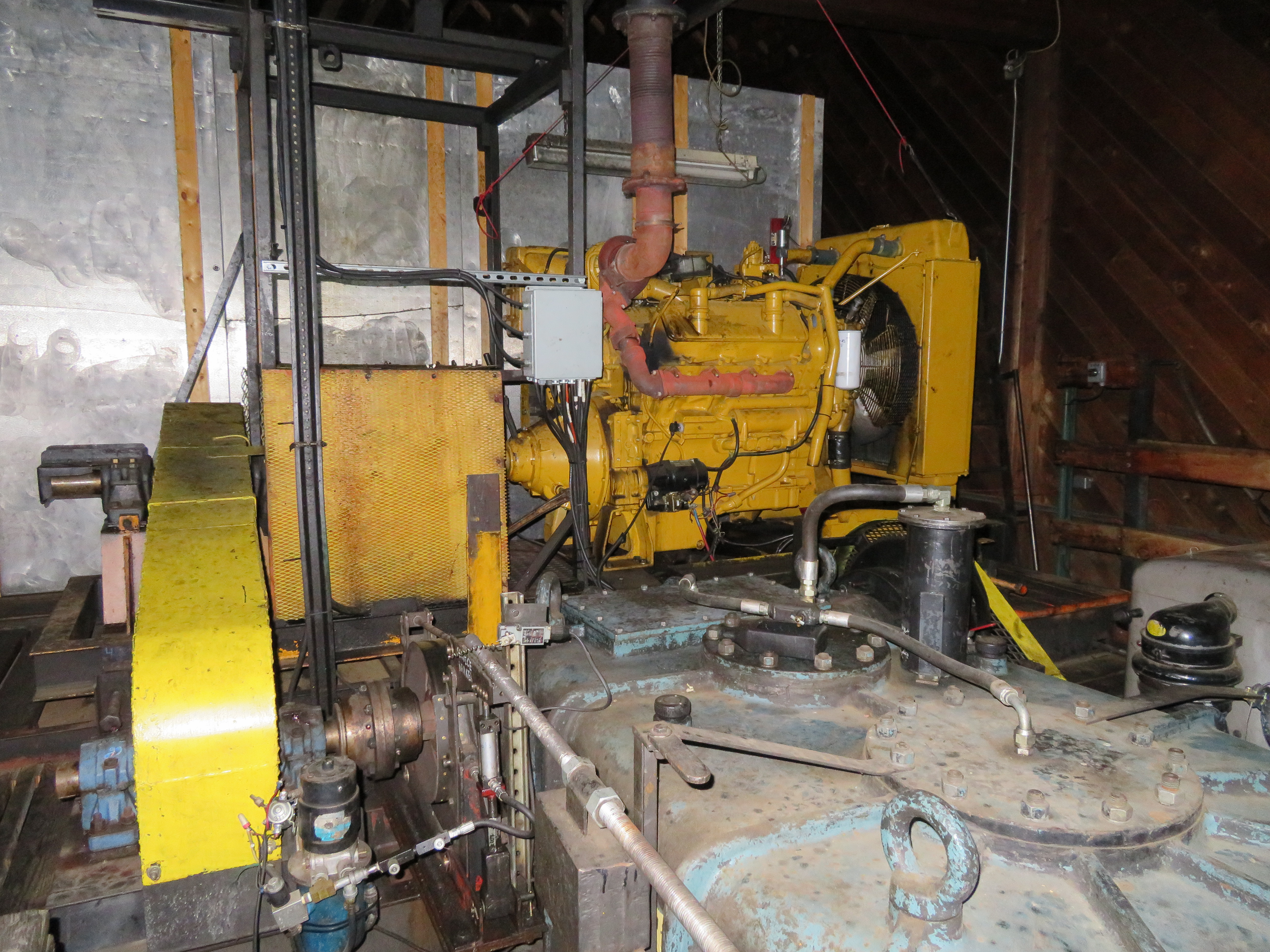 From 1978 to 1986, Skyline Express was the only lift at Bluewood. The drive terminal was built into the base lodge.Loading area inside building.Hand-operated brake and controls behind.Leitner gearbox. There is no electric motor, just a diesel prime mover and gasoline backup.,Cat diesel.Ford gasoline aux.Bottom terminal building.View up the lift line.Middle part of the line.Looking down around the middle of the lift.Depression tower 12.Another view down line.Nearing the top.Summit overview.Breakover towers.Top “snowflake” bullwheel.First few towers at the base area.Lift overview.