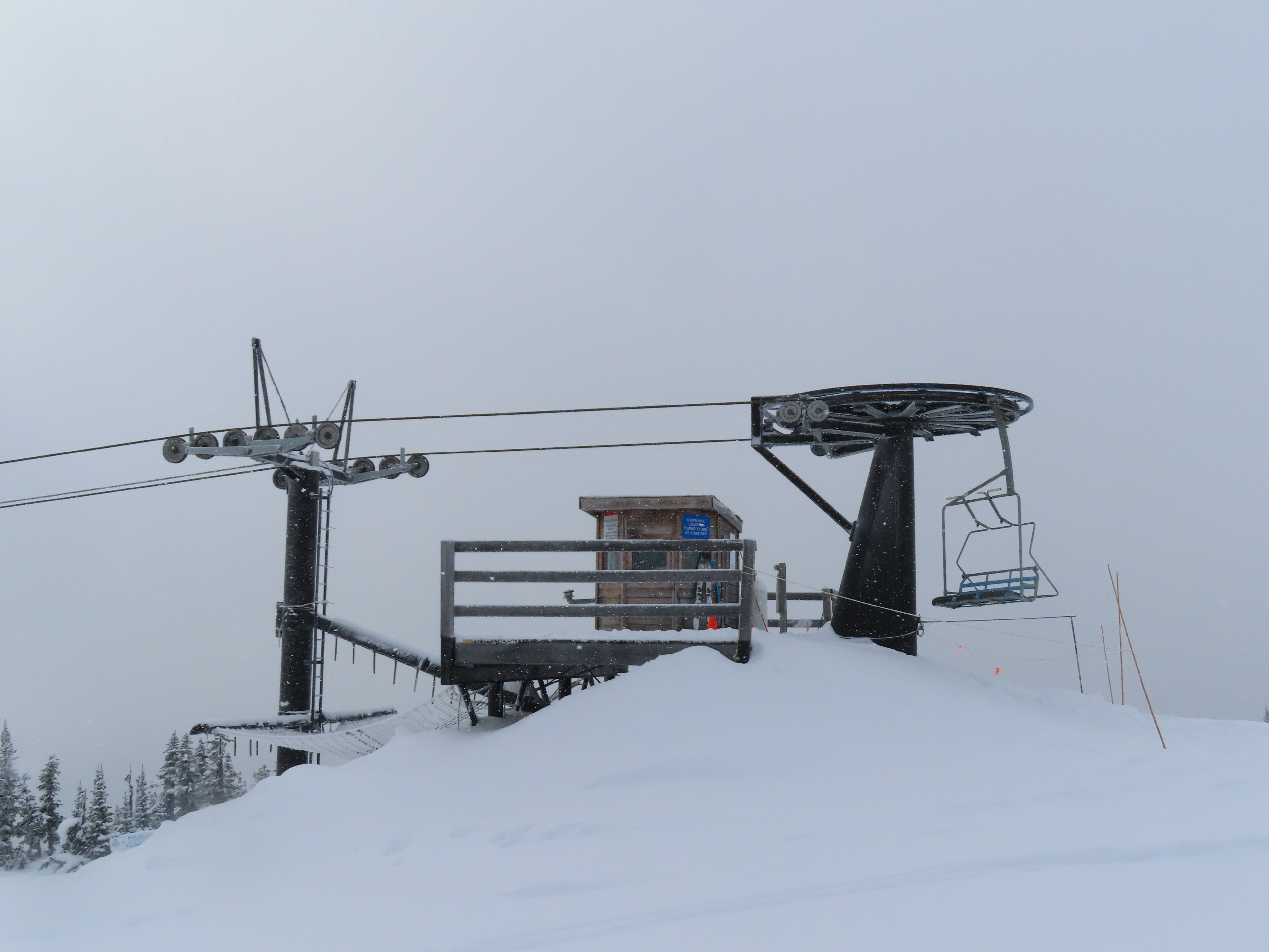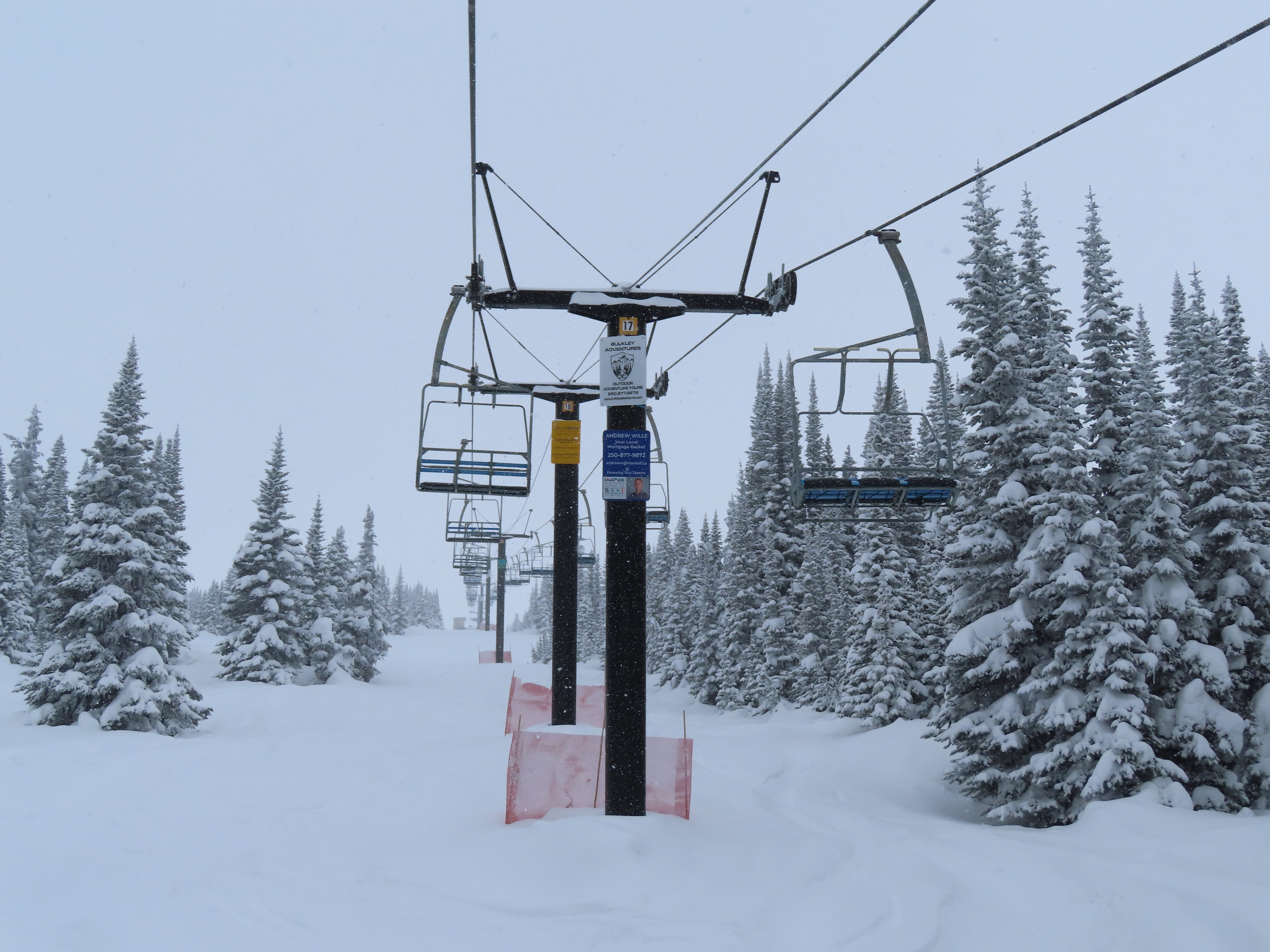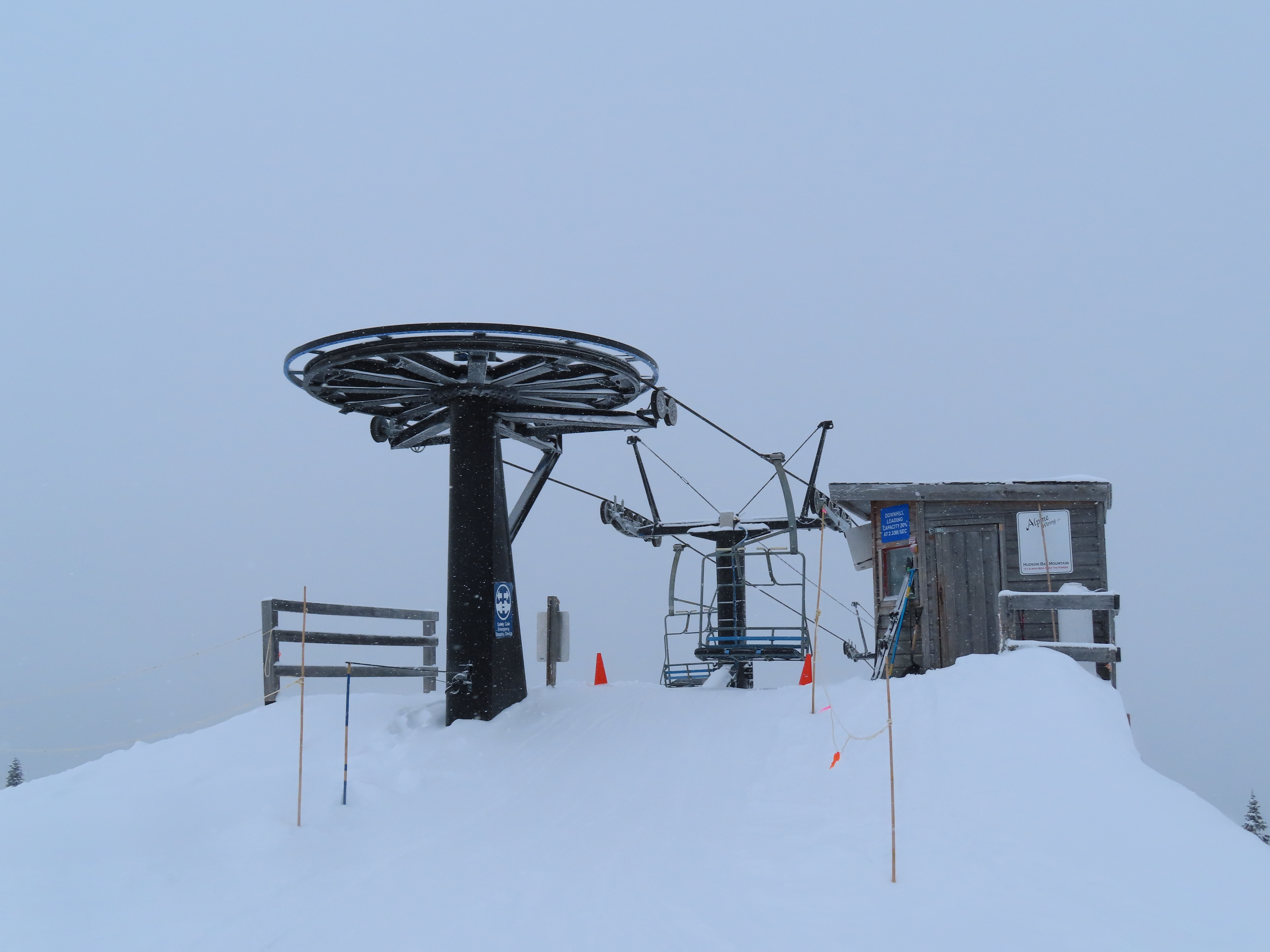 This lift is the newest at HBM as of 2023, even though it is 43 years old.Loading area and long lift alignment.View up the line.Drive-tension station.Terrain pod seen from the town of Smithers.Upper station overview.Side view of the top terminal.View from the summit.This is the only lift at Smithers entirely below tree line.Upper lift line.View down.Tower 3.View riding up at tower 17.Late model Mueller chair and grip.Upper station with fixed bullwheel.