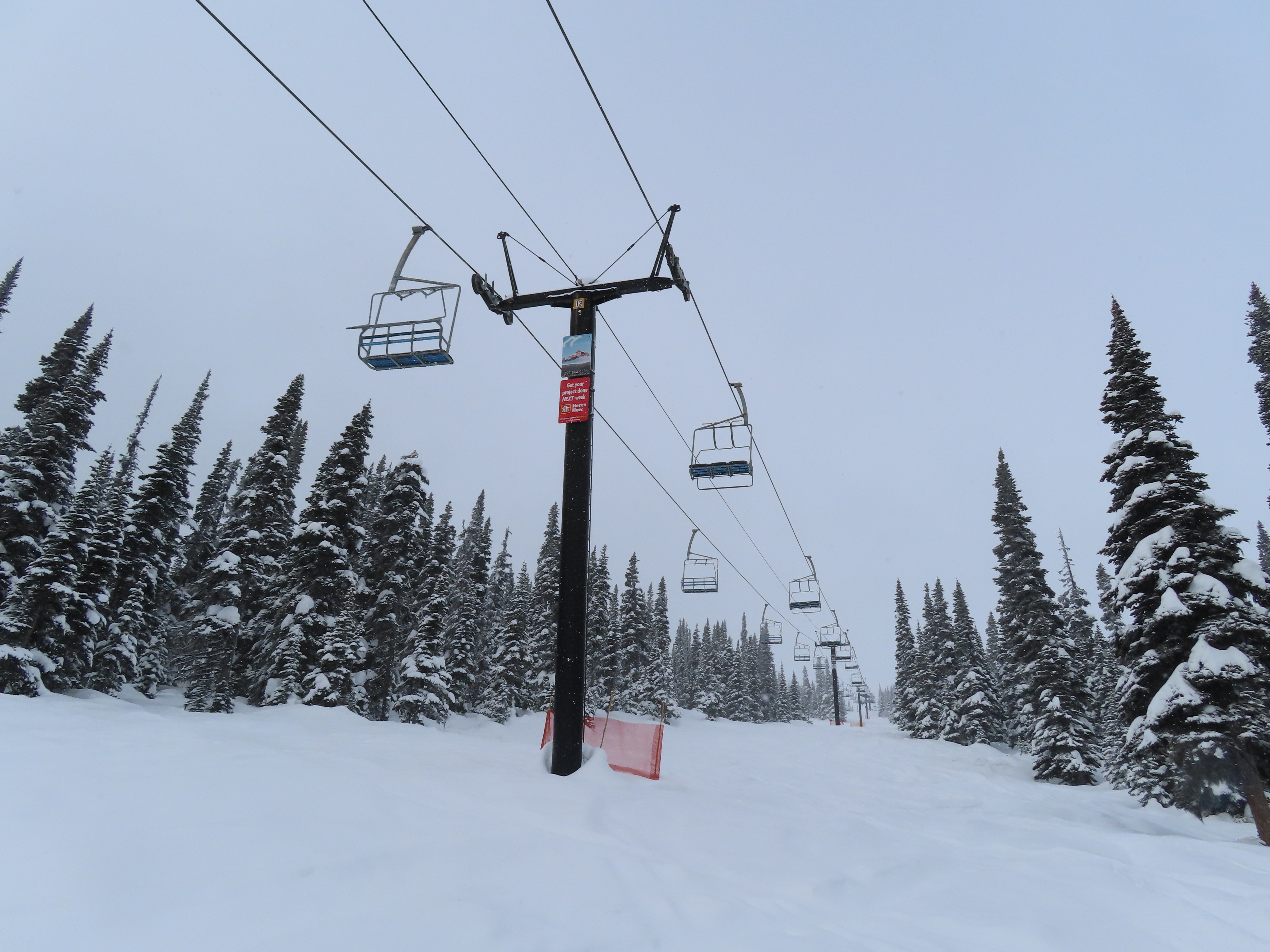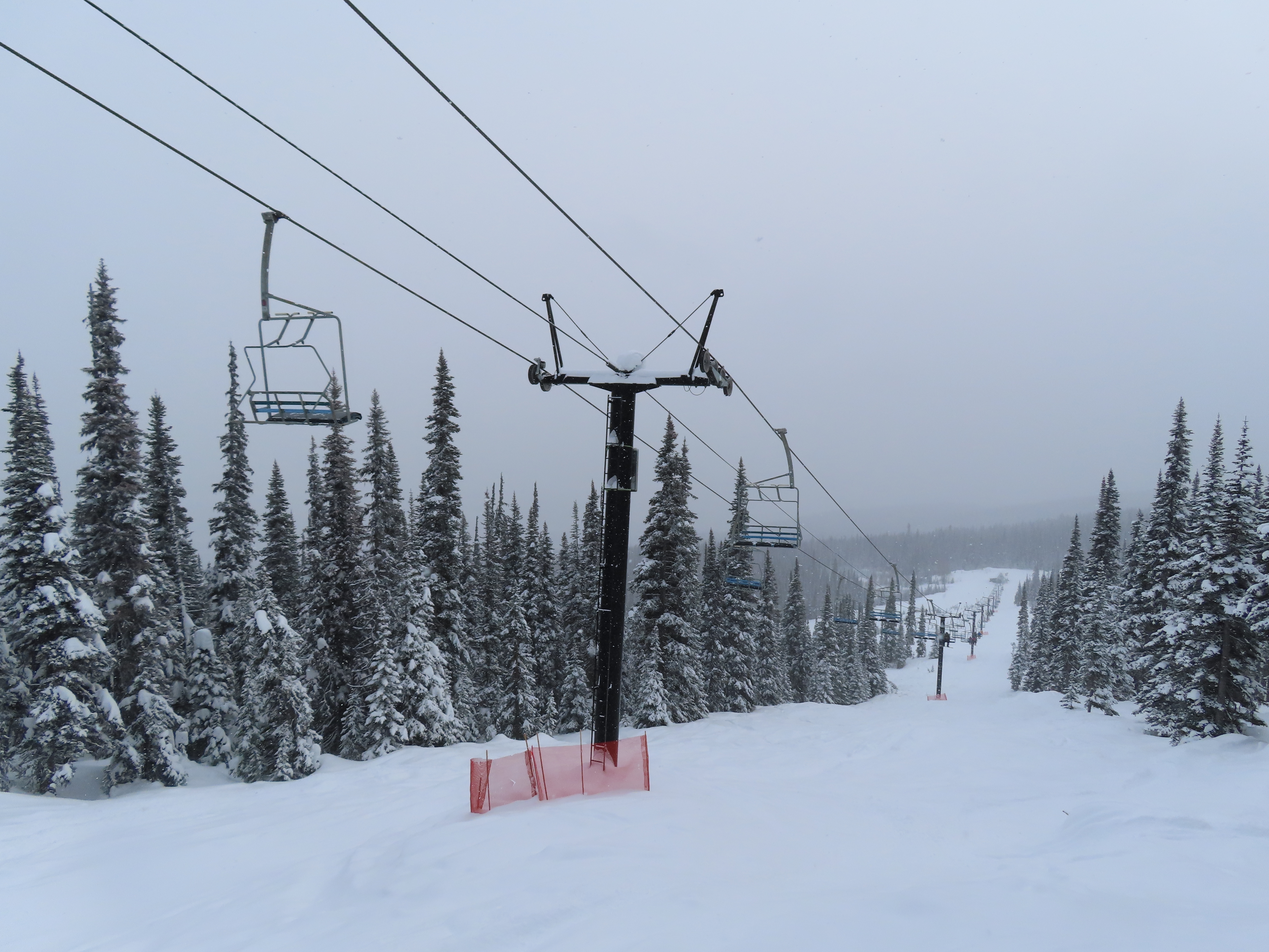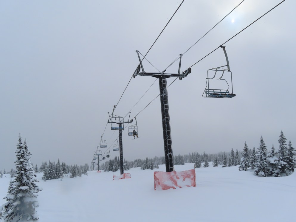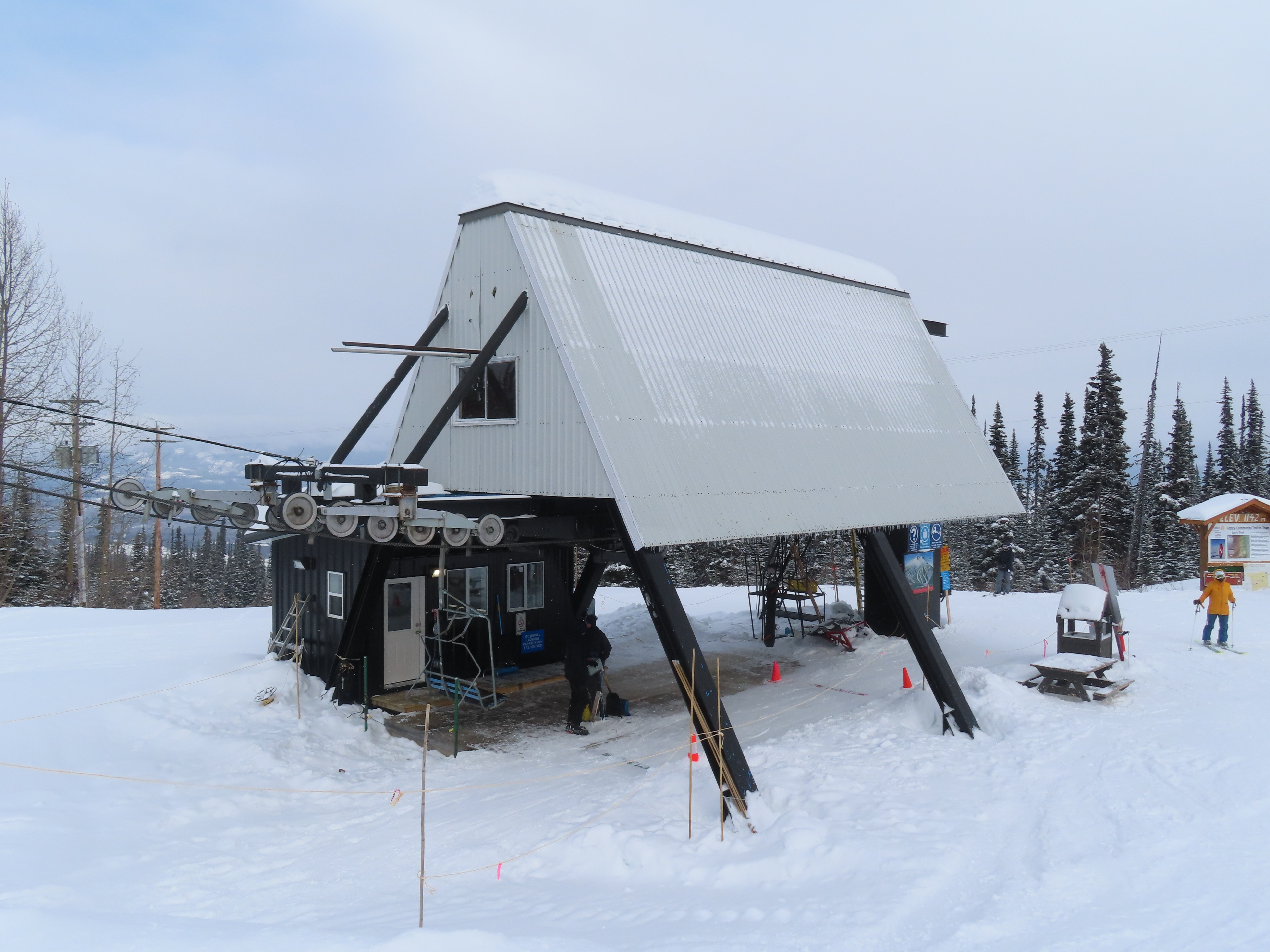 This lift is the newest at HBM as of 2023, even though it is 43 years old.Loading area and long lift alignment.View up the line.Drive-tension station.Terrain pod seen from the town of Smithers.Upper station overview.Side view of the top terminal.View from the summit.This is the only lift at Smithers entirely below tree line.Upper lift line.View down.Tower 3.View riding up at tower 17.Late model Mueller chair and grip.Upper station with fixed bullwheel.