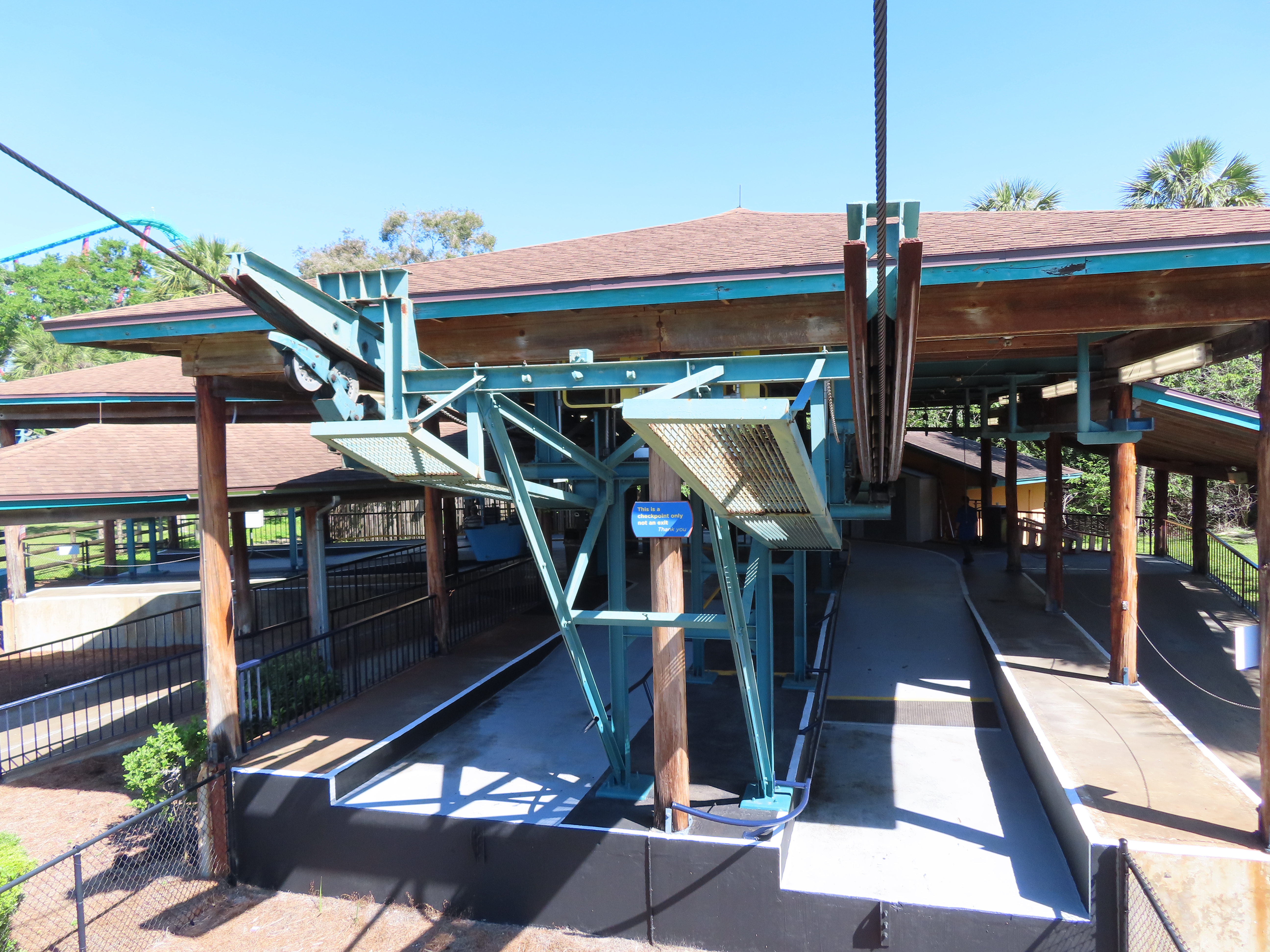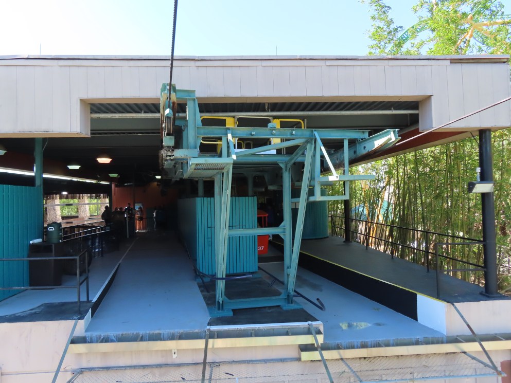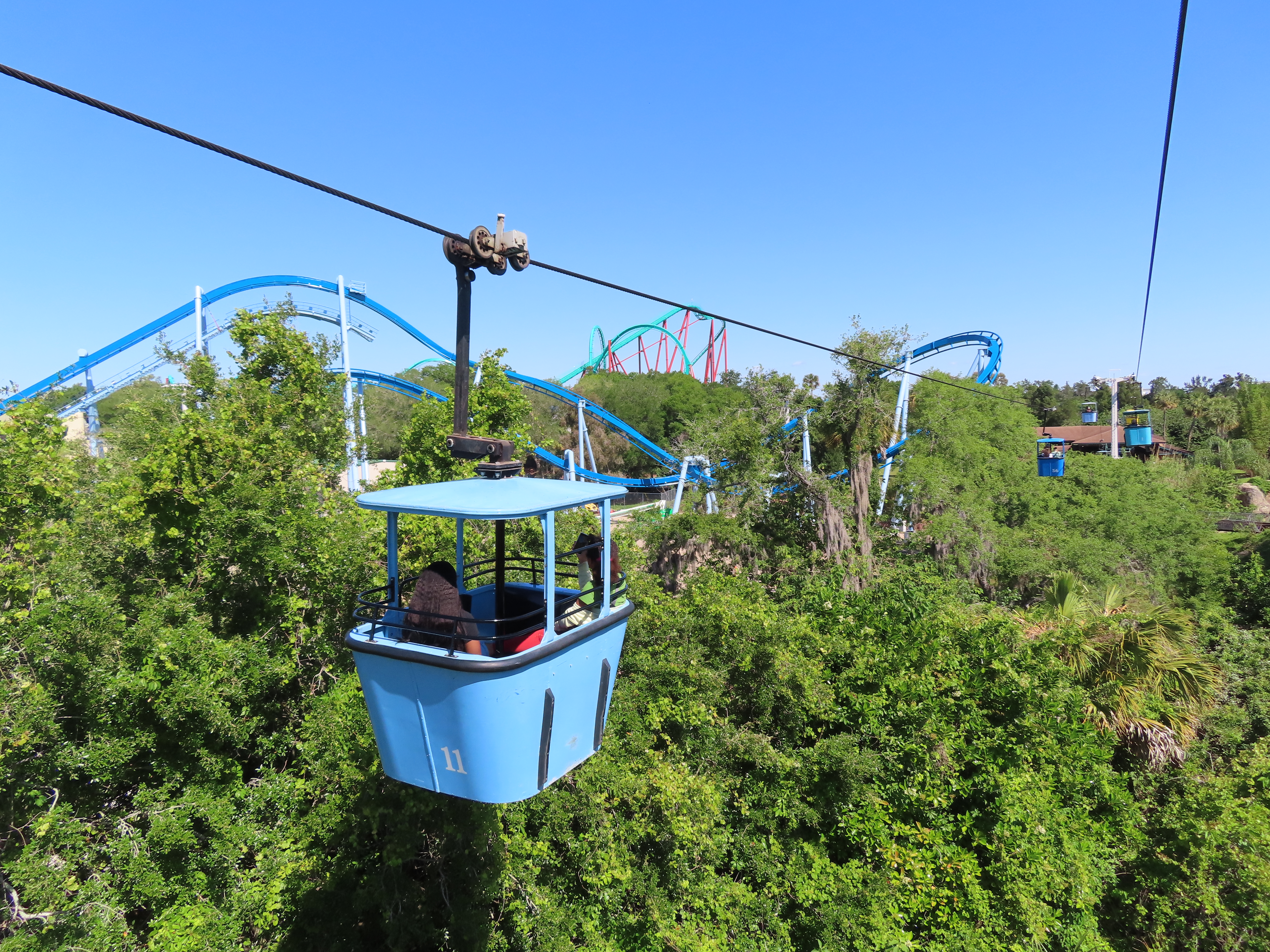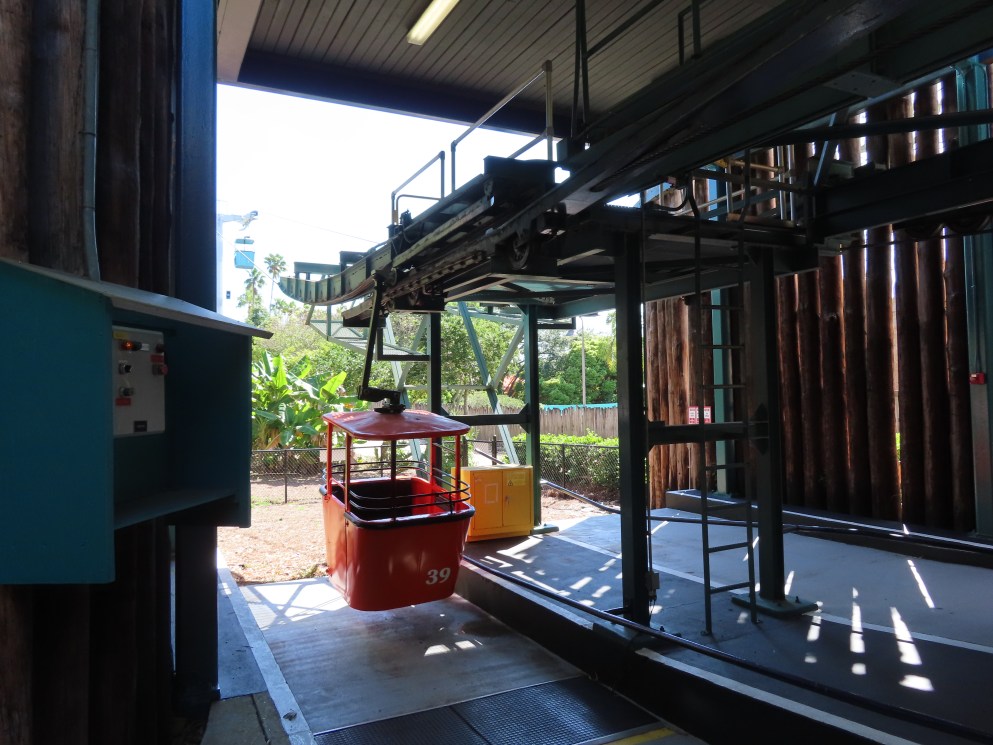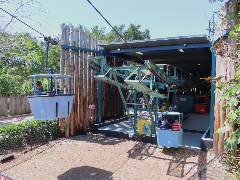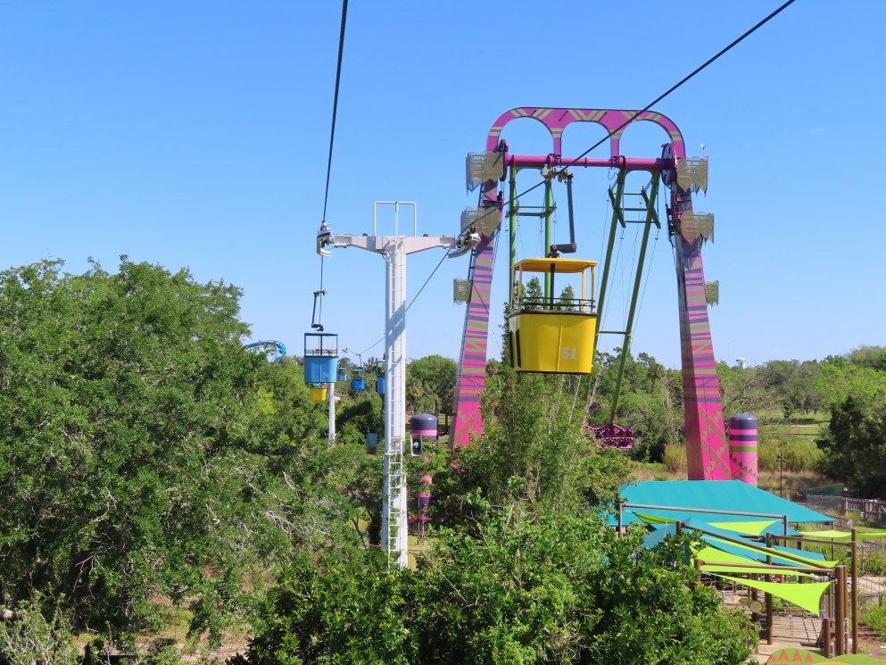 This two section VonRoll sky ride opened at Busch Gardens in 1974.The drive station above the Cheetah Hunt roller coaster station.The roller coaster that starts below the sky ride passes over and under it between towers 1 and 2.Combination Cheetah Hunt and Sky Ride station.Tower 2.The ride passes beside numerous other rides and attractions.A turn station between towers 5 and 6 does not allow loading or unloading.The angle sharp station.The haul rope is deflected by three horizontal bullwheels in this station.Middle section of the shorter Jungala segment.Tower 6.View riding toward Jungala Station.Tower 7.A grip passing through a sheave assembly.Support tower 8.Another view of T8.Arriving at Jungala.Return bullwheel with counterweight tensioning.A cabin leaving the return station.A cabin in the Jungala station.As of 2024, this ride costs $5 each way.A cabin passing tower 7.Arriving at the turn station from Jungala.Leaving the angle station headed toward Egypt.A cabin on the line with a new roller coaster under construction.Side view of a VonRoll carrier.Tower 2.The Cheetah Hunt crossover.Arriving at the drive terminal.Deceleration zone at the drive.Another view of the angle station.Cabins here turn more than 90 degrees.Tower 6.A tall tower mid line.Roller coaster train passing below the gondola.Cabins out on the line.Side view of a lift tower.Cabins on the shorter segment.Another view of Jungala station.Tower 8.