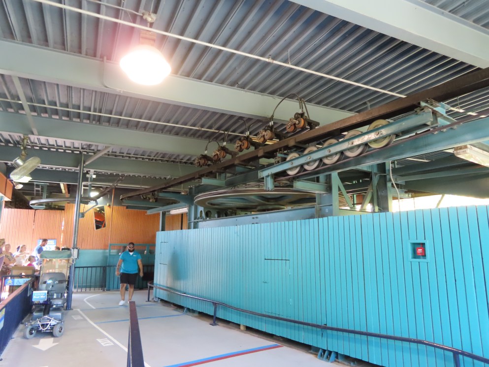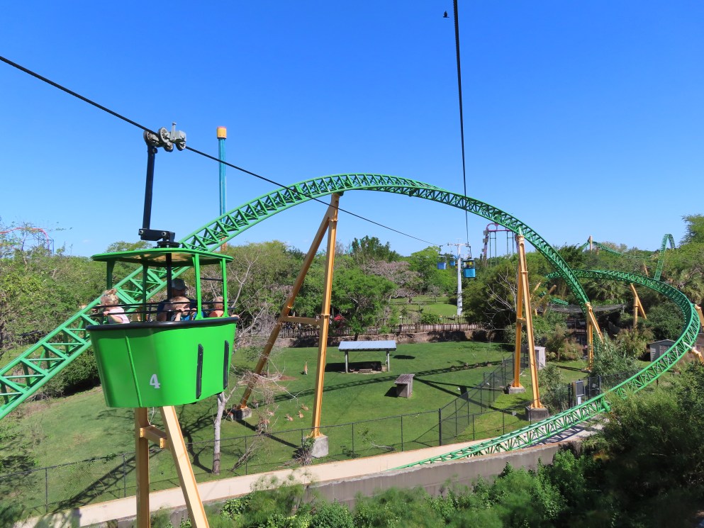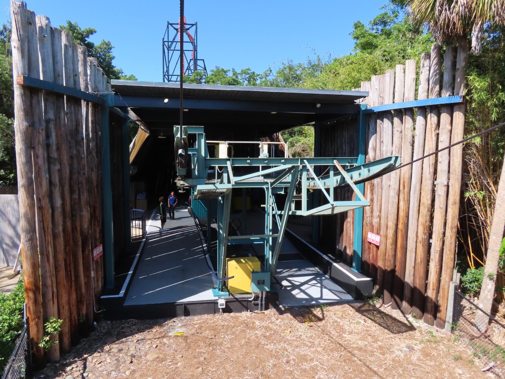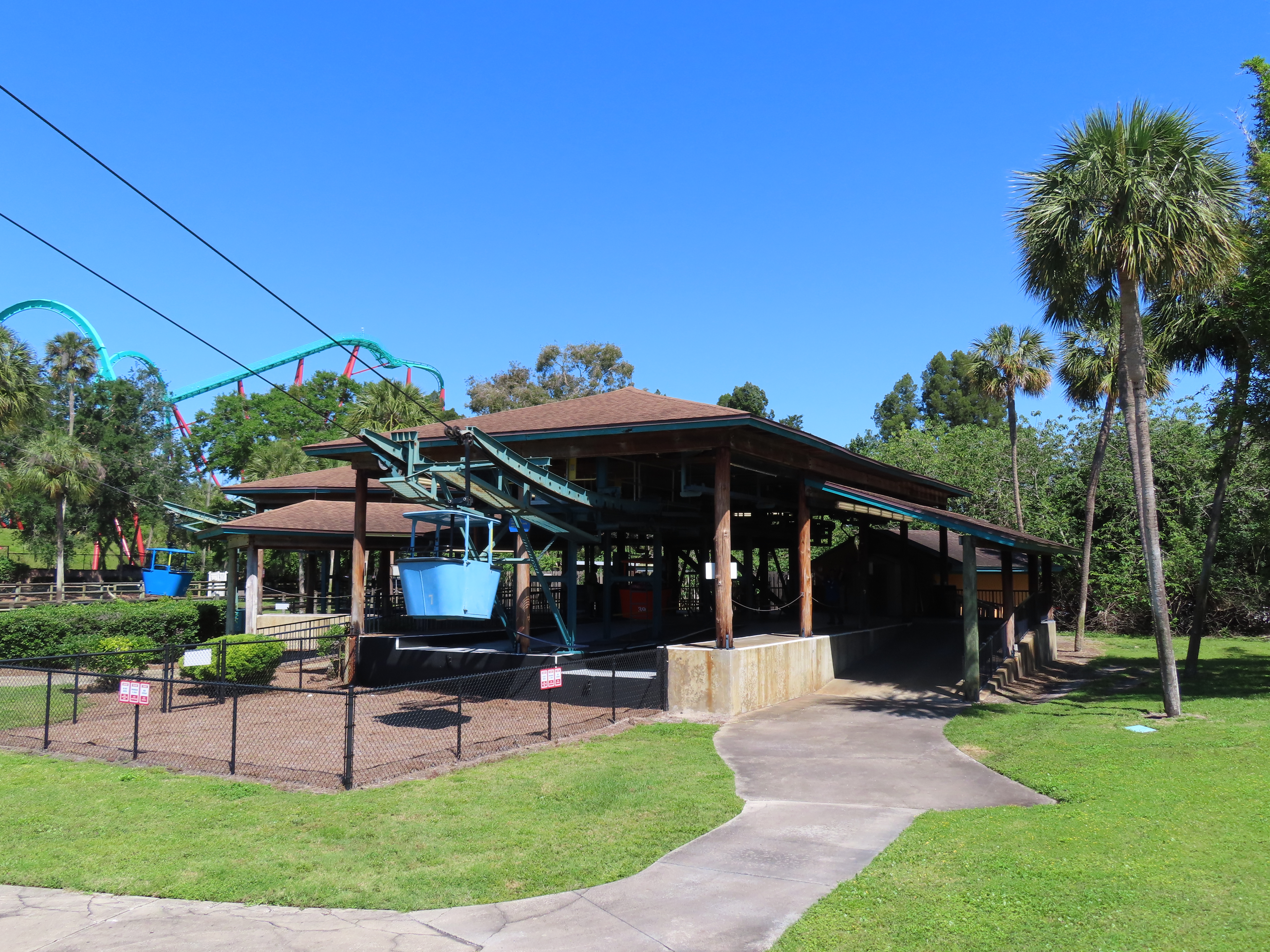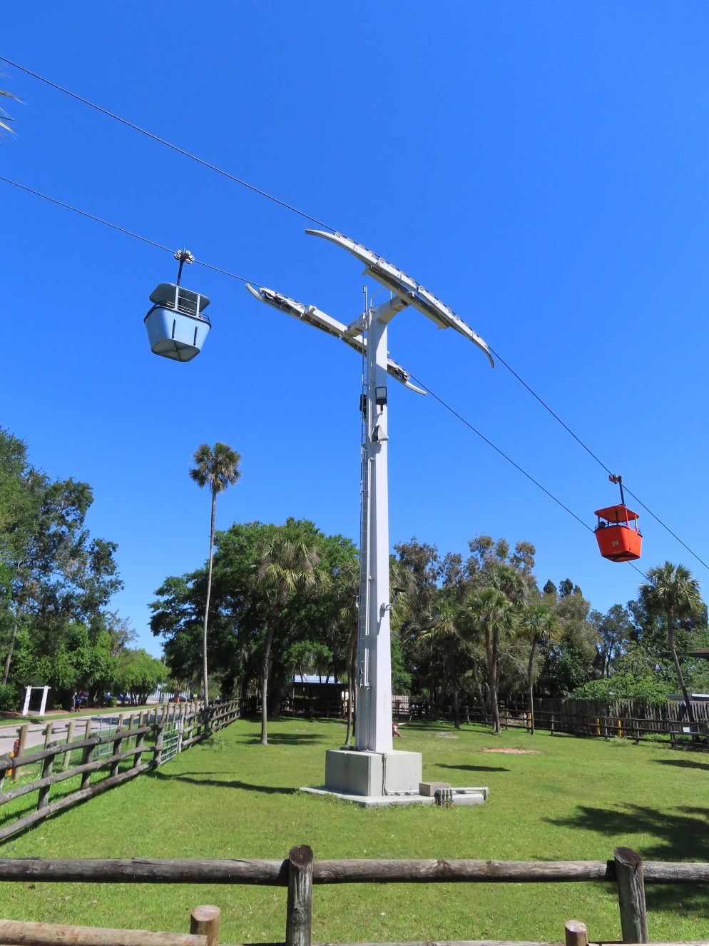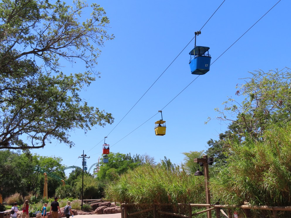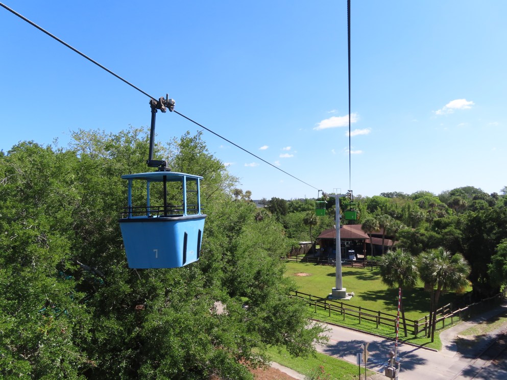 This two section VonRoll sky ride opened at Busch Gardens in 1974.The drive station above the Cheetah Hunt roller coaster station.The roller coaster that starts below the sky ride passes over and under it between towers 1 and 2.Combination Cheetah Hunt and Sky Ride station.Tower 2.The ride passes beside numerous other rides and attractions.A turn station between towers 5 and 6 does not allow loading or unloading.The angle sharp station.The haul rope is deflected by three horizontal bullwheels in this station.Middle section of the shorter Jungala segment.Tower 6.View riding toward Jungala Station.Tower 7.A grip passing through a sheave assembly.Support tower 8.Another view of T8.Arriving at Jungala.Return bullwheel with counterweight tensioning.A cabin leaving the return station.A cabin in the Jungala station.As of 2024, this ride costs $5 each way.A cabin passing tower 7.Arriving at the turn station from Jungala.Leaving the angle station headed toward Egypt.A cabin on the line with a new roller coaster under construction.Side view of a VonRoll carrier.Tower 2.The Cheetah Hunt crossover.Arriving at the drive terminal.Deceleration zone at the drive.Another view of the angle station.Cabins here turn more than 90 degrees.Tower 6.A tall tower mid line.Roller coaster train passing below the gondola.Cabins out on the line.Side view of a lift tower.Cabins on the shorter segment.Another view of Jungala station.Tower 8.