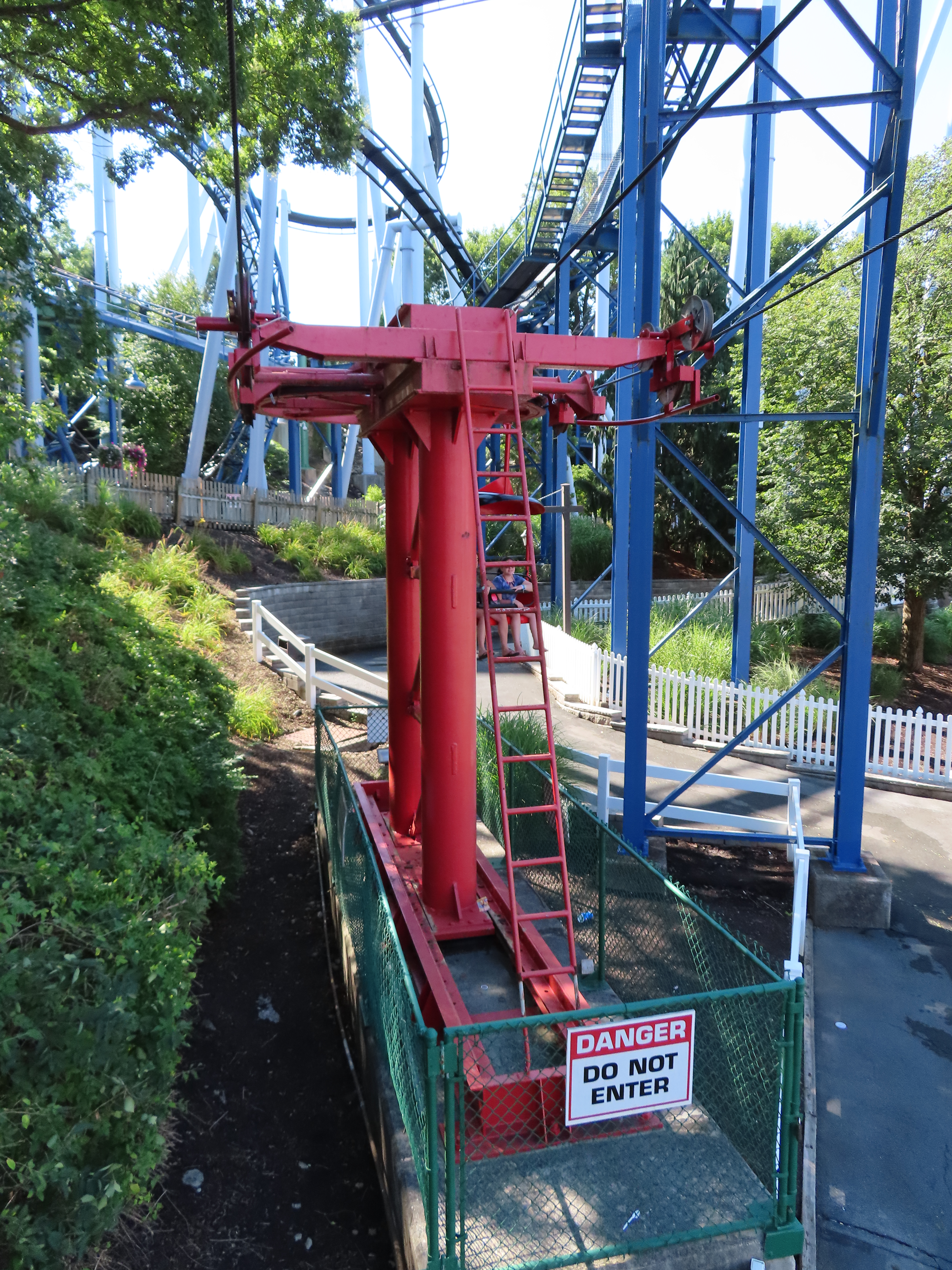 One can see how Hersheypark had to be very creative with building the roller coasters in this area, both of which were built much later than the Skyview. SuperDooperLooper was built in 1977, and Great Bear was built in 1998. Great Bear is where the builders had to be very creative, which is why it has that helix after the lift hill but before the first drop (something unusual for B&M inverts), and giving the chairlift clearance had to be factored into the Immelman loop.