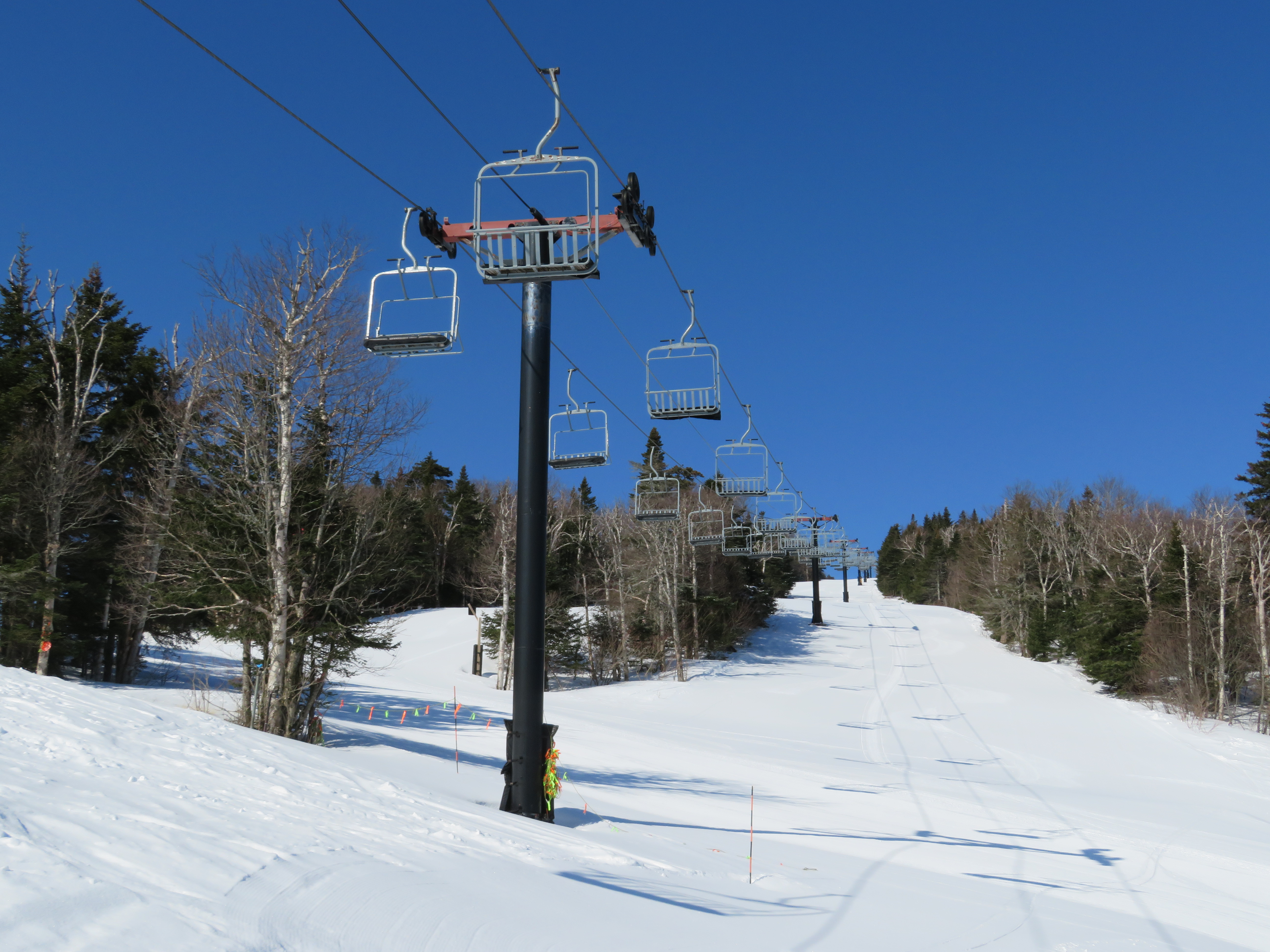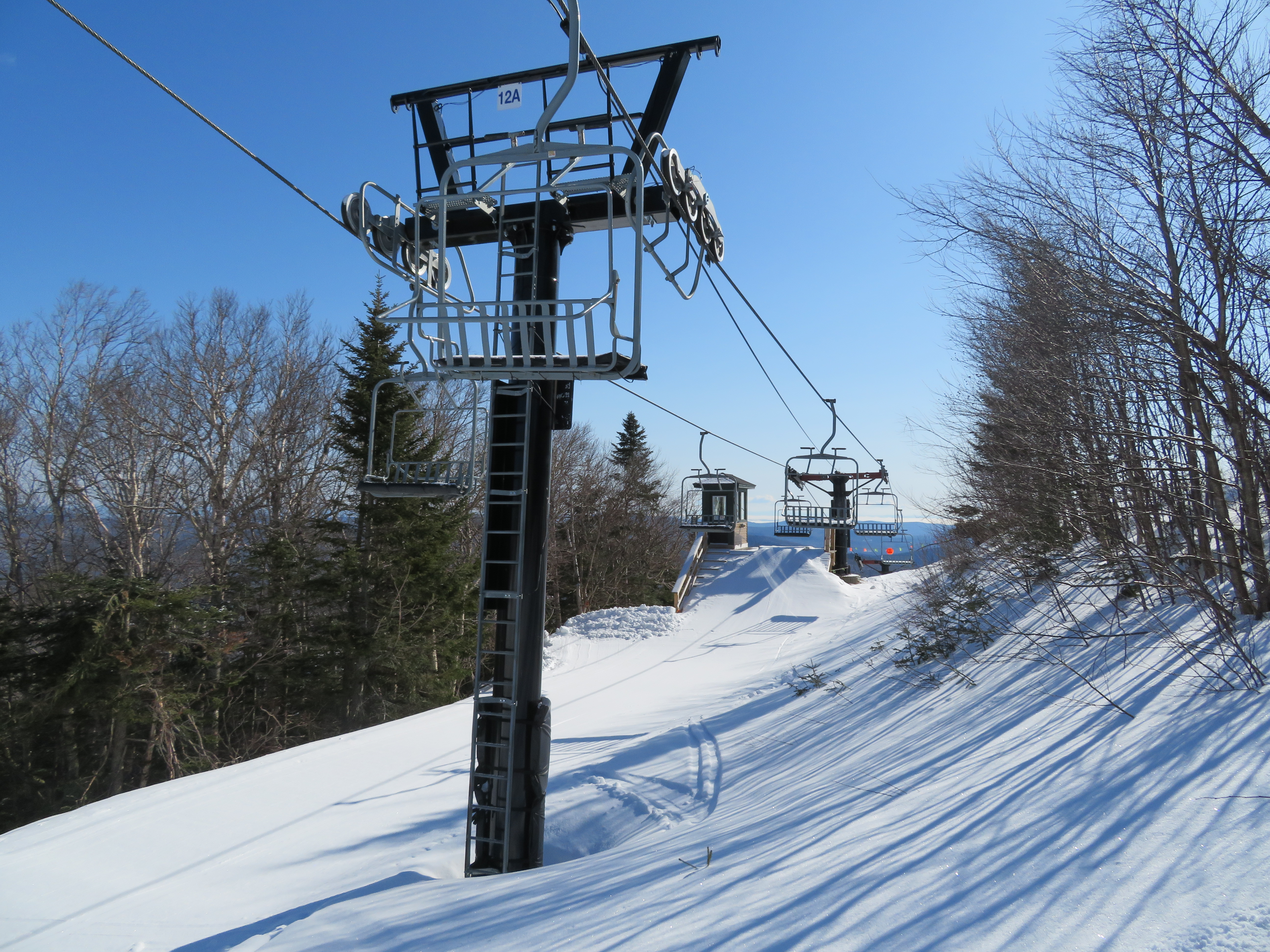 First triple lift in Vermont and at Killinghton. Very long, seems like it takes forever. Can’t put my skis or snowboard on the footrests. Love how’s there’s never people on this lift. I hate the meditation because you got hike when you get off. They shouldve moved it farther uphill a couple feet and my skis and board get caught on the snow when I’m riding the midstation. They gotta fix a lot on this lift and I hate the backrests. However it does access a lot of terrain and you get a great view of K-1 as well as Snowshed from behind