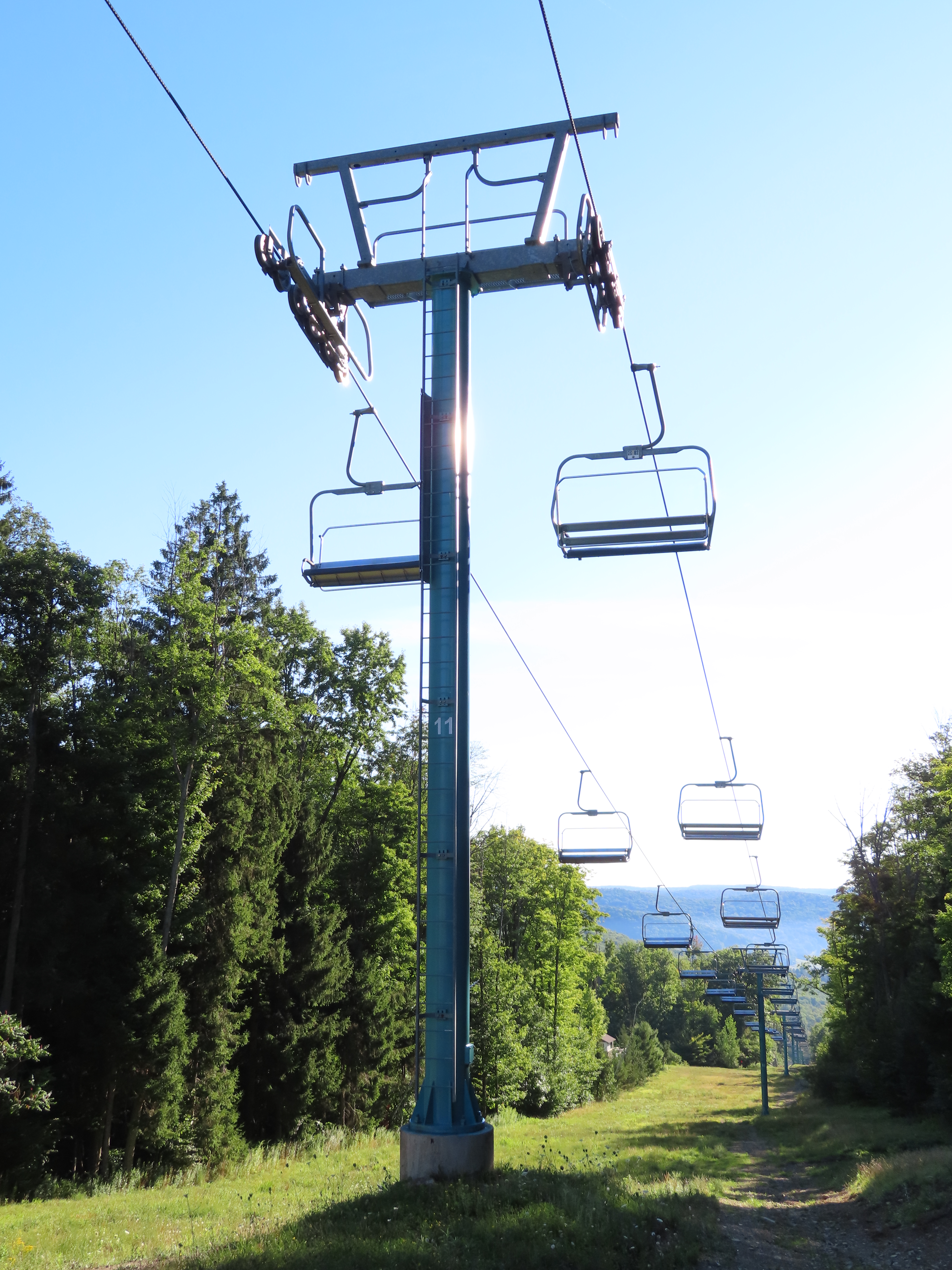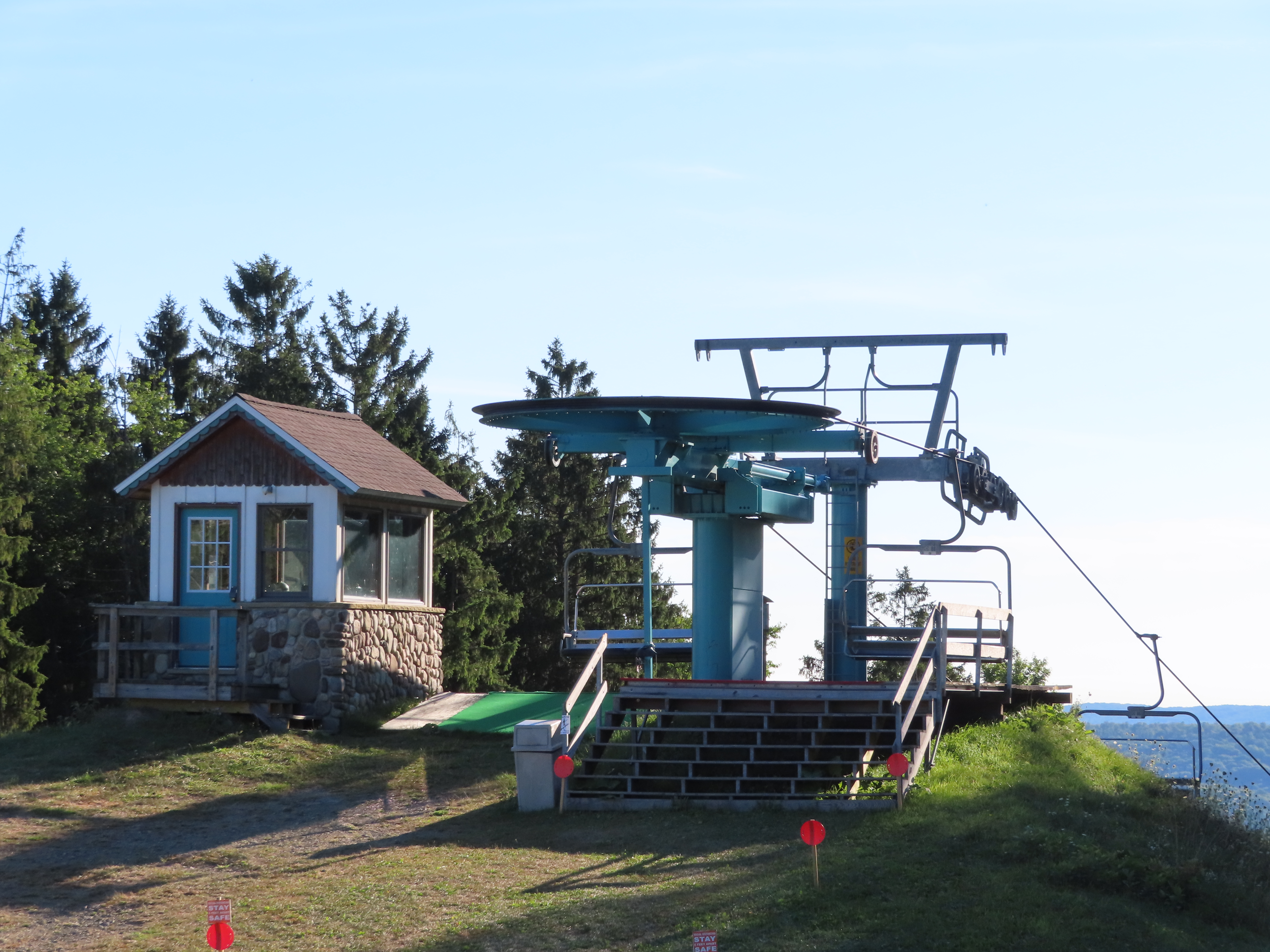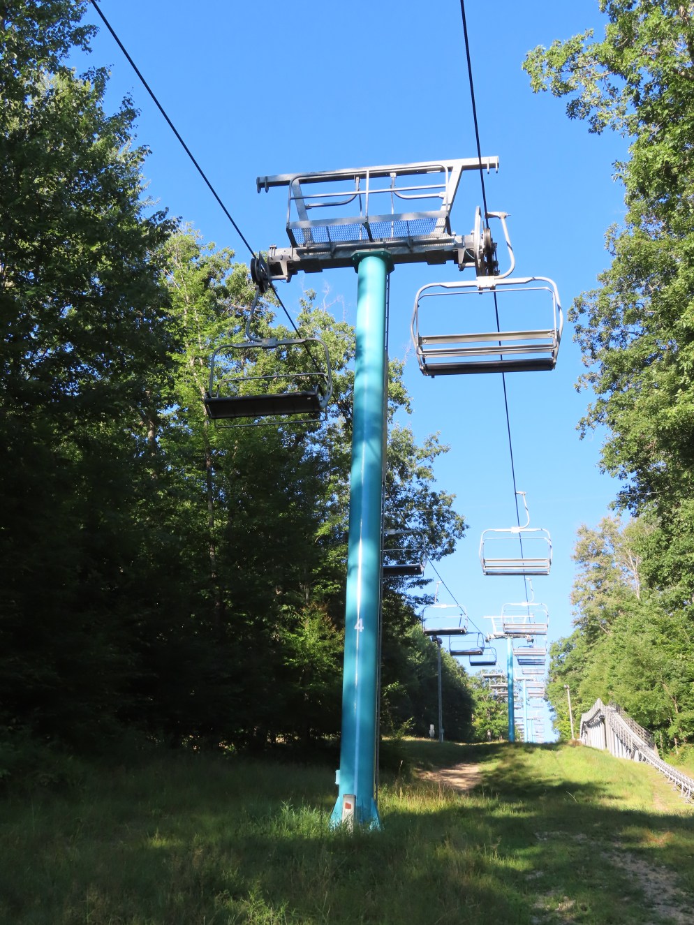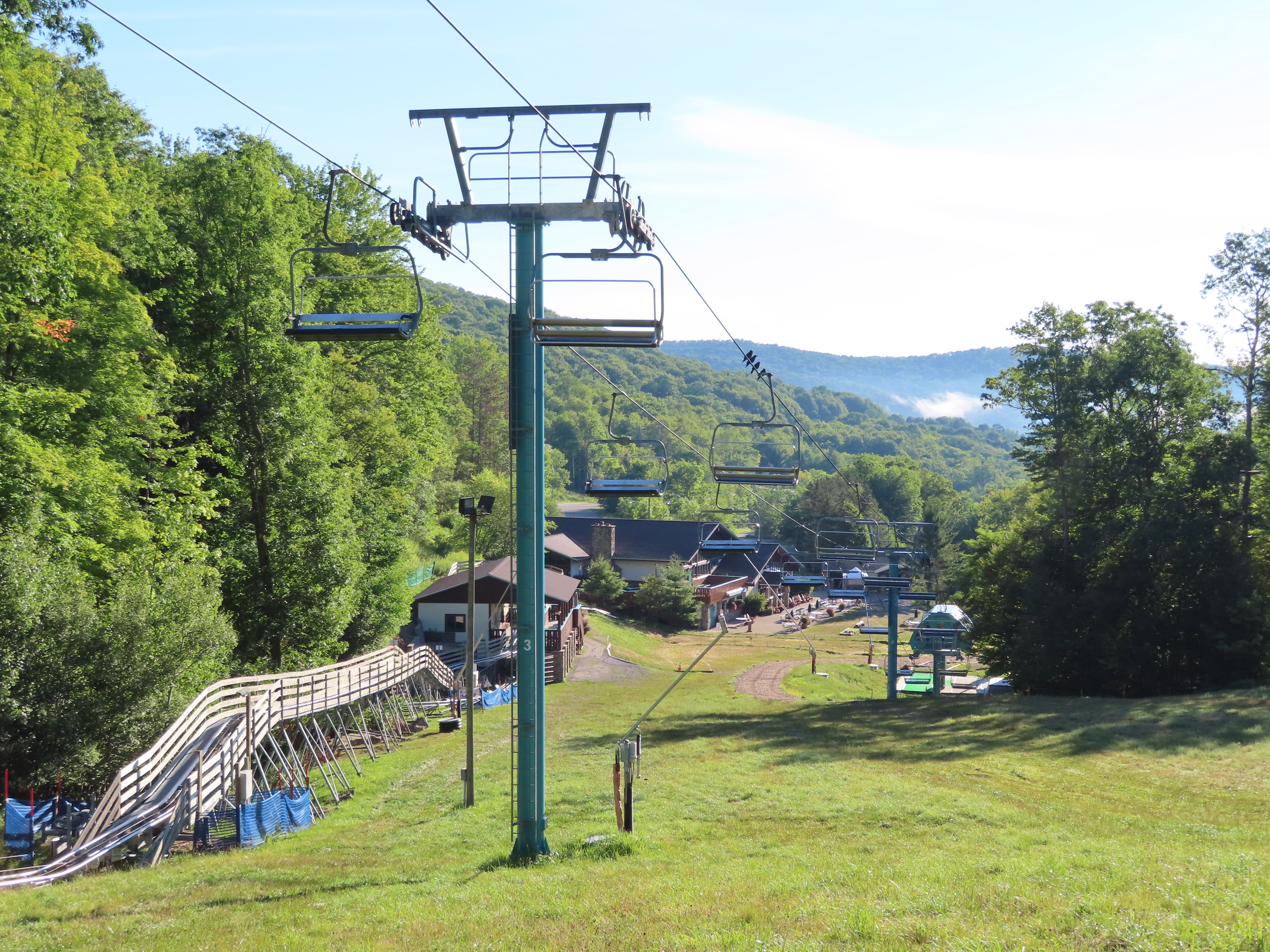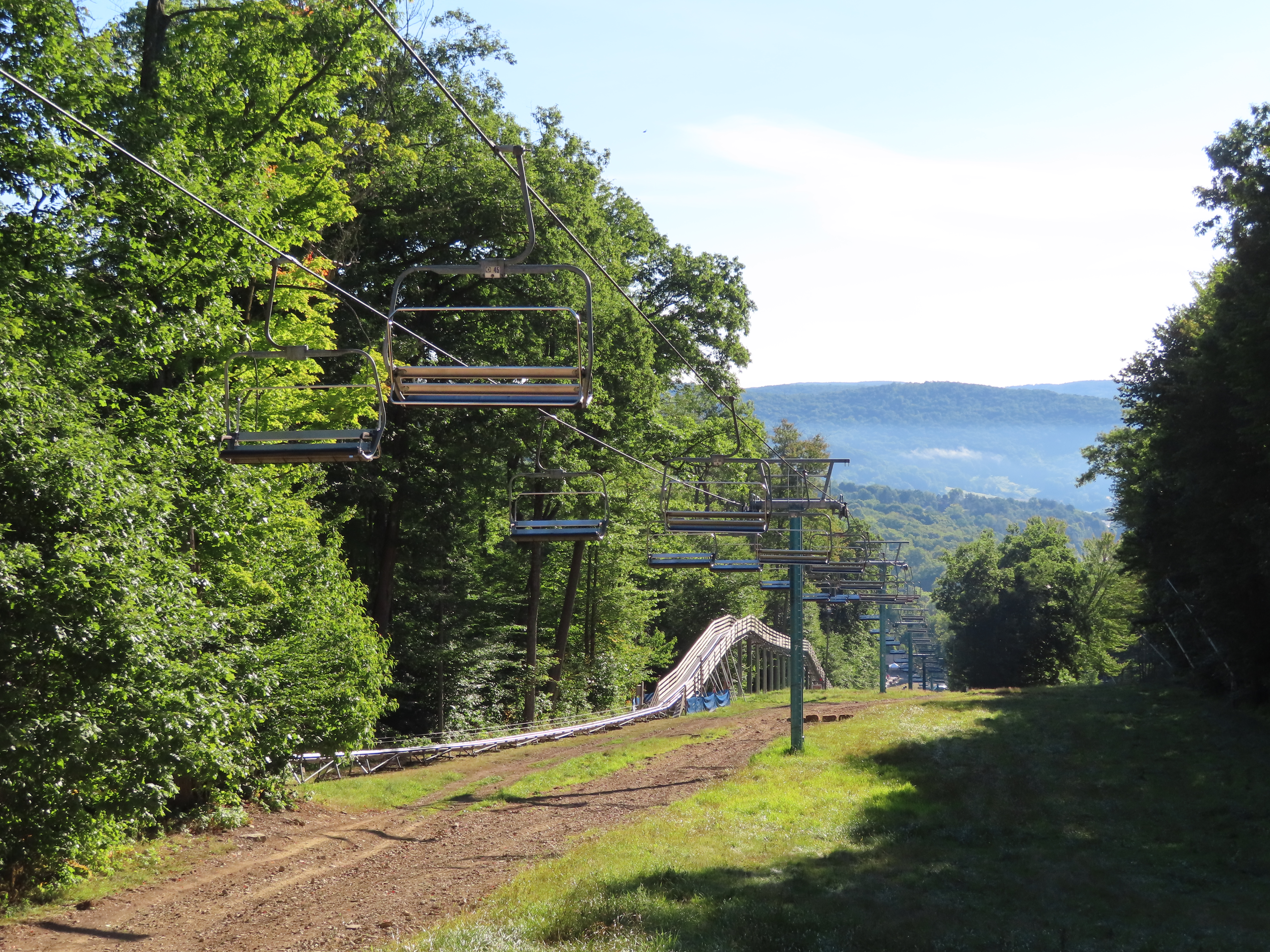 This lift used to go the same speed as the Creekside Quad. Now it goes faster. This is a lift I would love to see open more and get replaced with. They only open this lift on weekends, not sure about Holidays? It is pretty in the canopy of spruce trees and viewing the mountain coaster. Its a pretty lift to take in the fall and they service mountain bikers as well