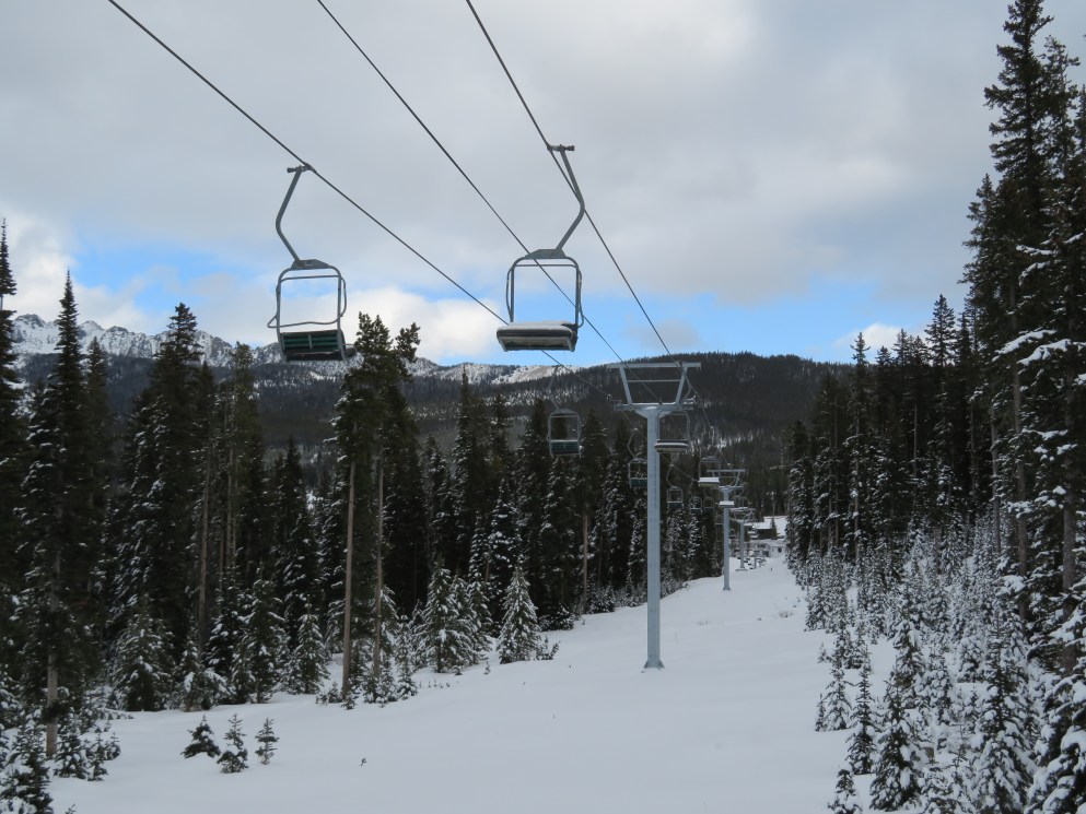 the chairs on this lift are old doppelmayr chairs, the same model as white otter