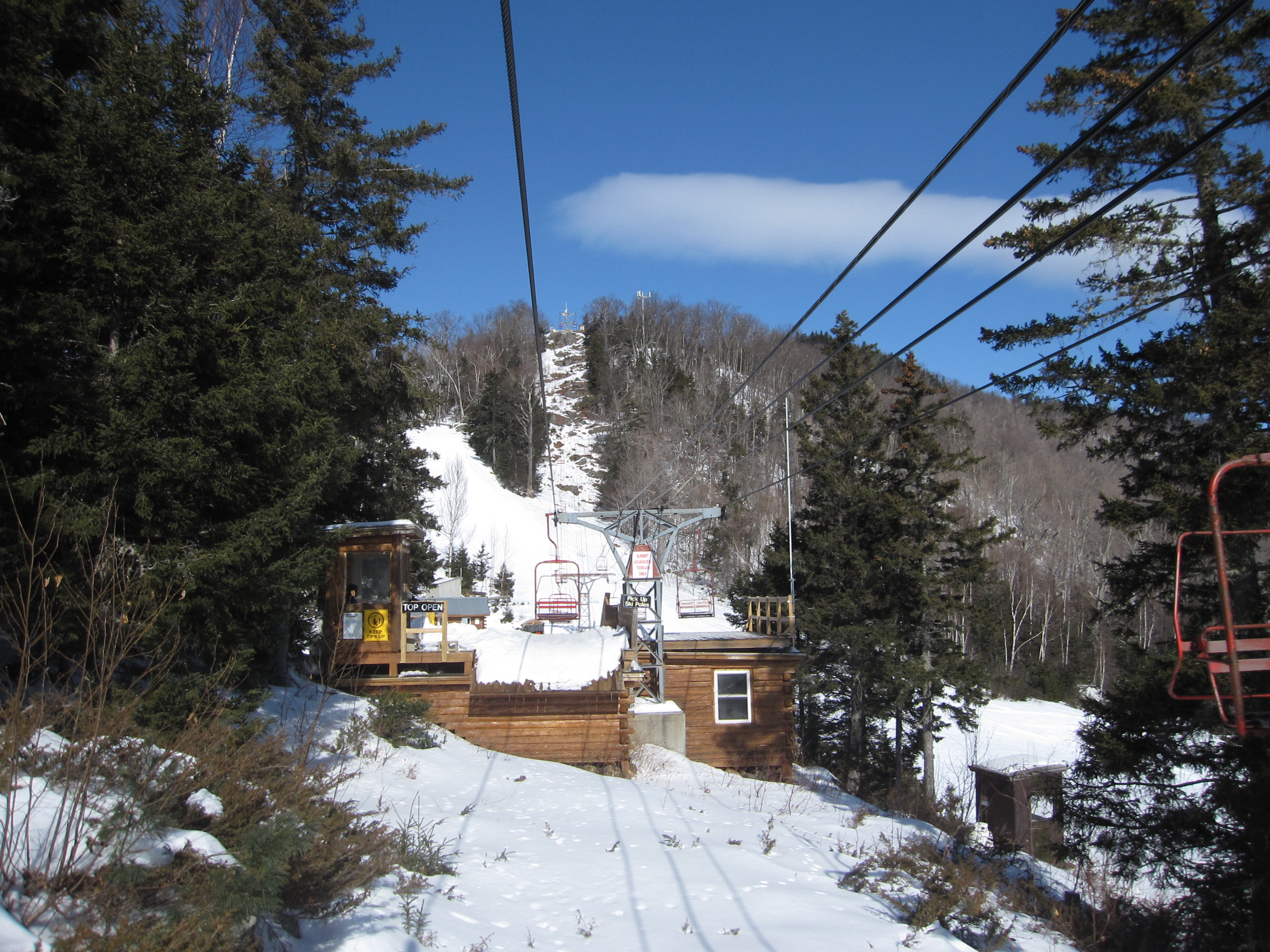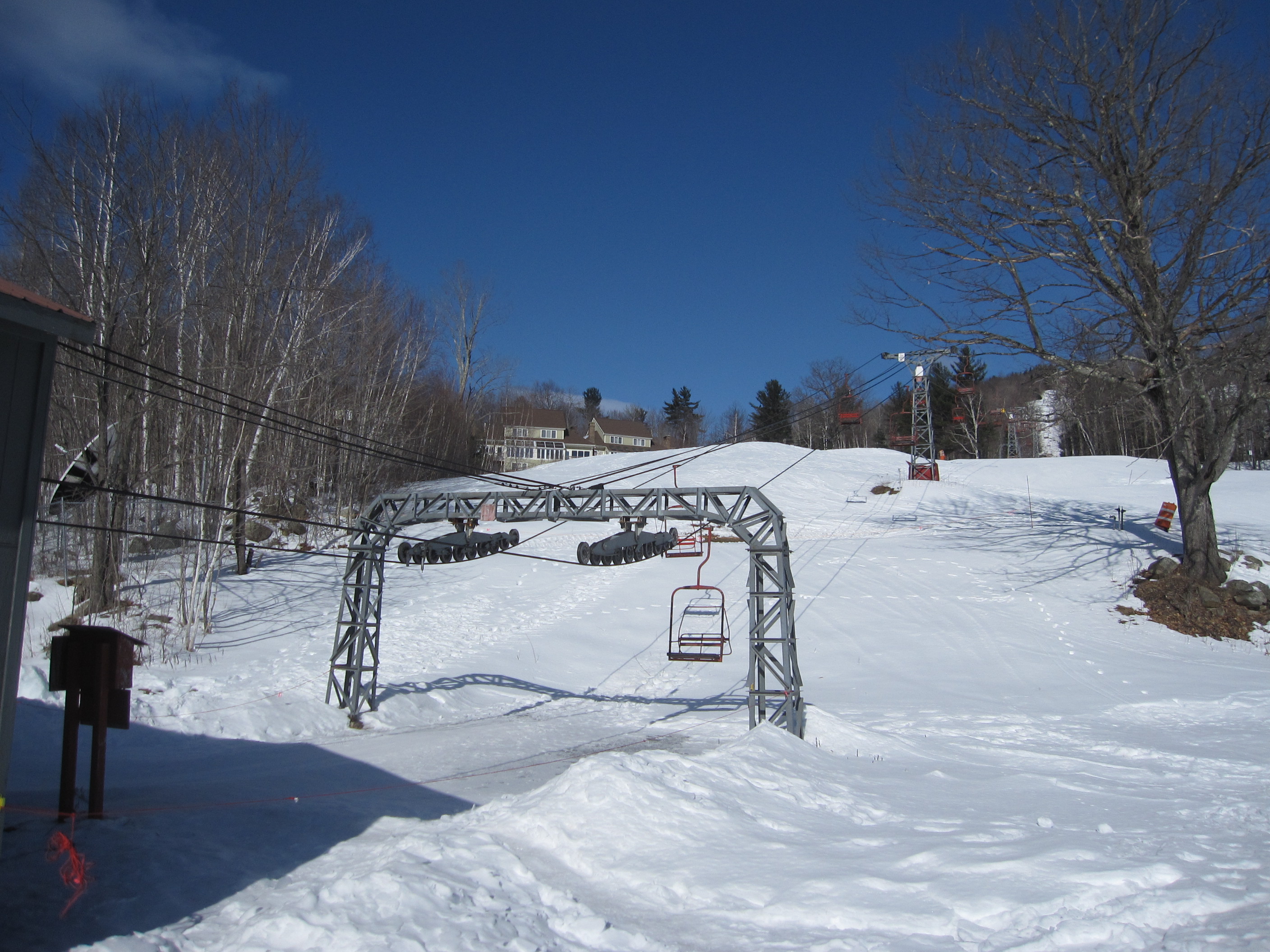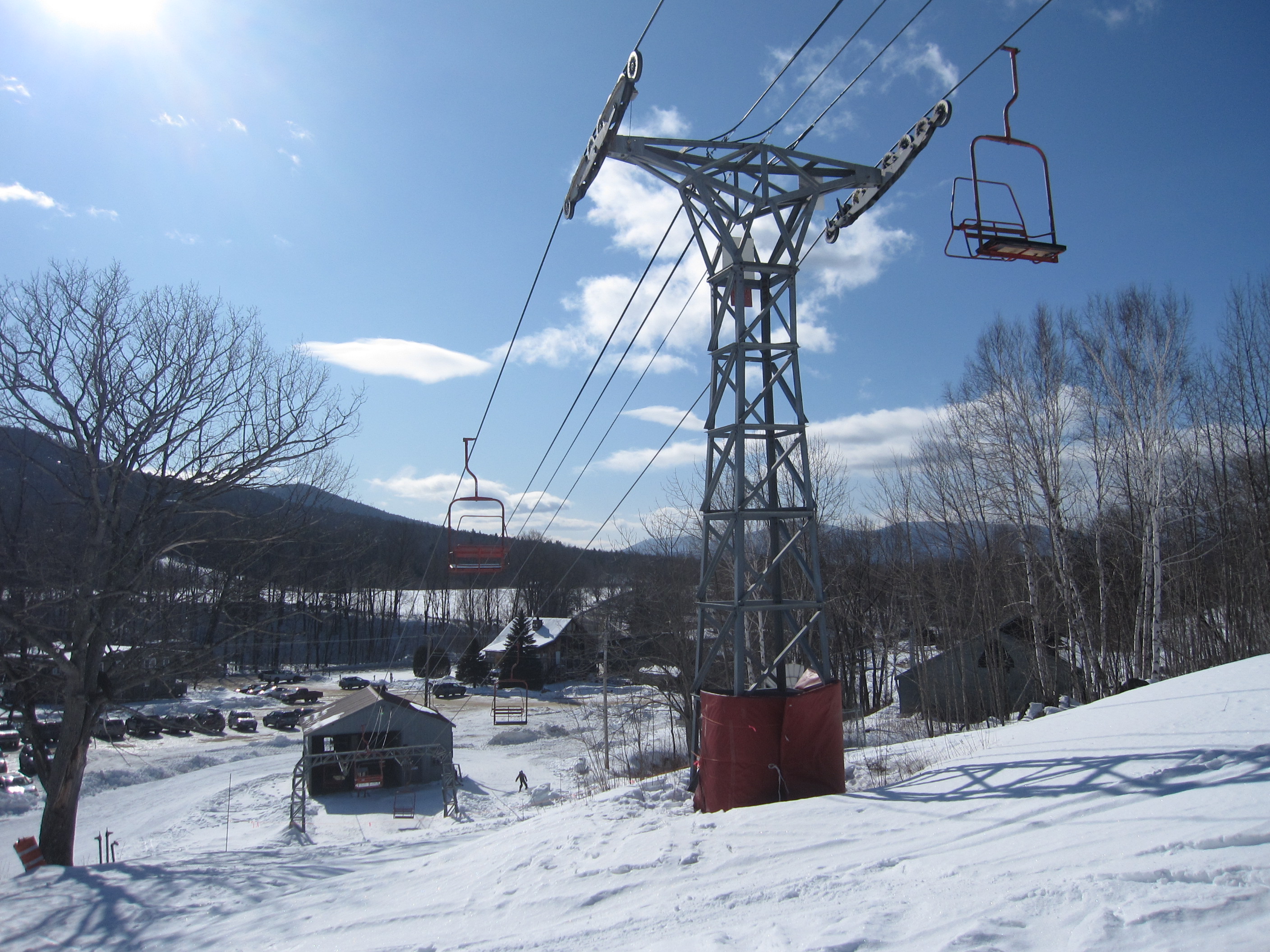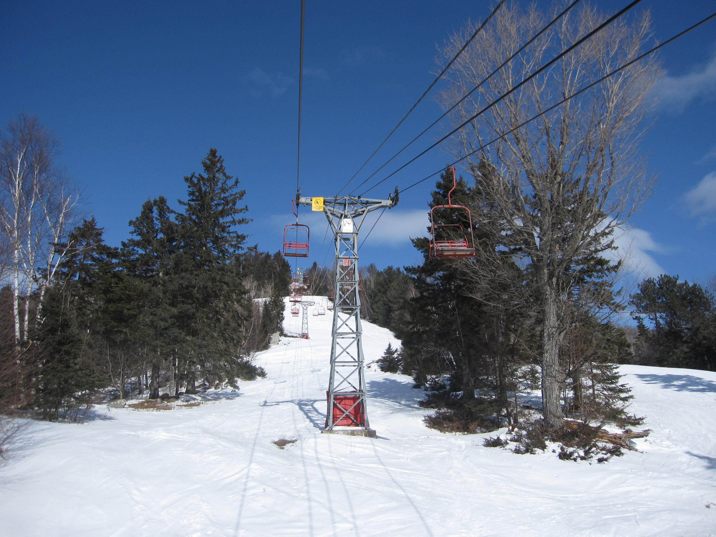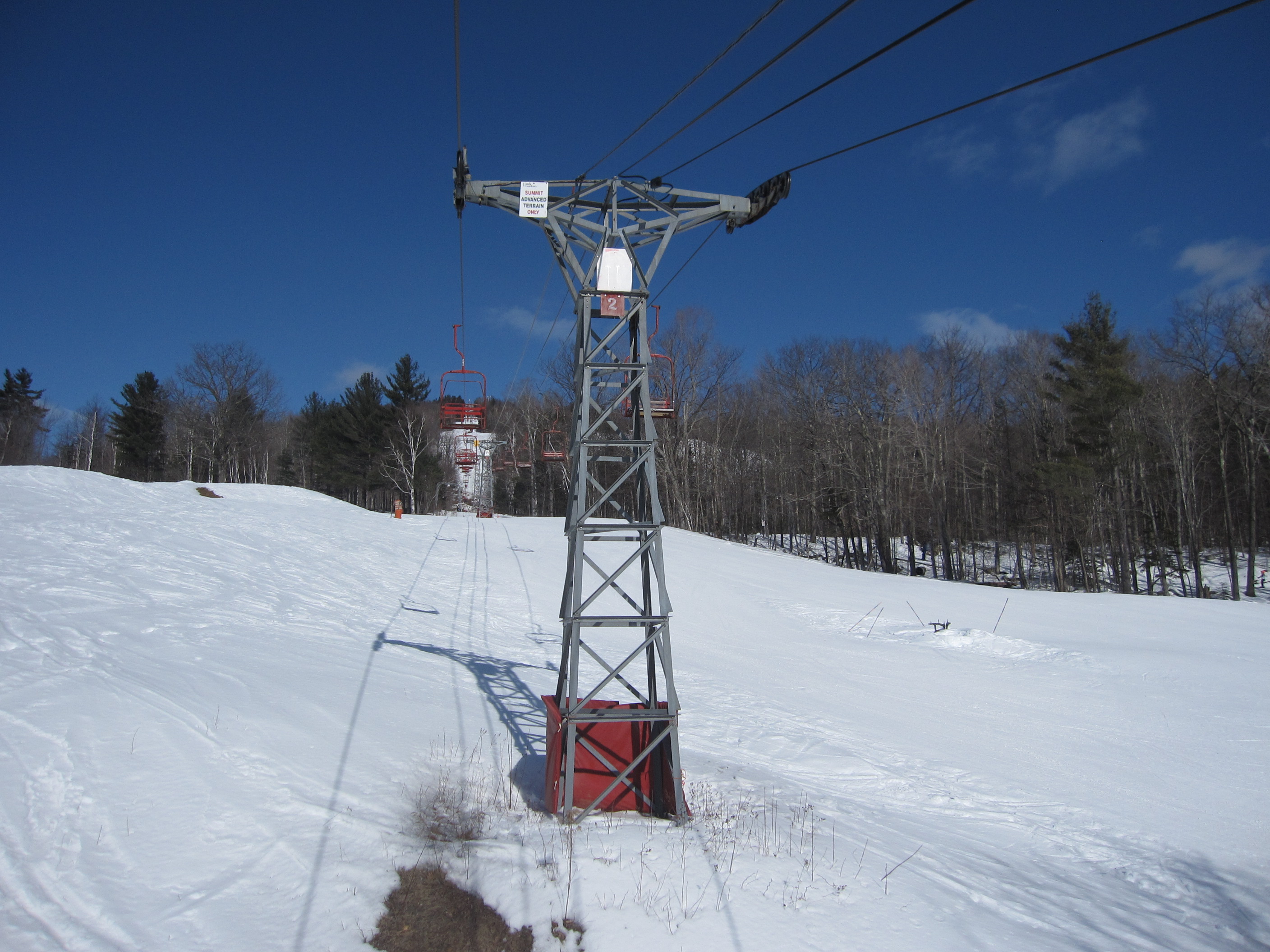 According to newenglandskihistory.com and chairlift.org, the Riblet chairs and insert clips were added in 1990 after a fire. The lift originally had center-pole Mueller chairs.