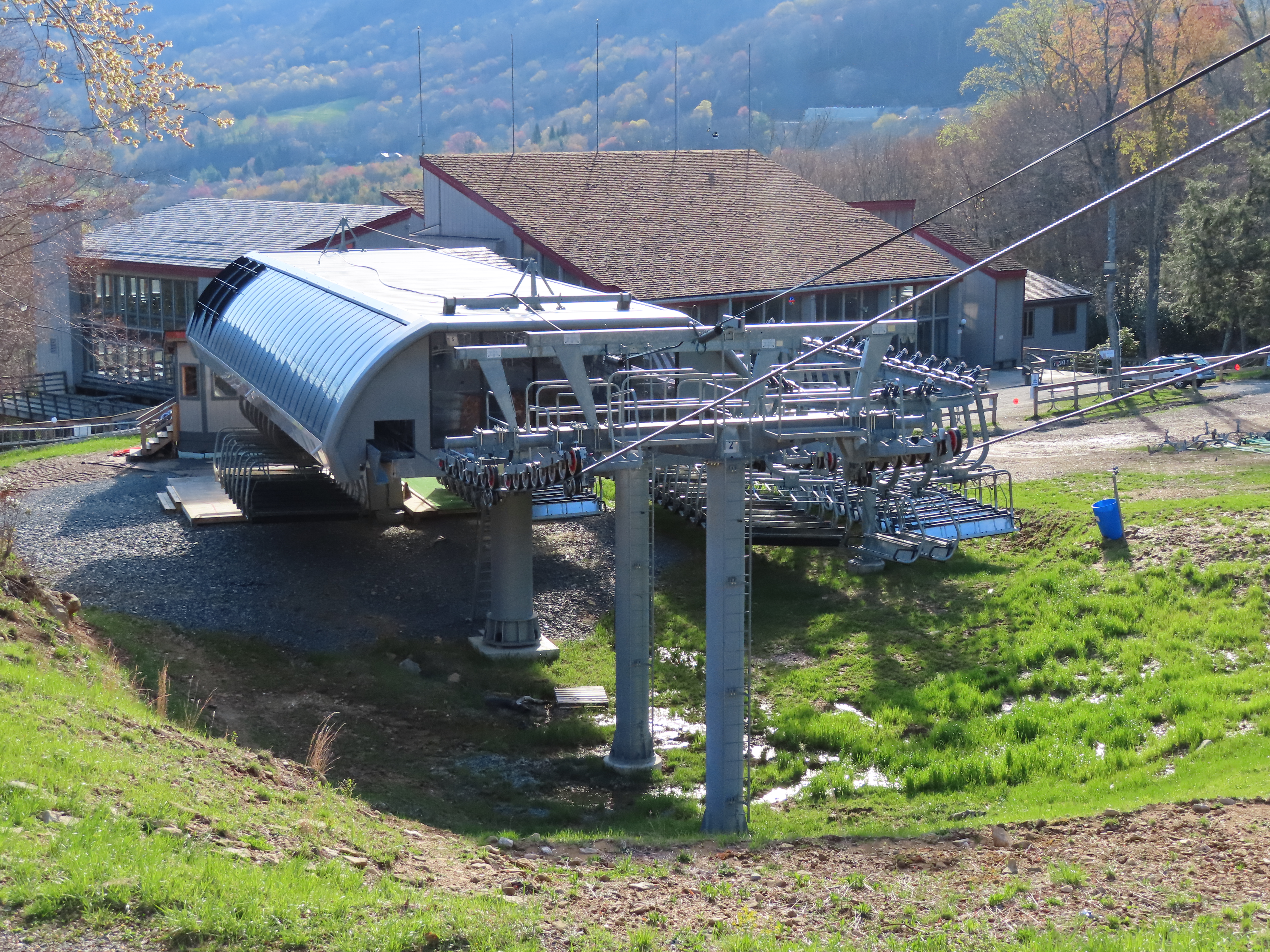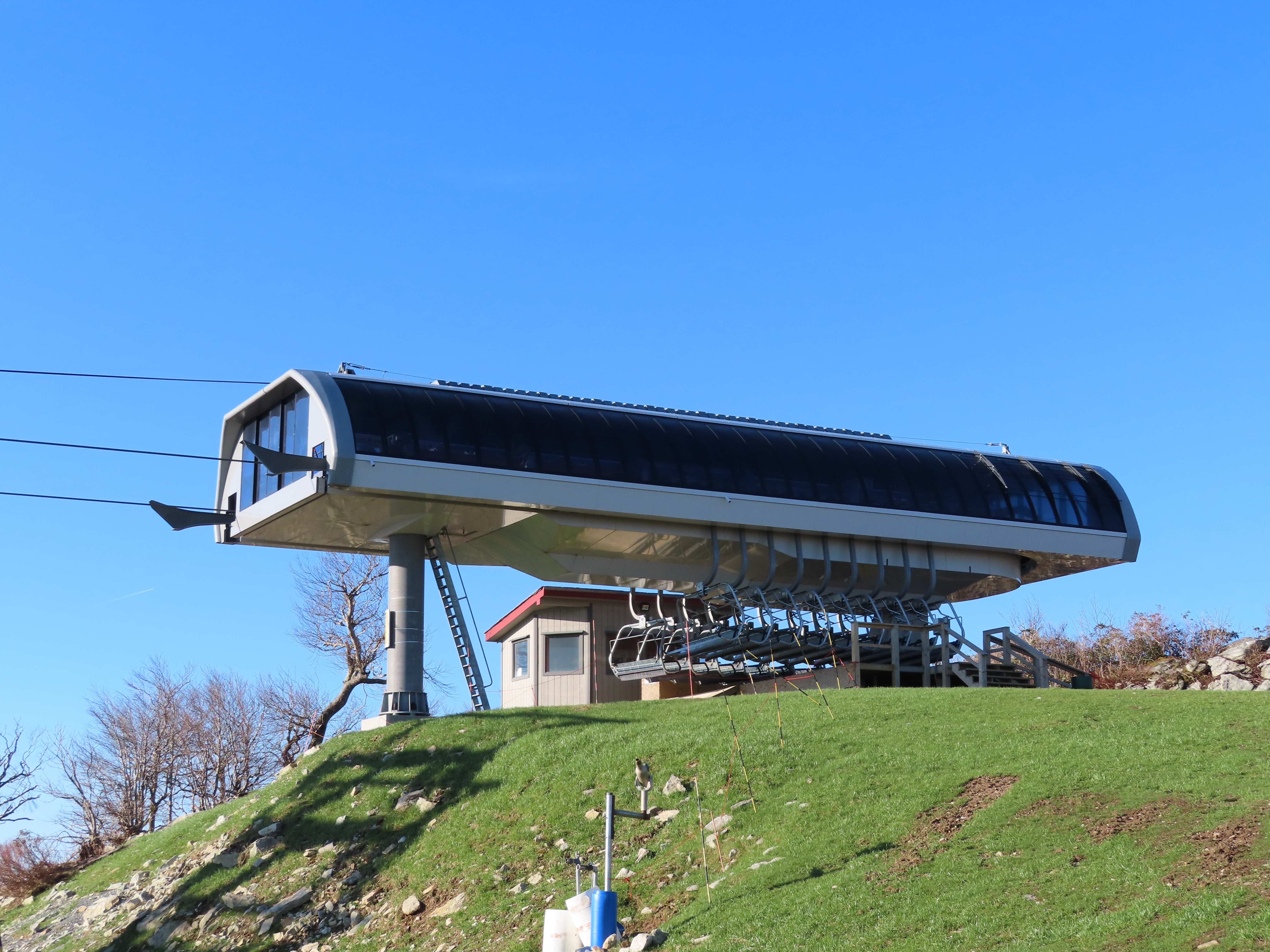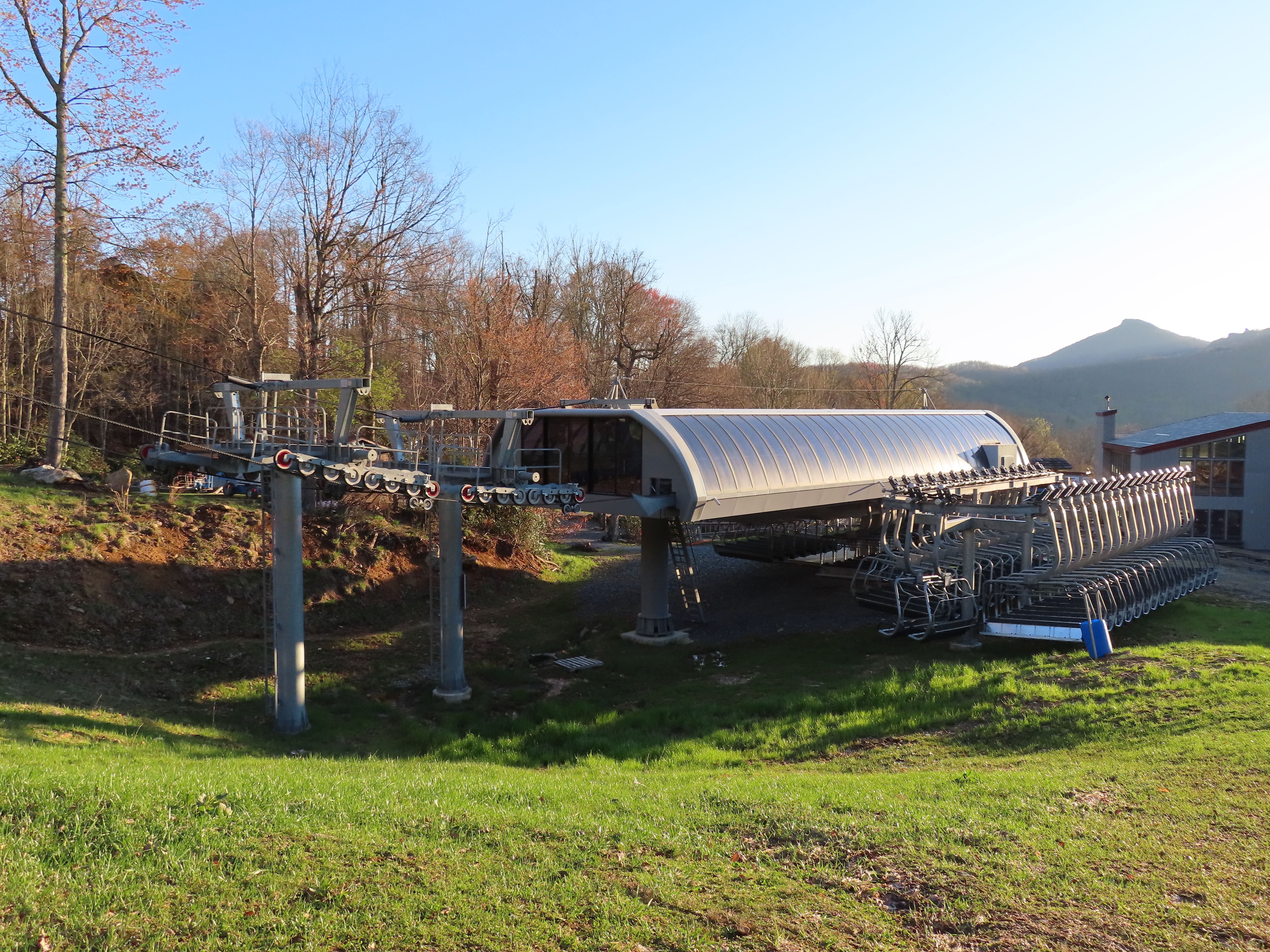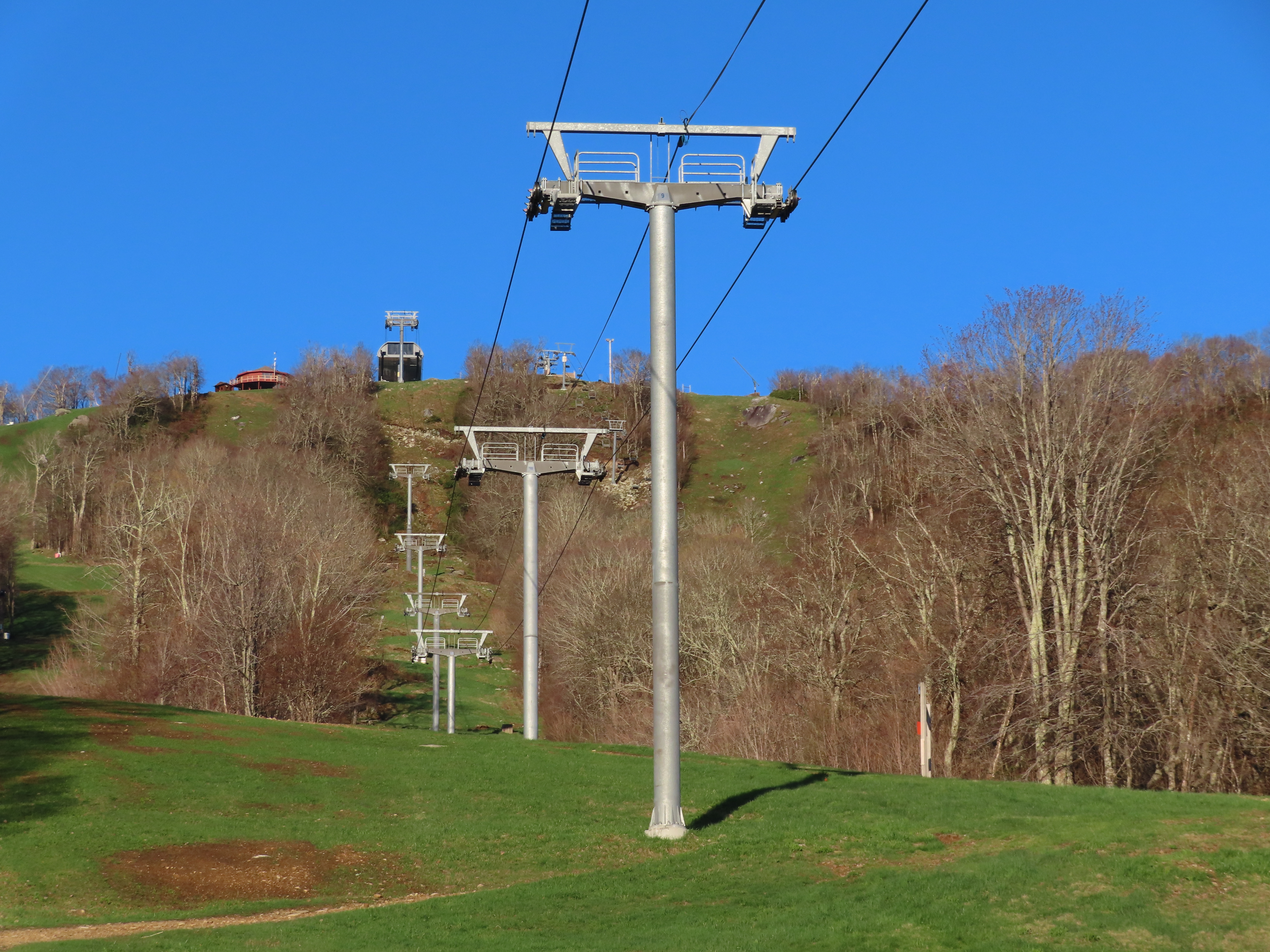 This Doppelmayr UNI-G detachable significantly improved the lift experience at Sugar beginning in 2015. It operates winter and summer.There is chair parking in both terminals and on a short stub rail at the bottom.Loading area. As shown, this lift is also gondola capable.Lower station and towers 1-2.An empty lift line.There used to be two double chairs with a total of seven stations on this alignment.A European style tower.Middle part of the line.View down near the summit.T14.Side view of the top station.Looking down from the breakover.Towers 15, 16 and 17.Unloading ramp.Side view of the top station.Long UNI-G station with carrier parking.6-2 combo assemblies.Lower part of the line.Uphill side of the return station.Riding up in winter.Chairs on this lift have extra long hangers due to gondola capabilities.Arriving up top.Middle part of the lift line.Upper lift line.Lower lift line.Bottom station in winter.VIP gondola cabin.Lift line parallel with Little Gray.Combo assemblies.Riding into the breakover.View from the summit.Towers 1 and 2.Leaving the bottom station.European style tower.EJ chair with Agamatic grip.The final three towers.Long top terminal.Lower part of the line.