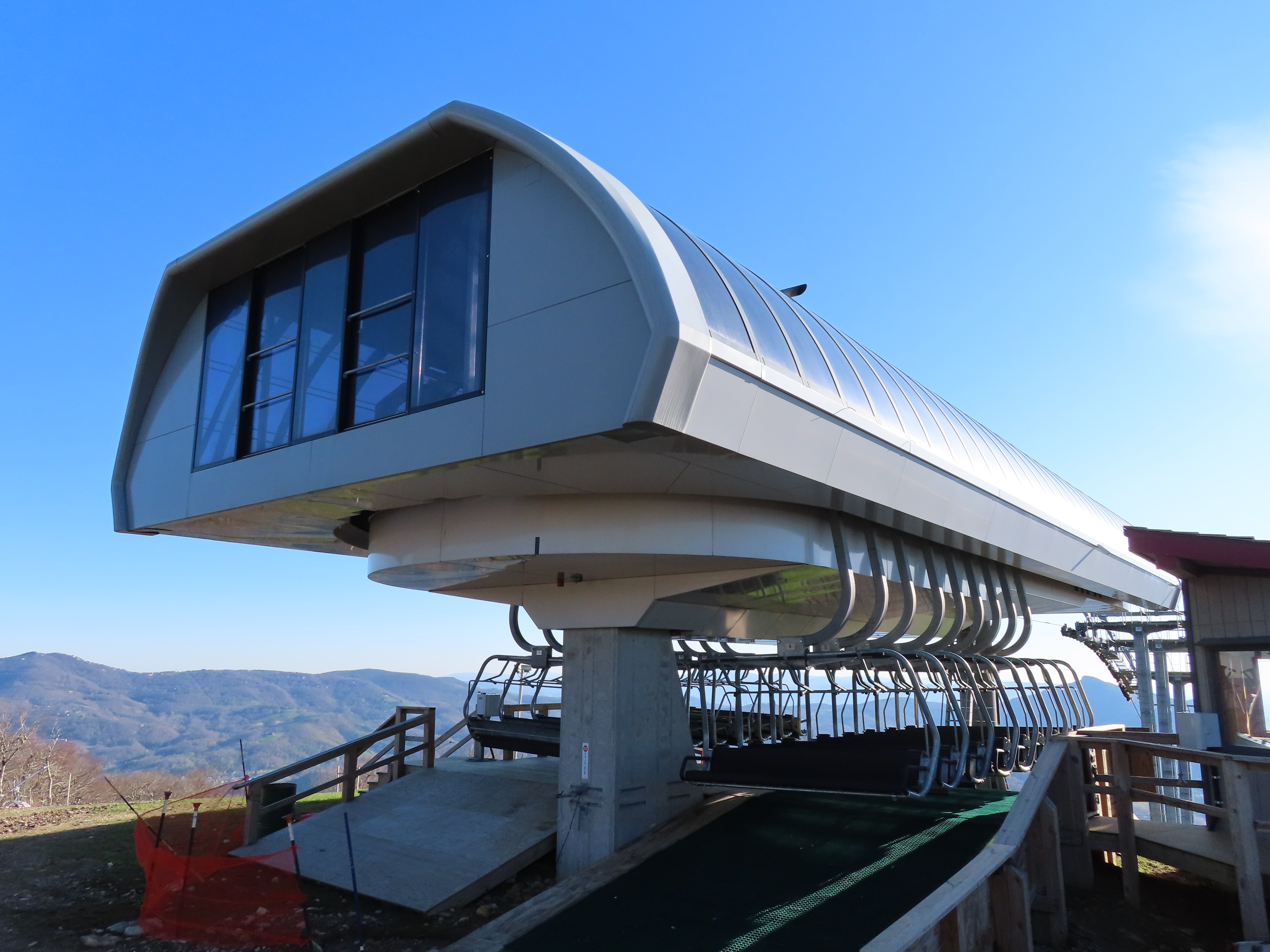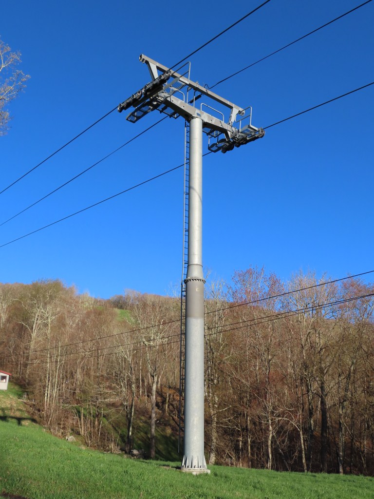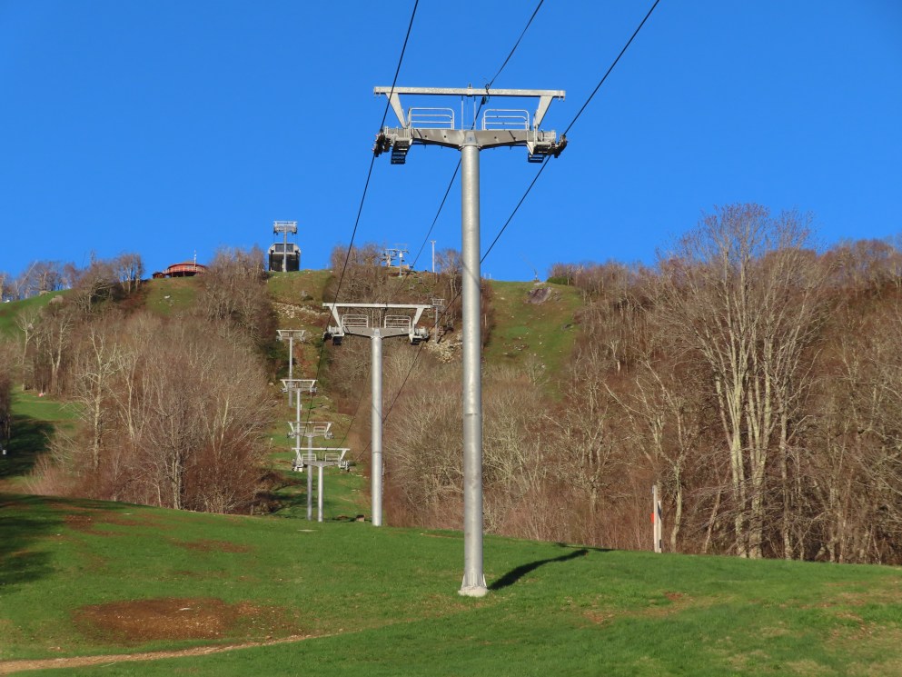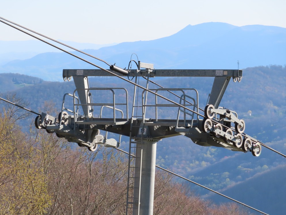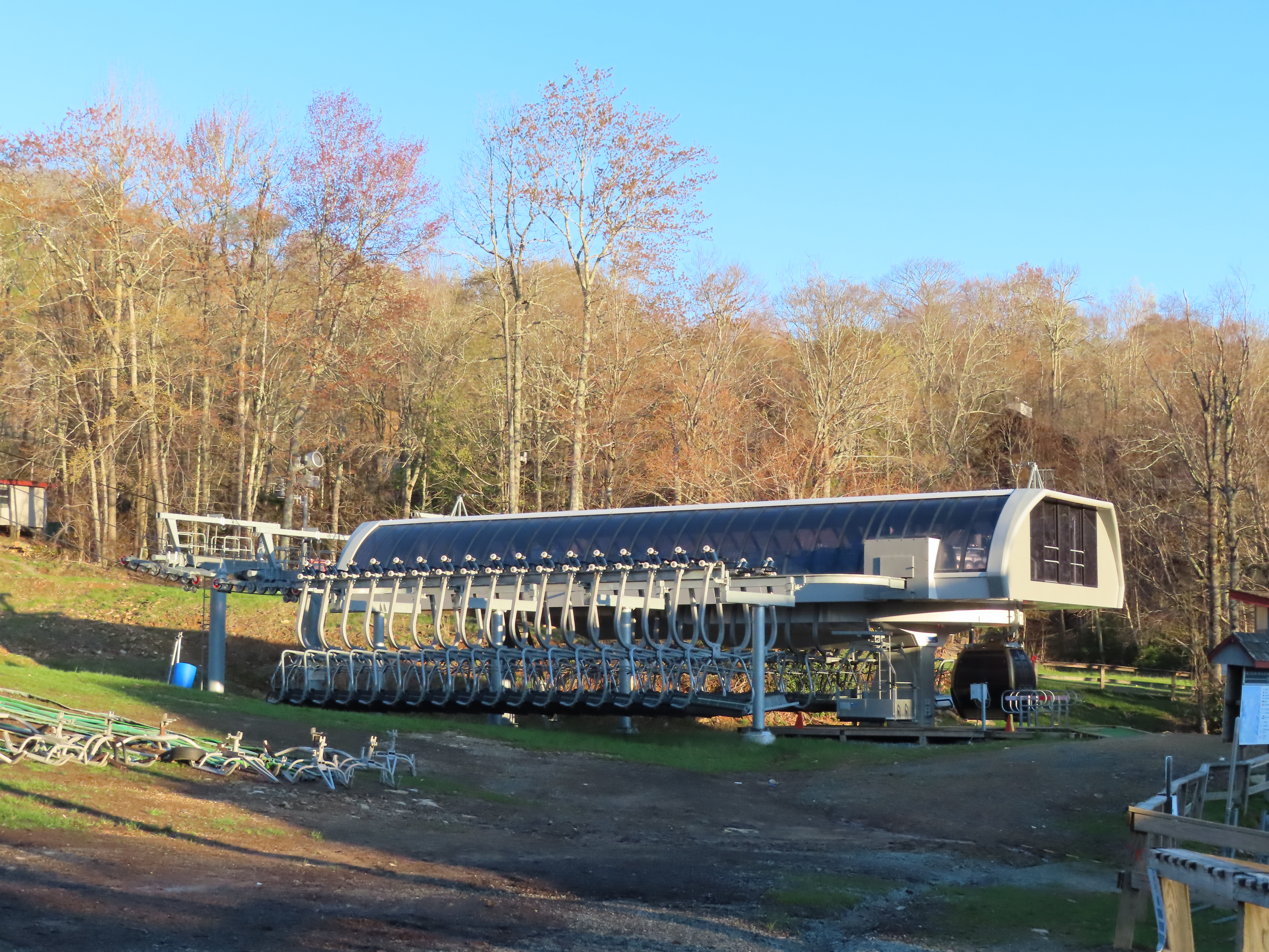 This Doppelmayr UNI-G detachable significantly improved the lift experience at Sugar beginning in 2015. It operates winter and summer.There is chair parking in both terminals and on a short stub rail at the bottom.Loading area. As shown, this lift is also gondola capable.Lower station and towers 1-2.An empty lift line.There used to be two double chairs with a total of seven stations on this alignment.A European style tower.Middle part of the line.View down near the summit.T14.Side view of the top station.Looking down from the breakover.Towers 15, 16 and 17.Unloading ramp.Side view of the top station.Long UNI-G station with carrier parking.6-2 combo assemblies.Lower part of the line.Uphill side of the return station.Riding up in winter.Chairs on this lift have extra long hangers due to gondola capabilities.Arriving up top.Middle part of the lift line.Upper lift line.Lower lift line.Bottom station in winter.VIP gondola cabin.Lift line parallel with Little Gray.Combo assemblies.Riding into the breakover.View from the summit.Towers 1 and 2.Leaving the bottom station.European style tower.EJ chair with Agamatic grip.The final three towers.Long top terminal.Lower part of the line.
