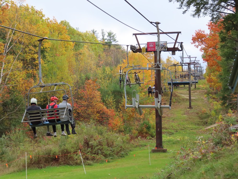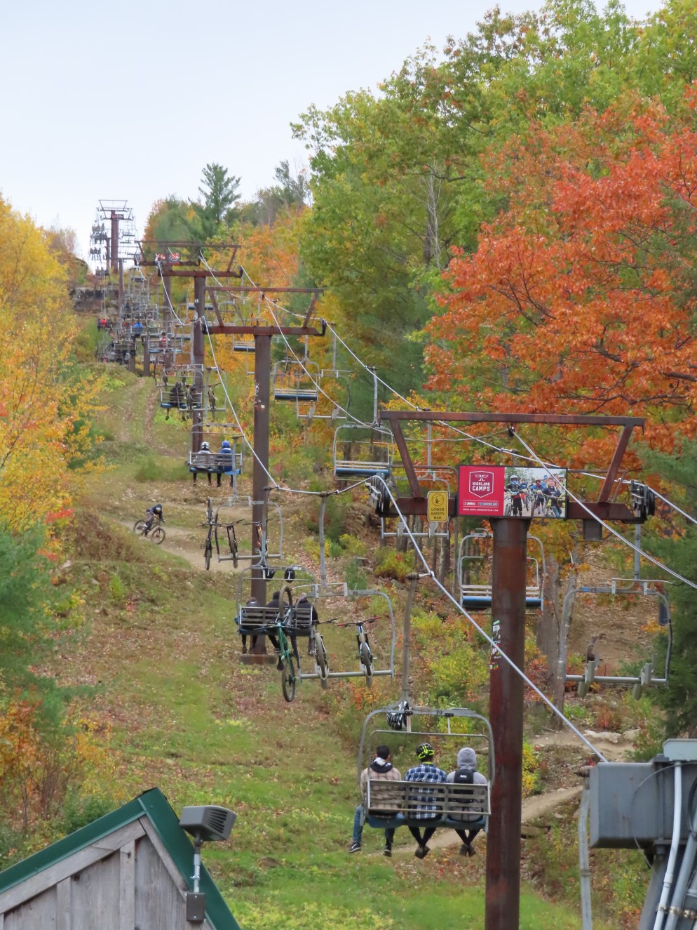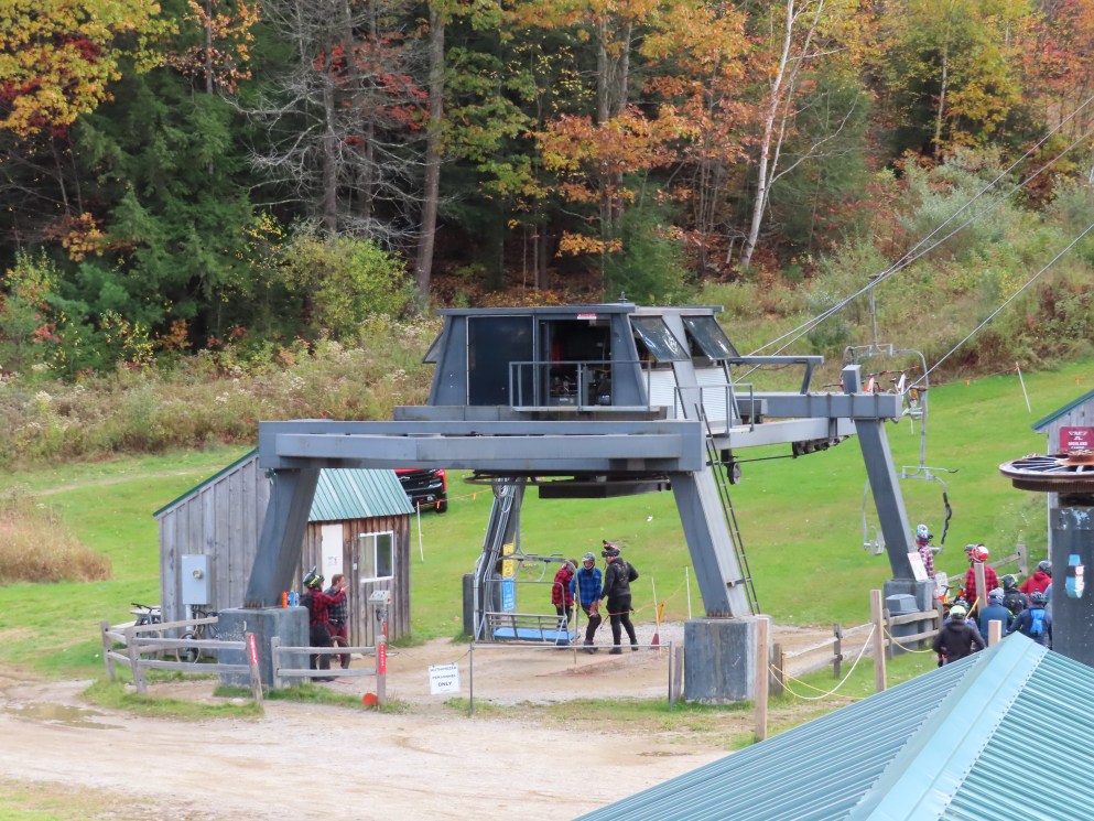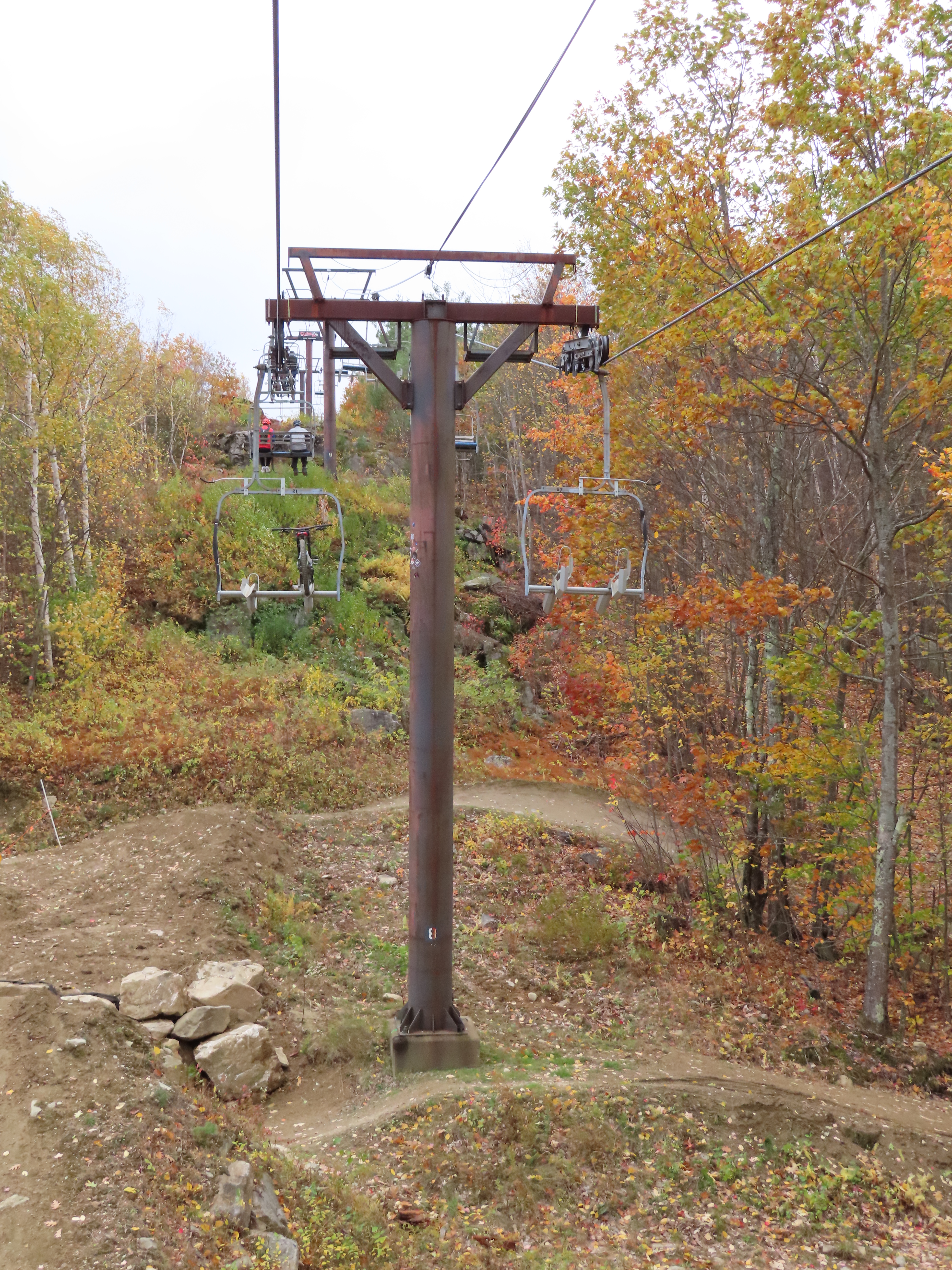 The new (old) Leitner chairs from Nashoba Valley are far less comfortable than the originals pictured here, but at least they help with the lines a bit. Their lack of footrests is most annoying, though. Thankfully, five unmodified Borvig chairs are still in use, as the lift at Nashoba didn’t have enough.