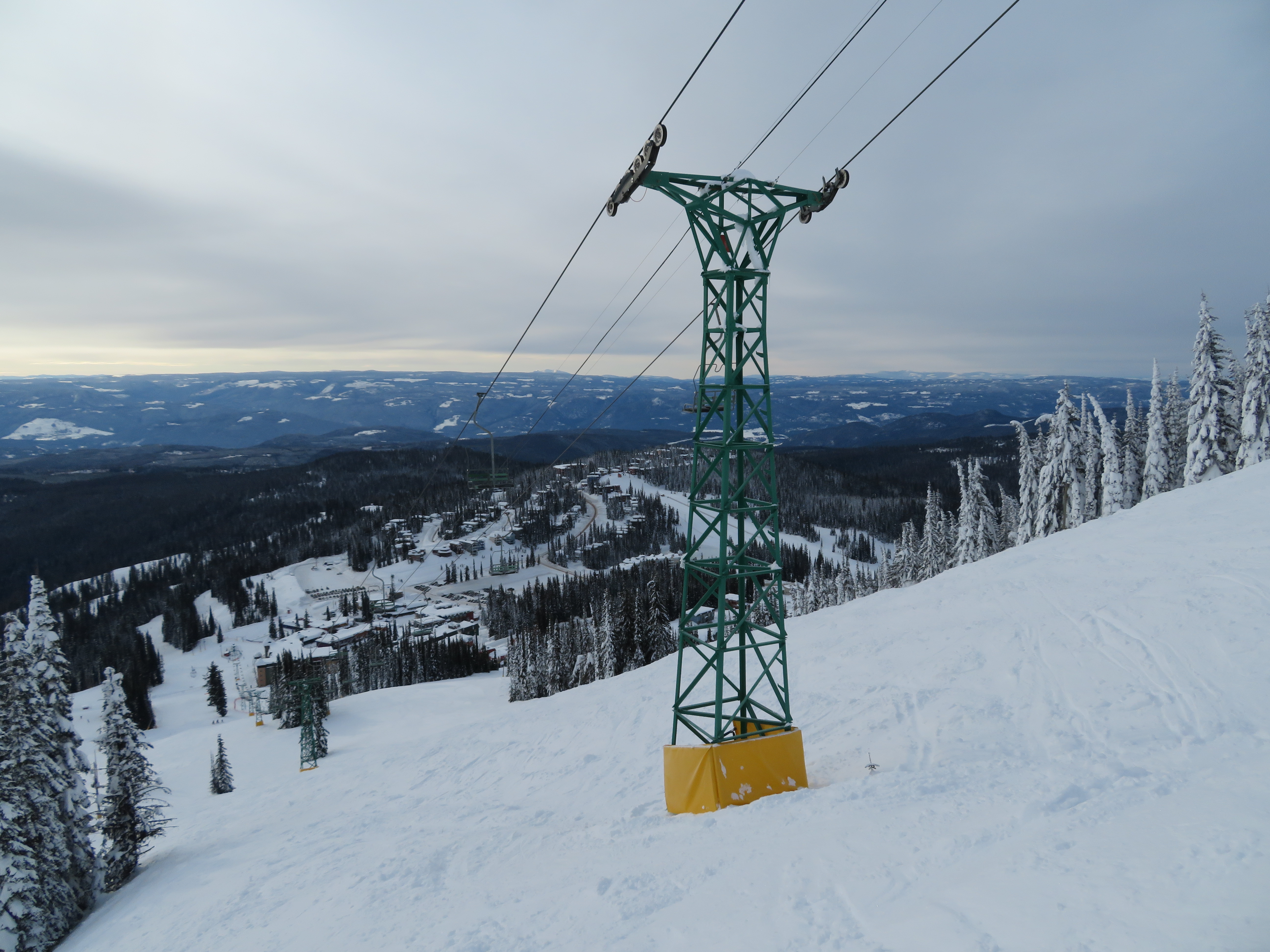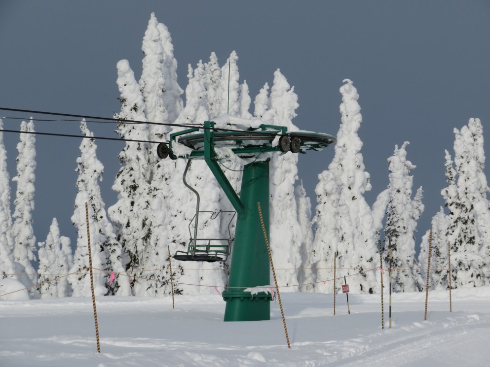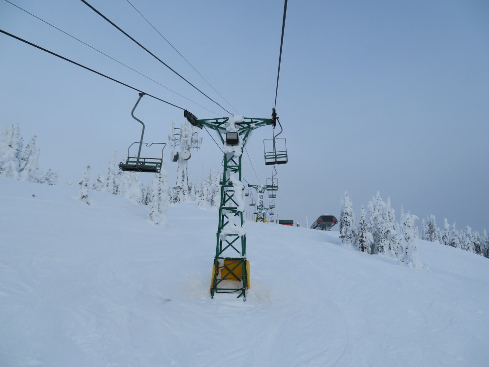 It’s a classic GMD Mueller lift. Many Muellers were built in British Columbia, but few remain operational. There was once even a Mueller gondola up Mt. Hays with the classic lattice towers, but that is long abandoned.
