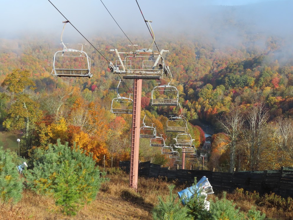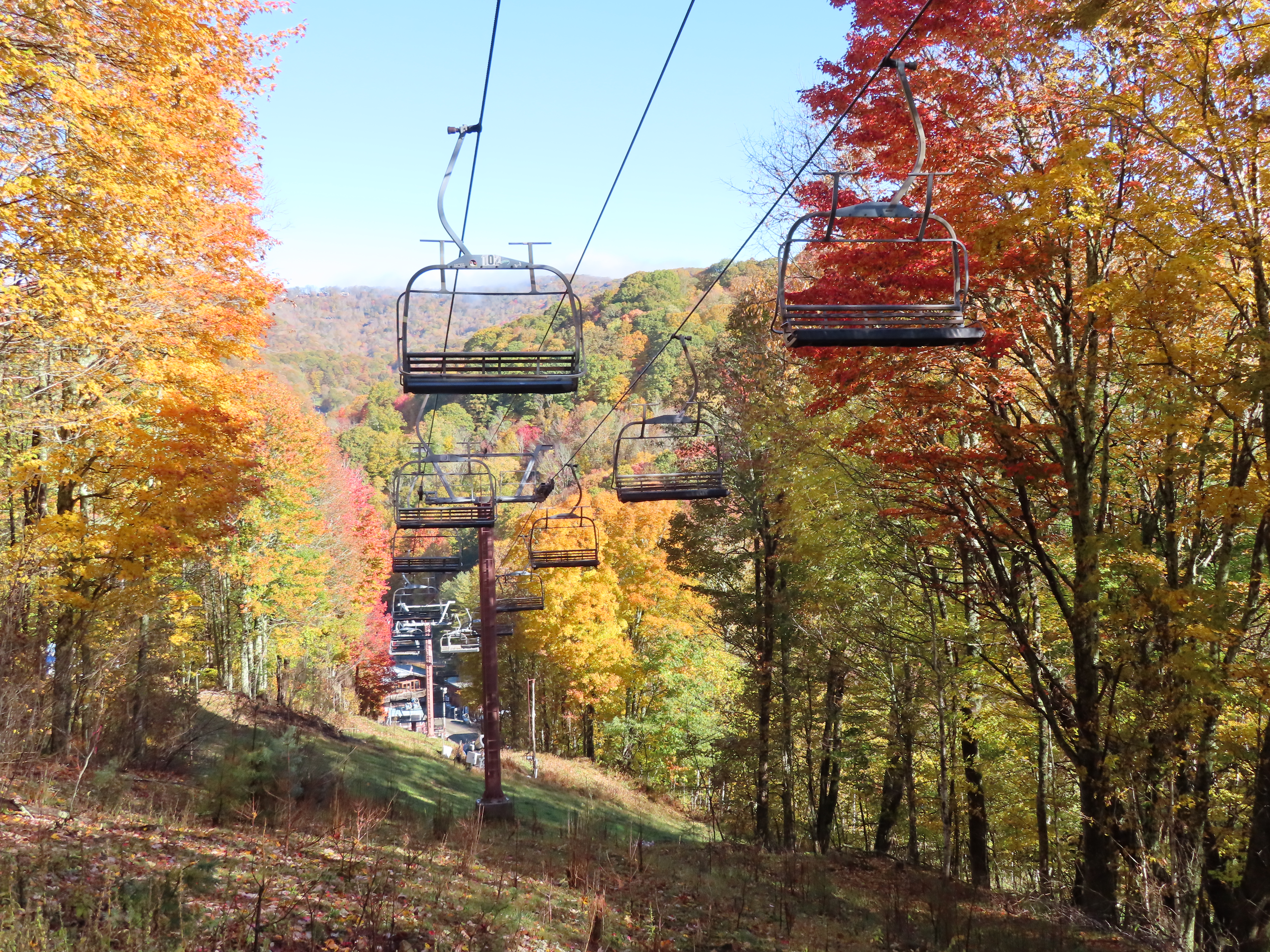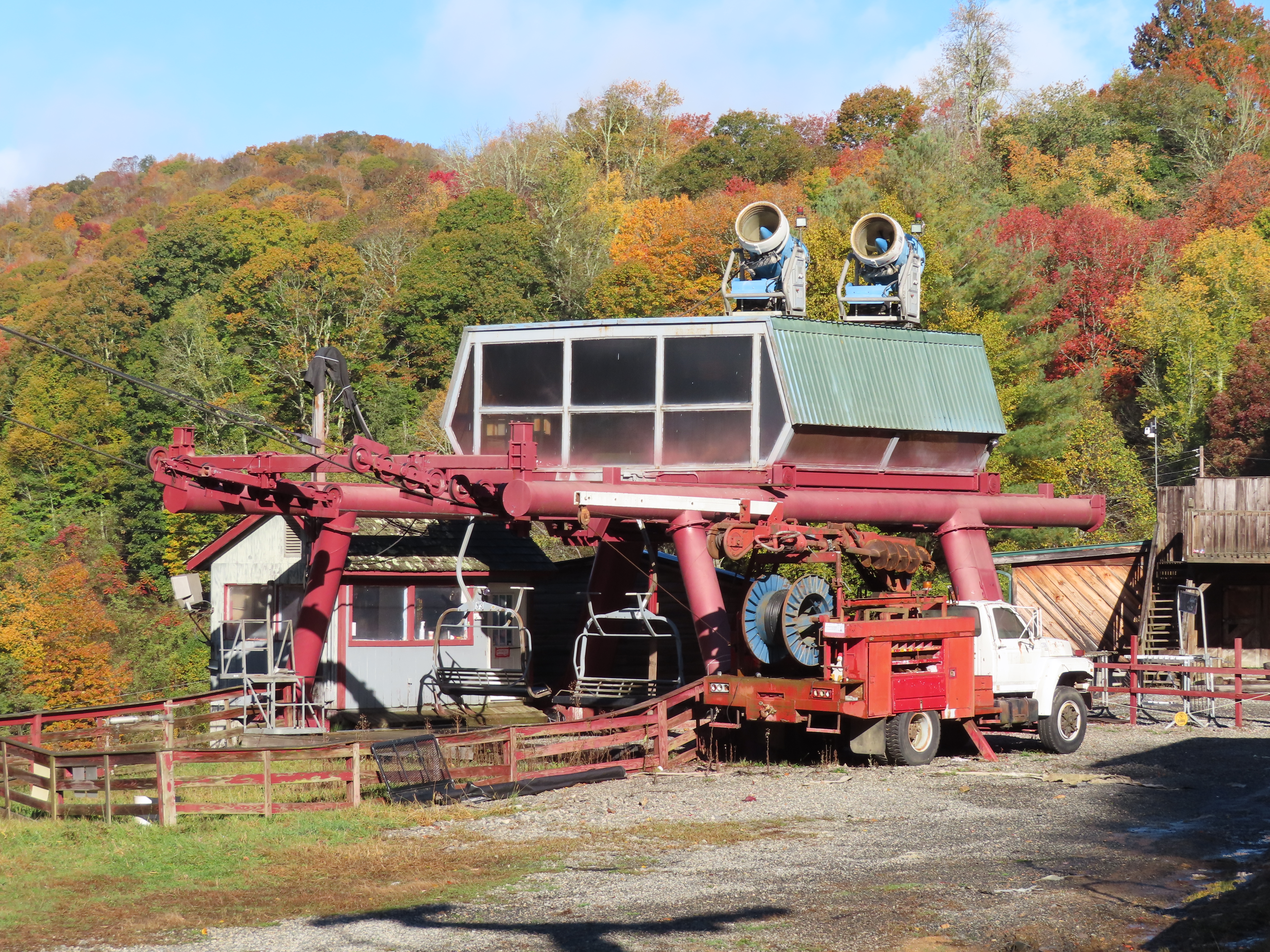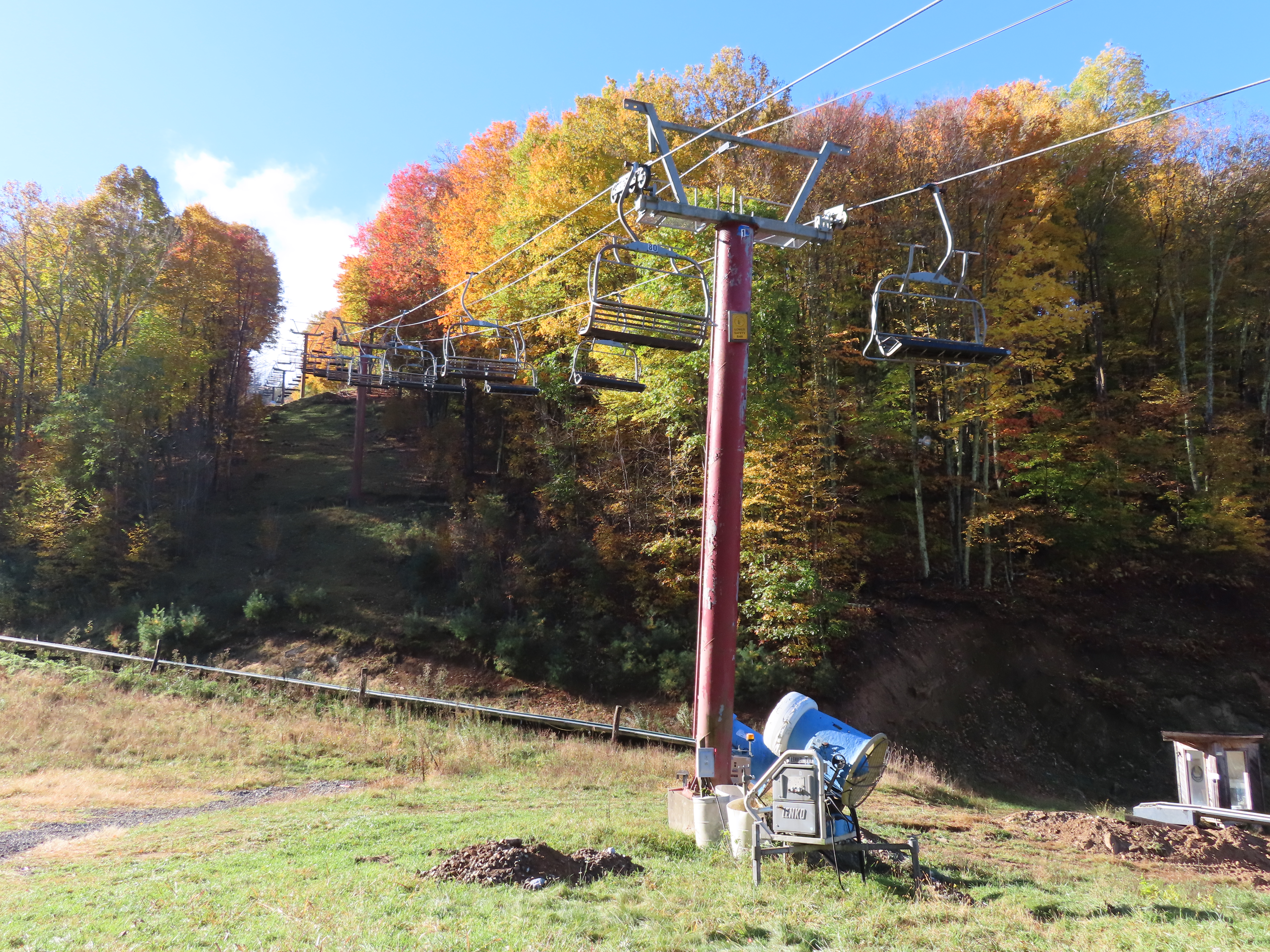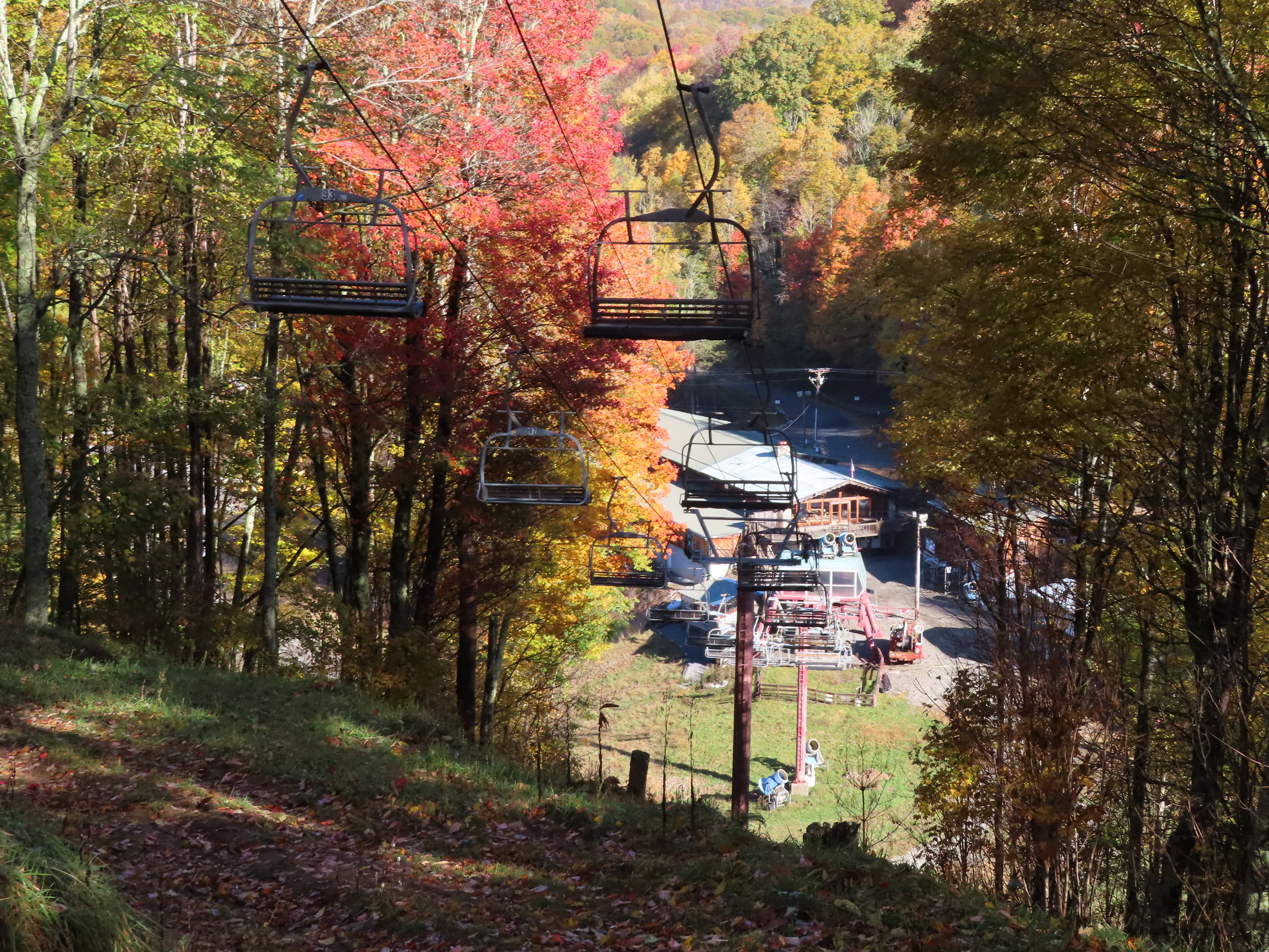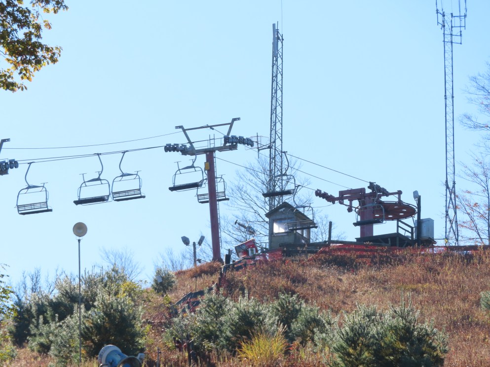 This quad opened in 1988 and effectively replaced a two lift ride from the base to summit.The top terminal and last towers.Return bullwheel and unloading area.View from the summit.Sheave assemblies integrated into the top terminal.Bottom terminal building.View up from the base.Loading area.Doppelmayr drive/tension station.Lower part of the lift line.Middle lift line.Just below the first offload ramp.Looking down from the middle station.Tower at the mid unload.Mid-station overview.Upper part of the lift line.