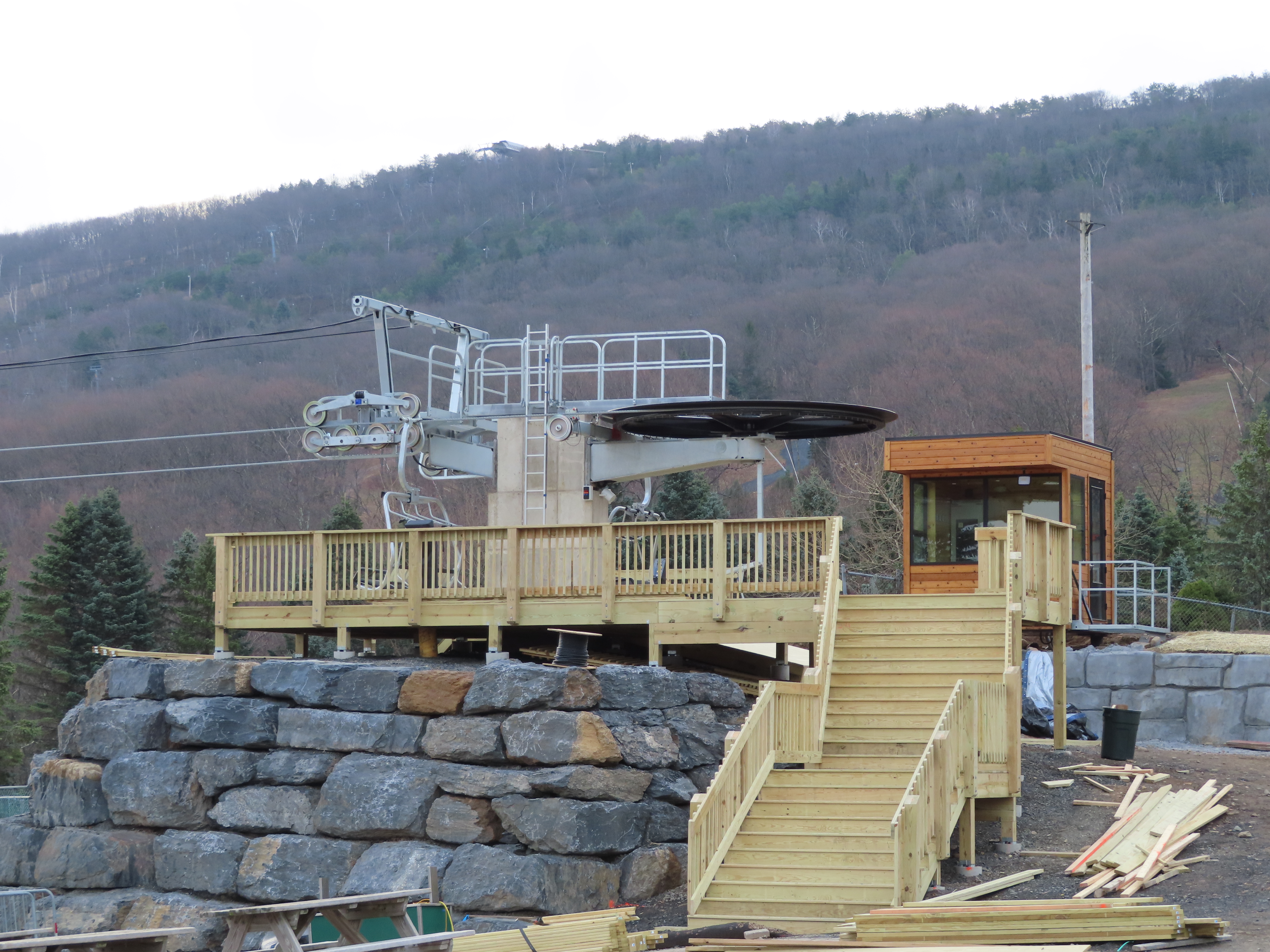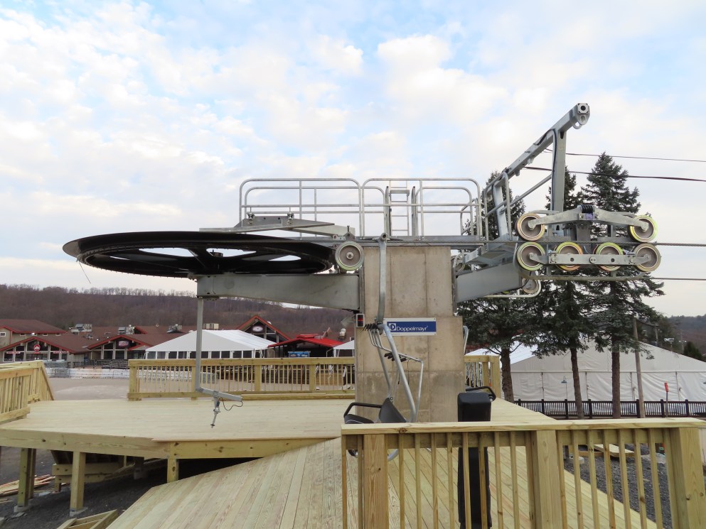 Interesting how they installed that massive deck at the top. Seems like they intend to use this lift in the summer. It basically connects the hotel, indoor waterpark, mountain coaster, and alpine slide to the waterpark.