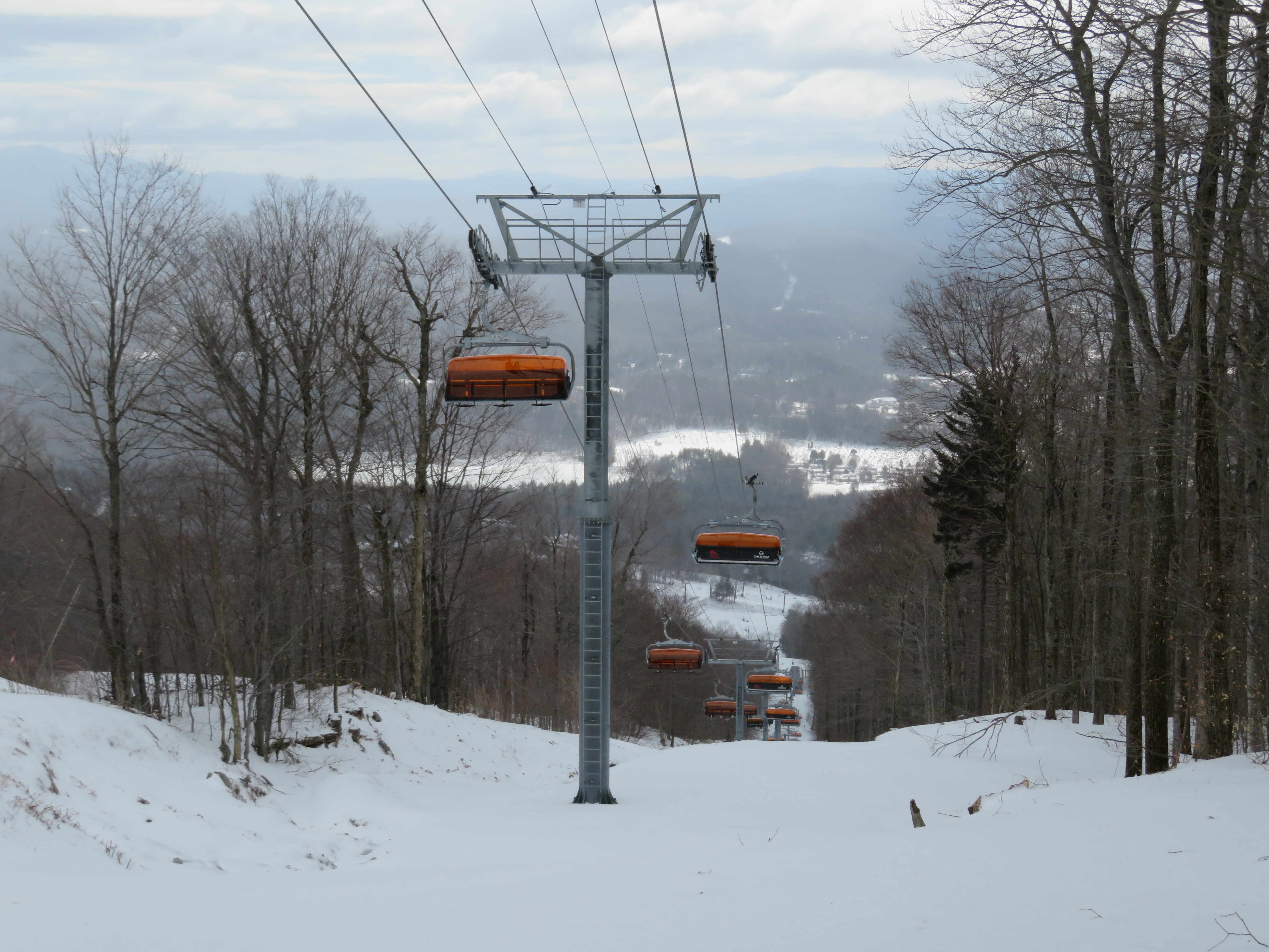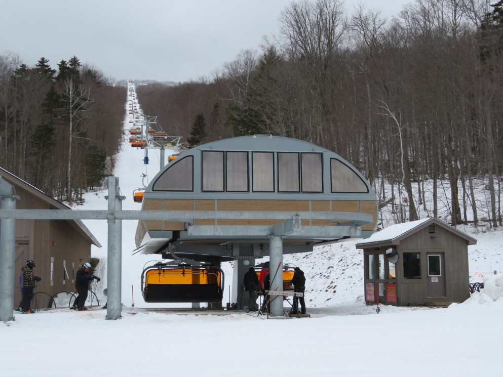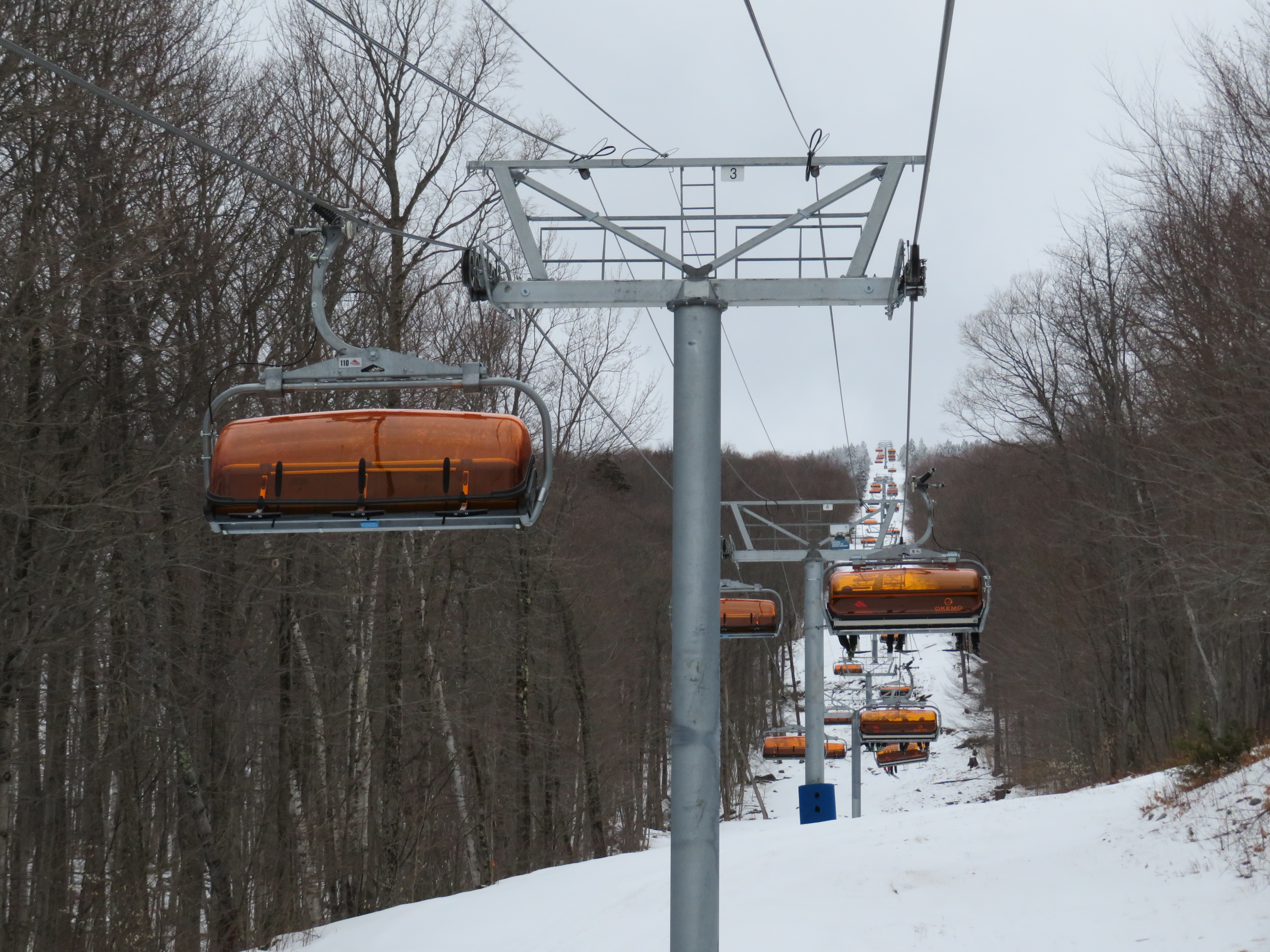 First six-pack in Vermont and first one I’ve been on. This is by far the most busiest lift. The single line helps a lot. The orange bubbles are cool. I try to avoid this lift by all costs
