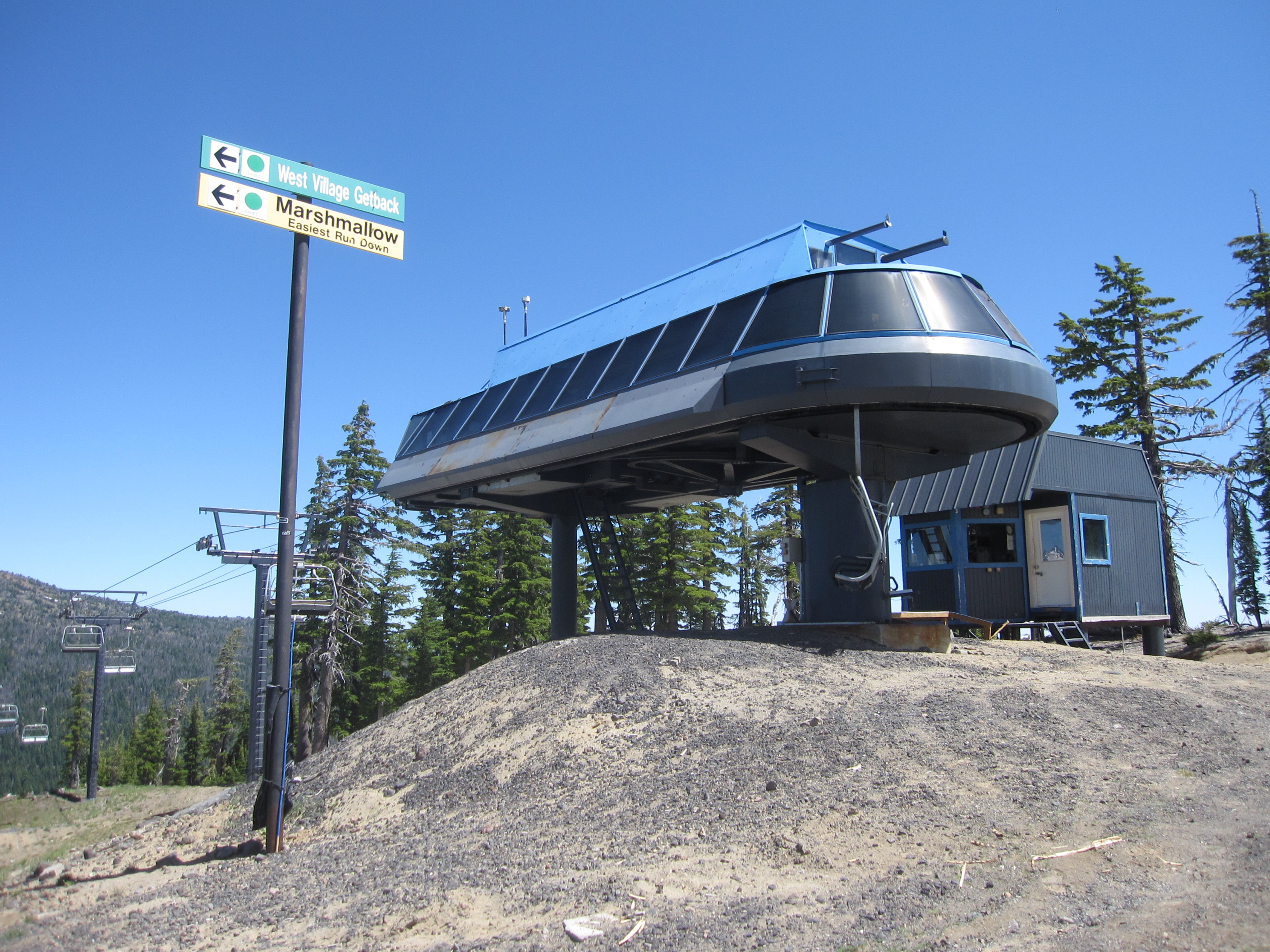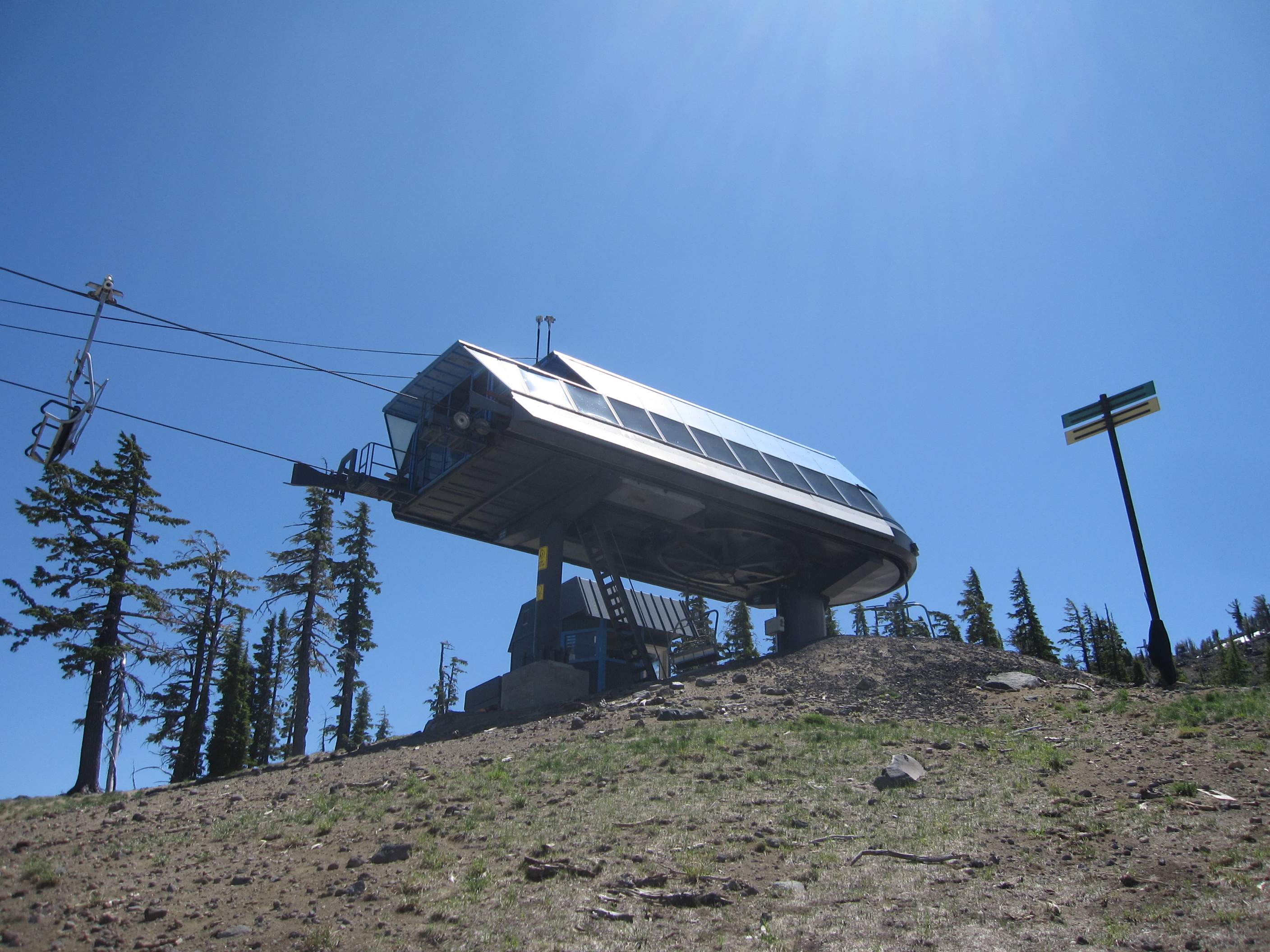 Bottom terminal in the summer.Height-adjustable detachable terminal.Top terminal from below.Another view of the top.Doppelmayr Uni terminal.Looking down the line.Looking up the lift line.Bottom station from above.