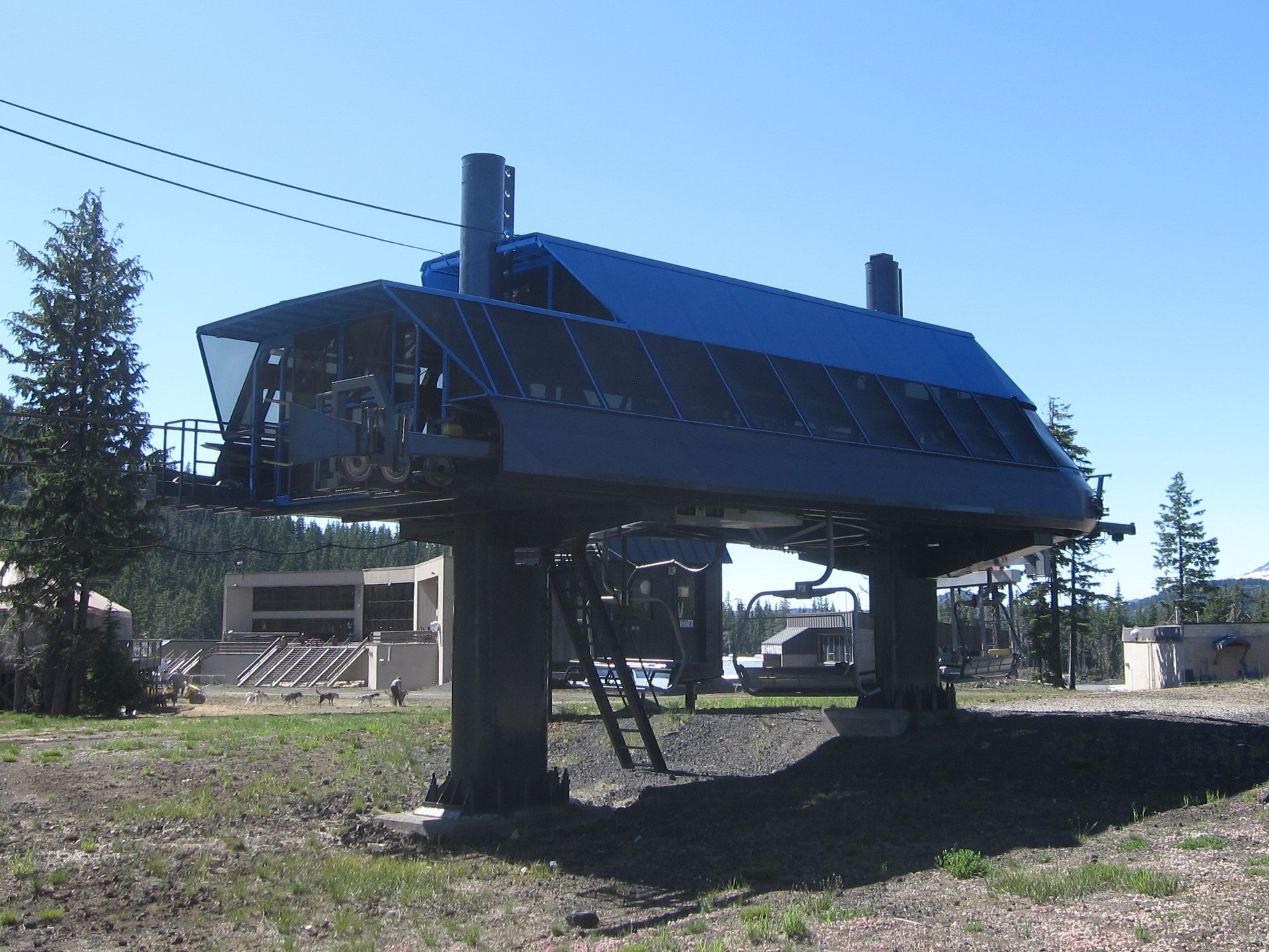 These are the short 1993-1995 UNI terminals. Camelback has them and so does Alpine Meadows on the Roundhouse Express. They only allow for speeds of up to 4.5 m/sec. Design capacity can be up to 2800 just like on the full length terminals. The chairs will just be spaced closer to make up for the lower speed. I think they went with the short terminals here because the lift is very short. They are cheaper to install, and the ride time isn’t increased that much with the short length. It’s also a beginner lift and wouldn’t likely run full speed even if it had the longer terminals.