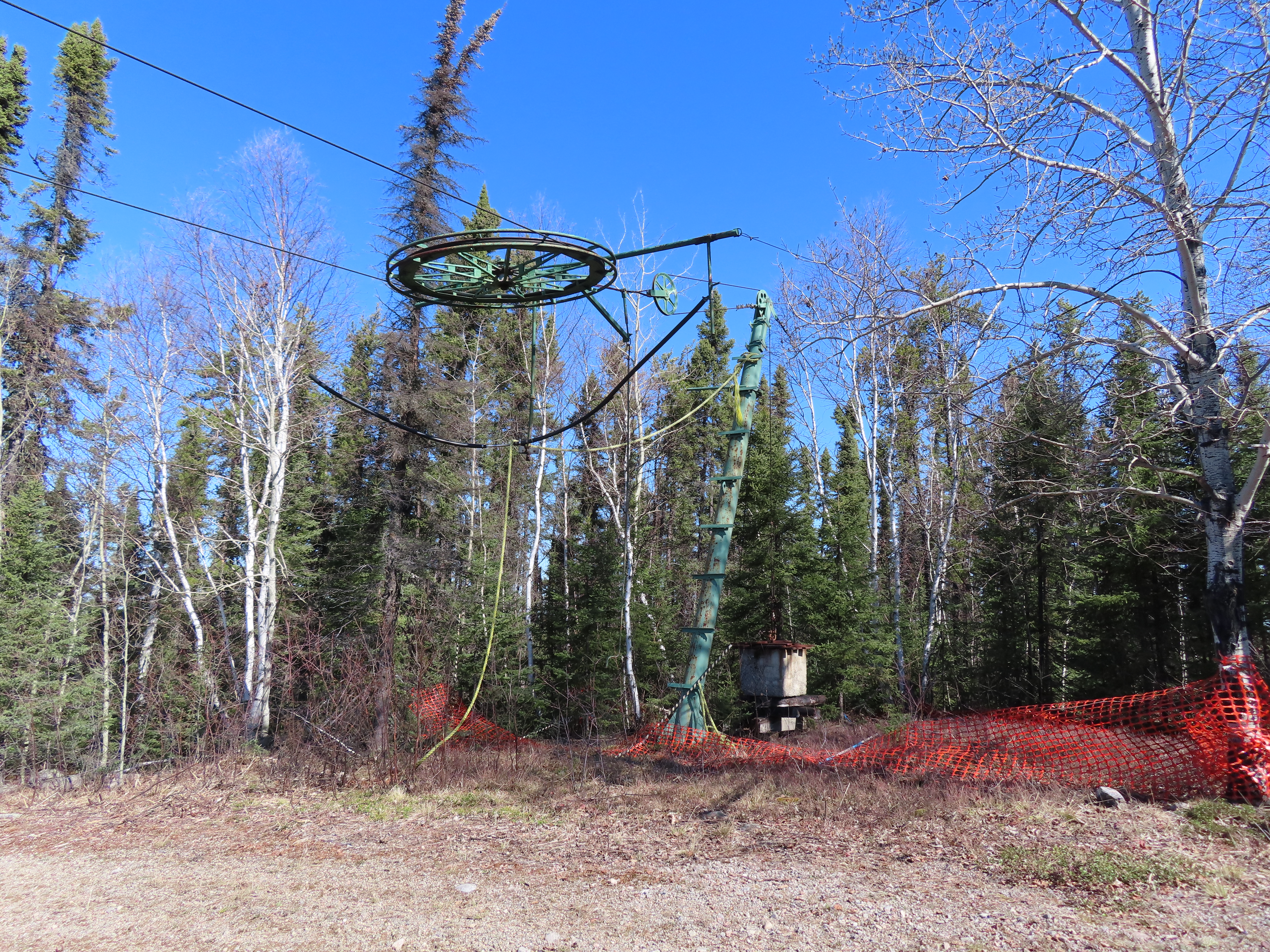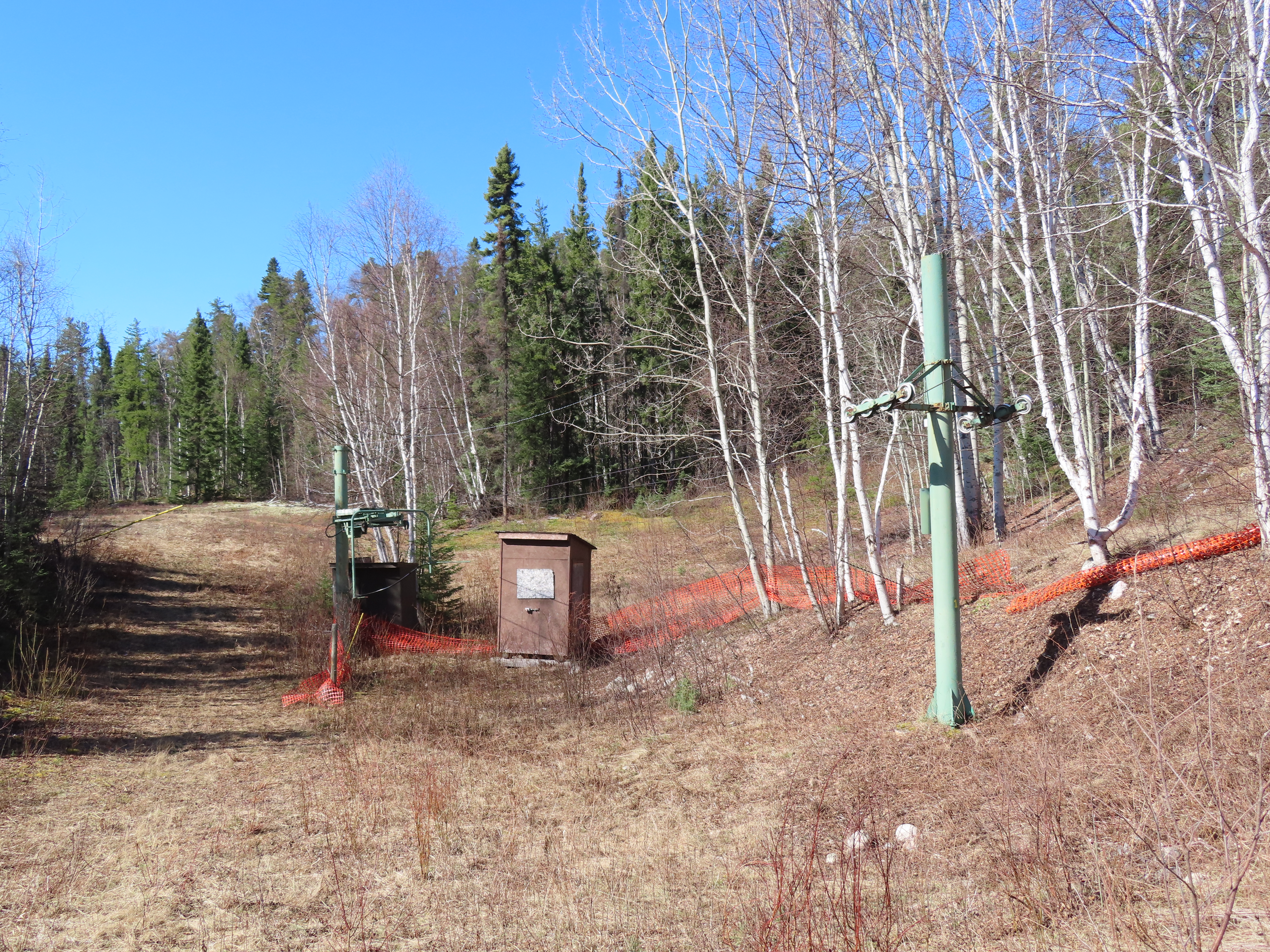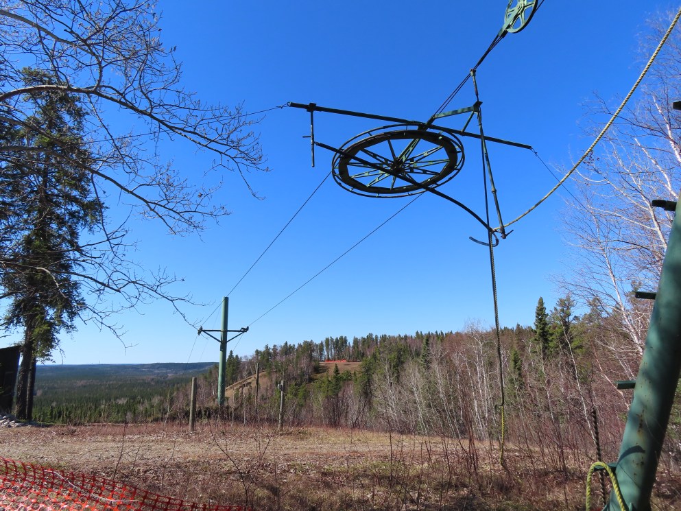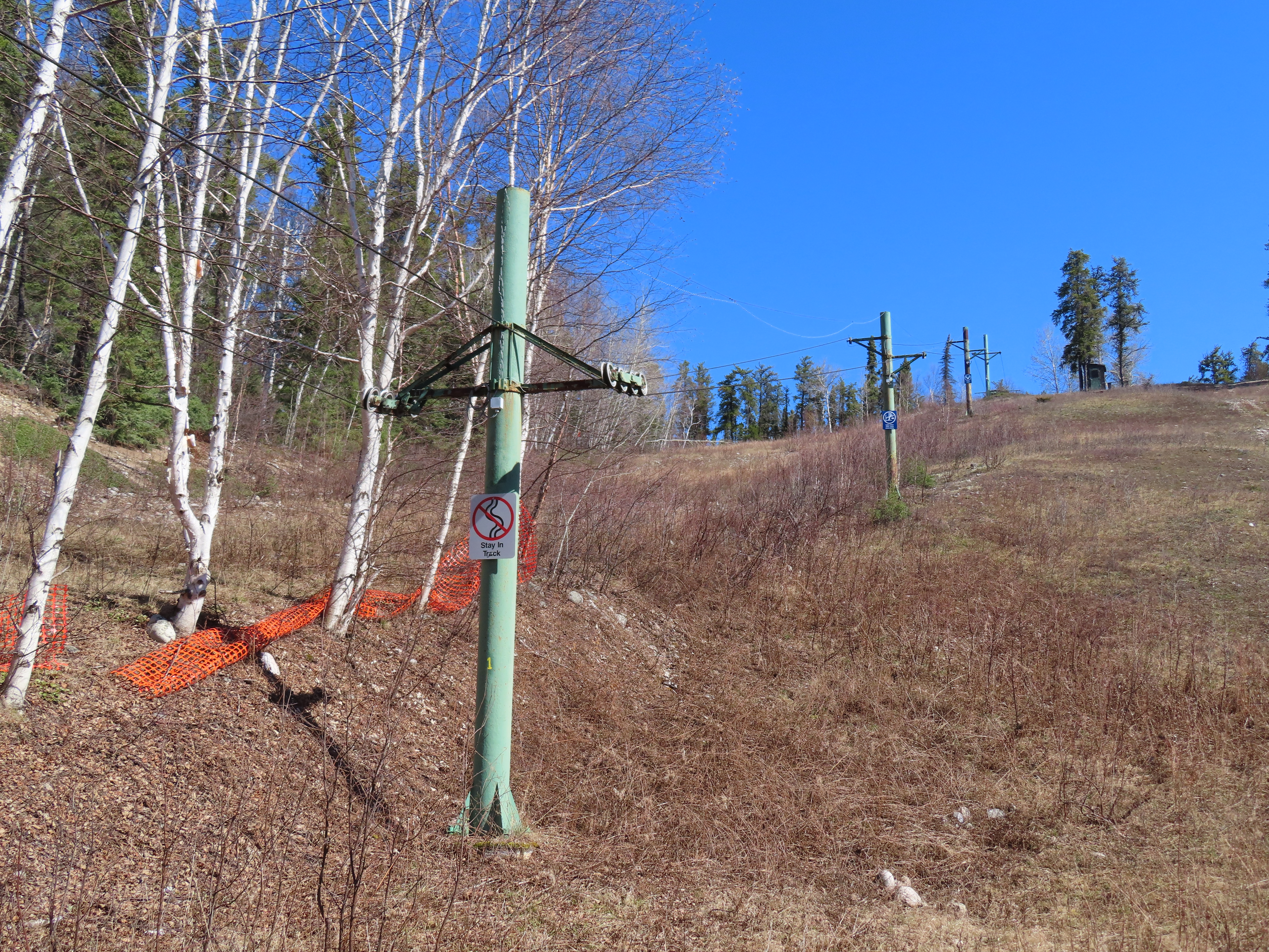 As the name suggests, this lift services a south facing terrain pod at the edge of Mystery Mountain.Lift overview.View up at tower 1.Loading area next to the drive station.Tower 3.View from the summit.Floating top bullwheel and counterweight.Unloading area.