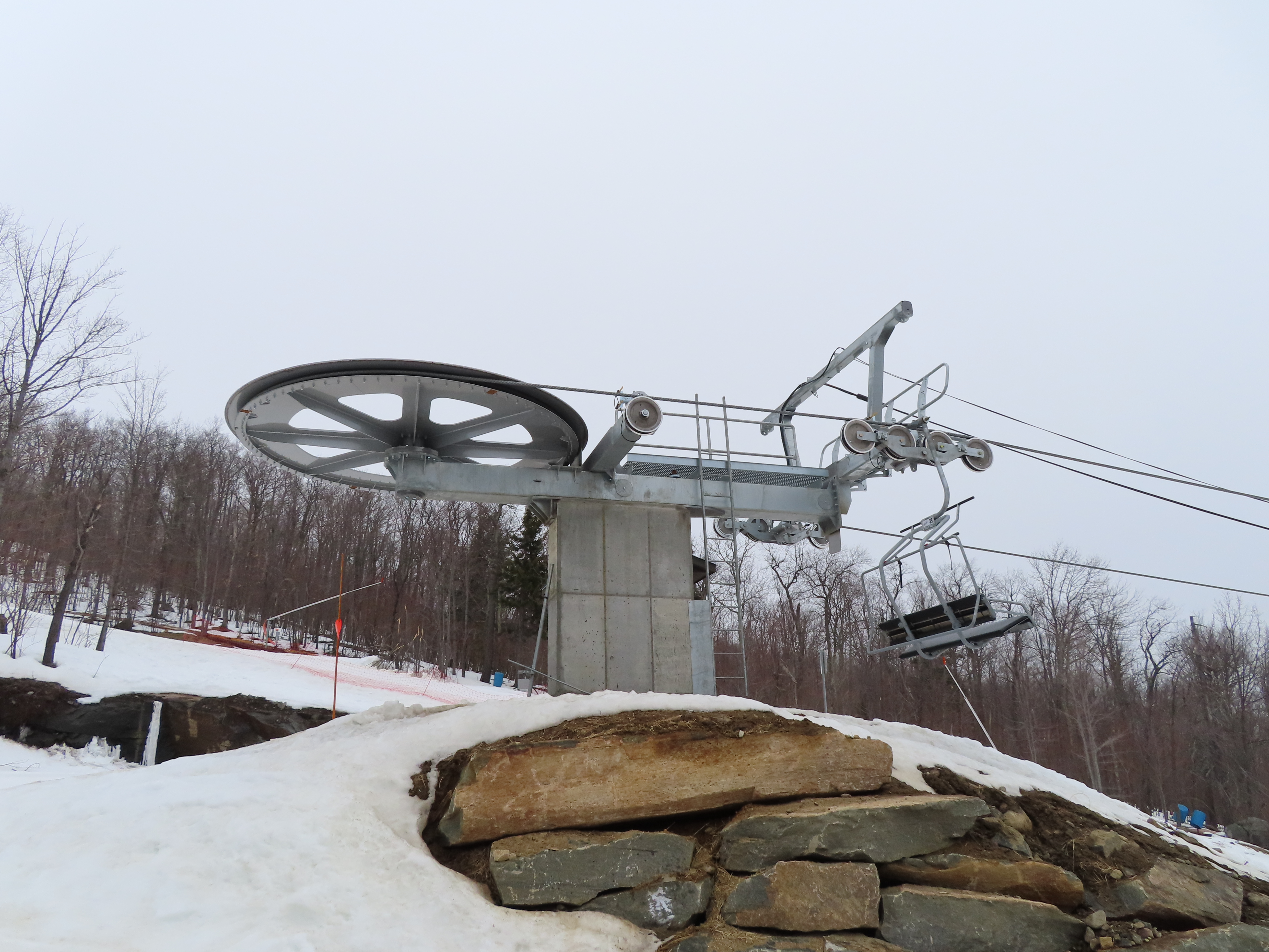 This lift has no mid station, unlike the lift it replaced. The former Cutoff trail was widened, regraded, and received snowmaking, and is now called Pete’s Paradise which is rated green. That eliminated the need for the mid station. The top terminal is further uphill compared to the old lift, which widens the trail under the upper portion of the lift, a major choke point before. The loading carpet also makes loading easier for beginners, so the lift runs faster and has fewer stops and slows than the old lift. It’s been a good upgrade for beginners, but seems to be underutilized. It never has a line, and ski school seems to bypass it and go straight to the Adirondack Express (they’re not allowed on the gondola this year due to covid). I remember the double that this replaced could sometimes have a significant line, mostly due to ski school. In a normal year, there is more ski school, which may result in this lift being used more.