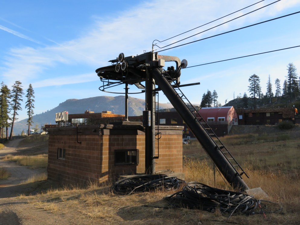Lift line with chairs removed and comline replacement underway.