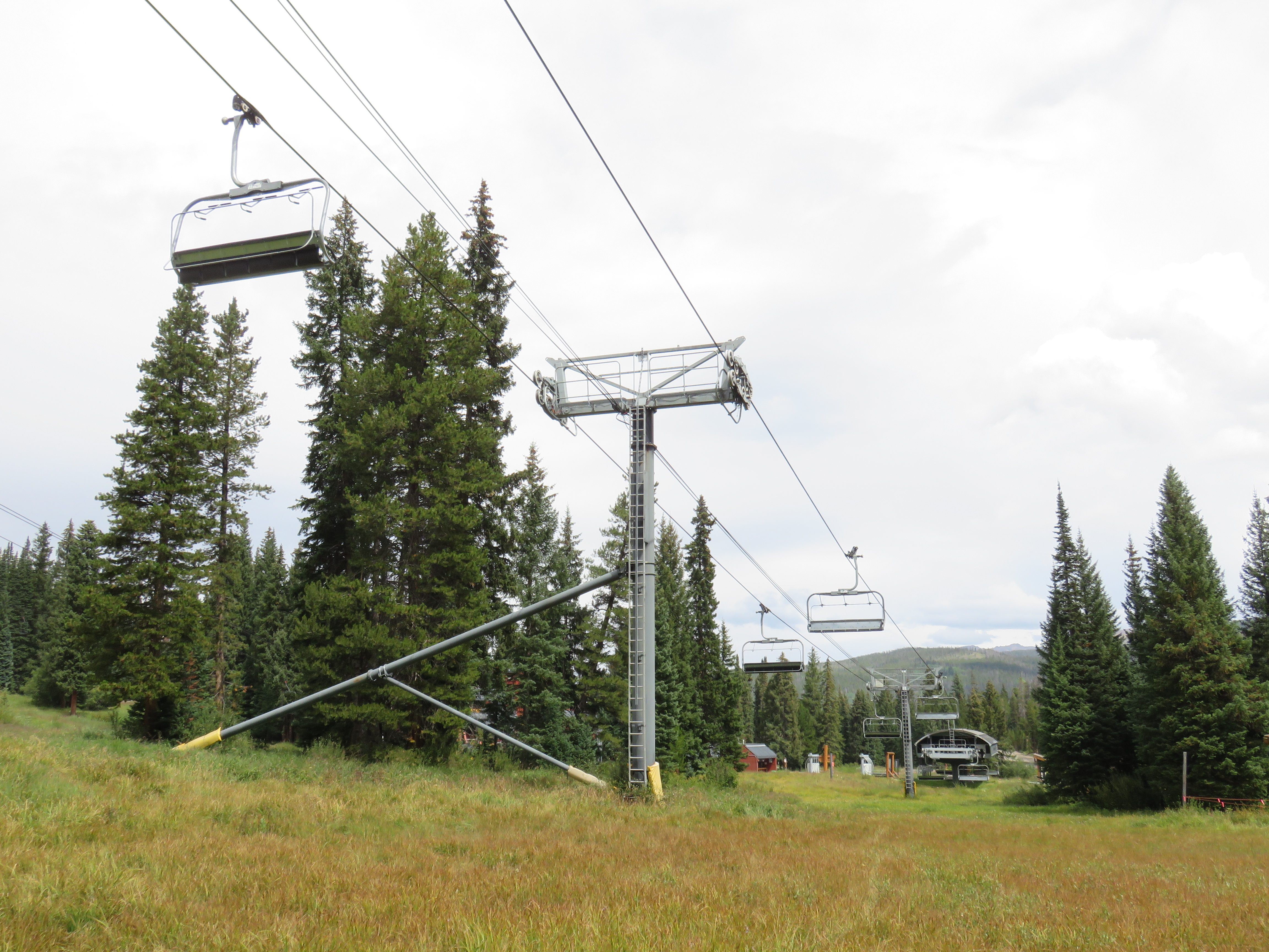 Some of the towers could have been reused from the previous lift. I would assume that the the white towers were reused because there are lees of them. Summit Express was relocated to Mission Ridge on a shorter alignment, which would mean that less towers would have been necessary, leaving some existing towers that could be reused. Also, the last few towers are the same as the rest of the lift. Summit Express had a portal tower at the top and this lift has regular tube towers past the breakover.