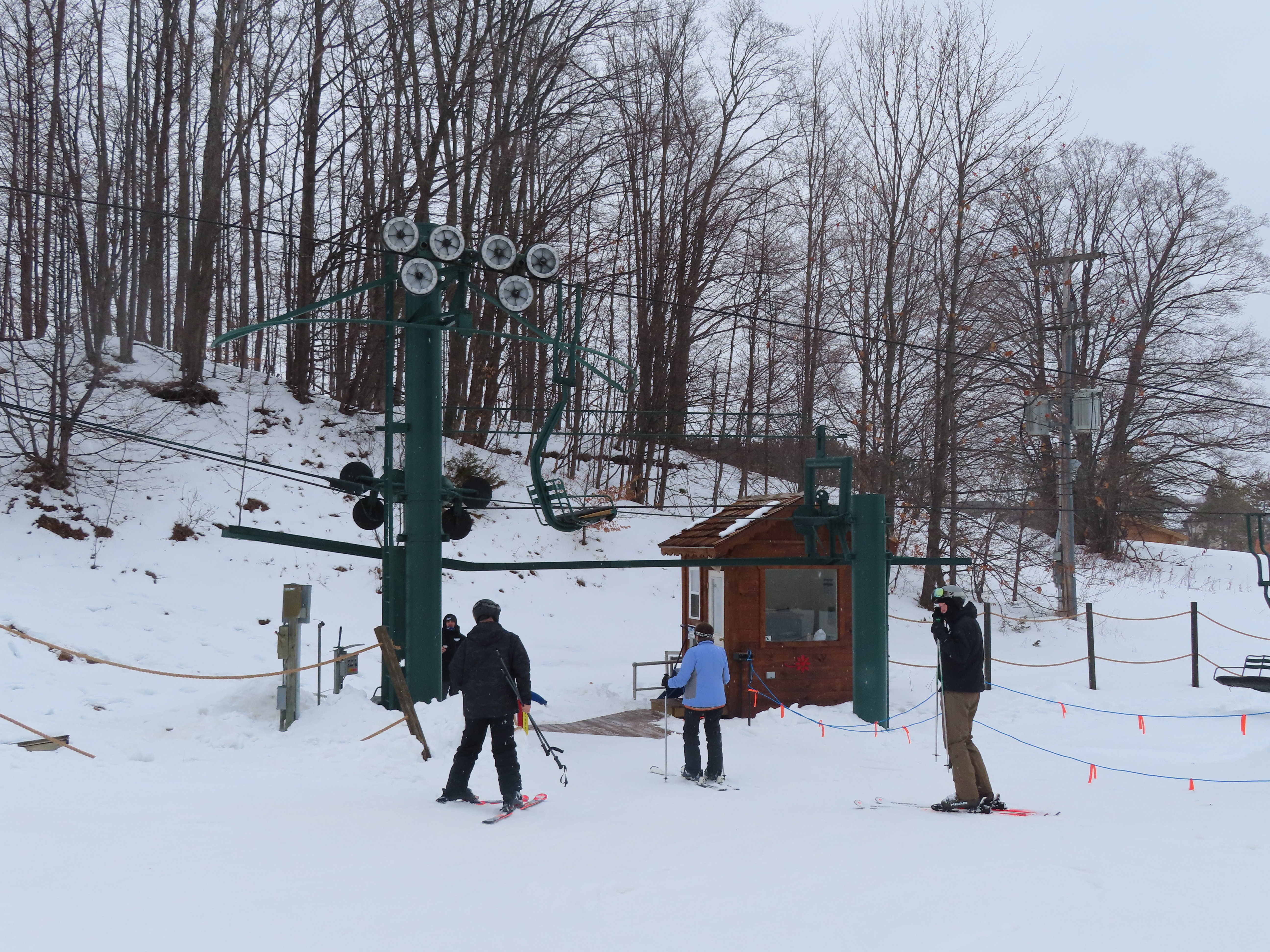 There used to be lifts on both sides of Superbowl but this is the only one that remains.Loading area.Side loading.Return terminal.Large counterweight.Tension bullwheel.Lift line.Riding up. The old lift was on the left.Closely spaced towers.Unloading at tower 25.Vault drive.Unloading area.Another view of the drive bullwheel.Lift line.Middle section of the lift.