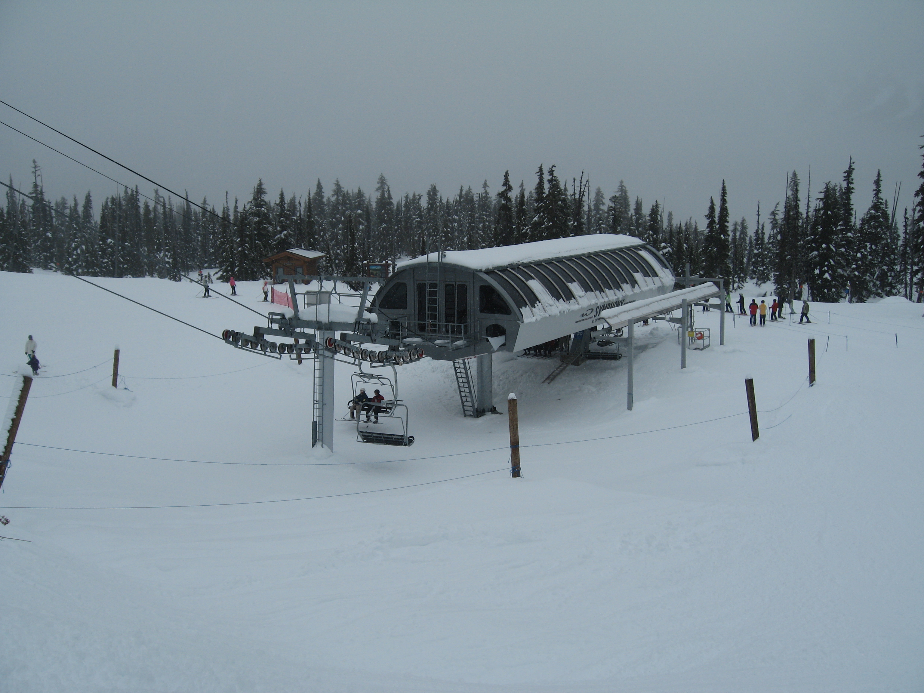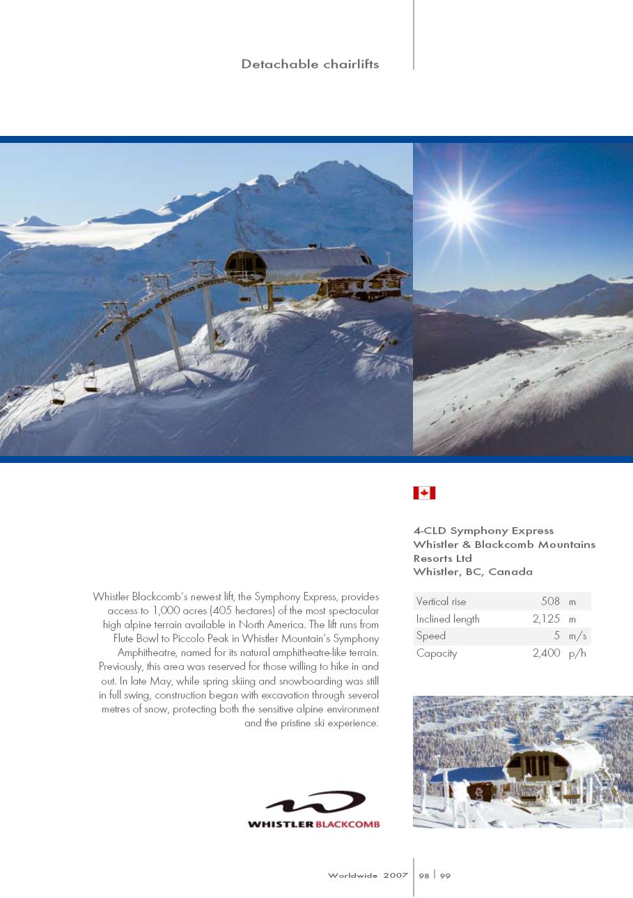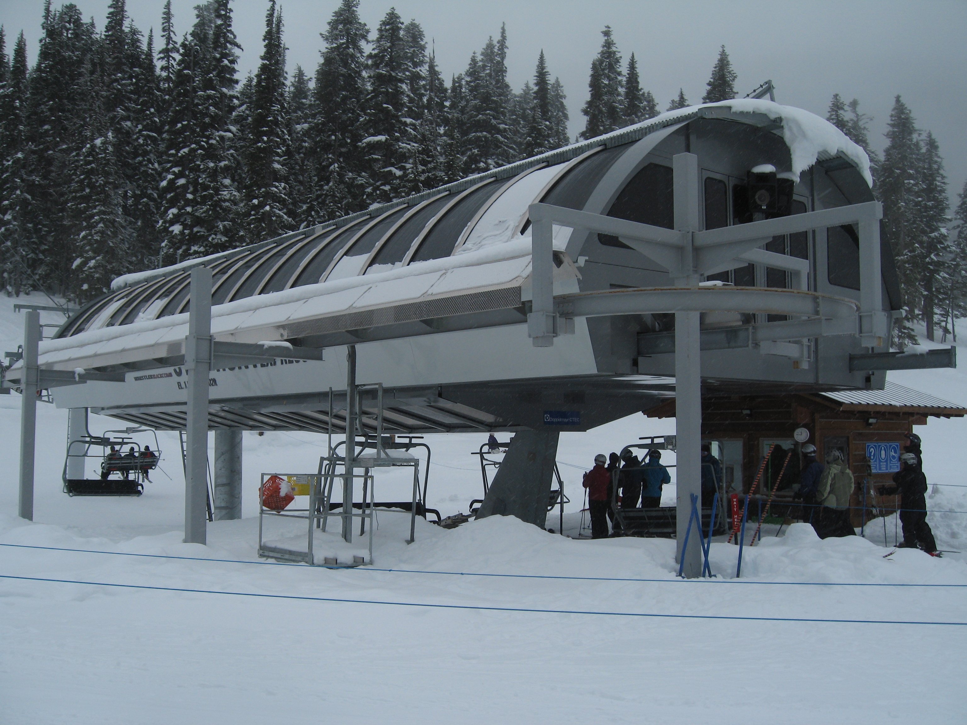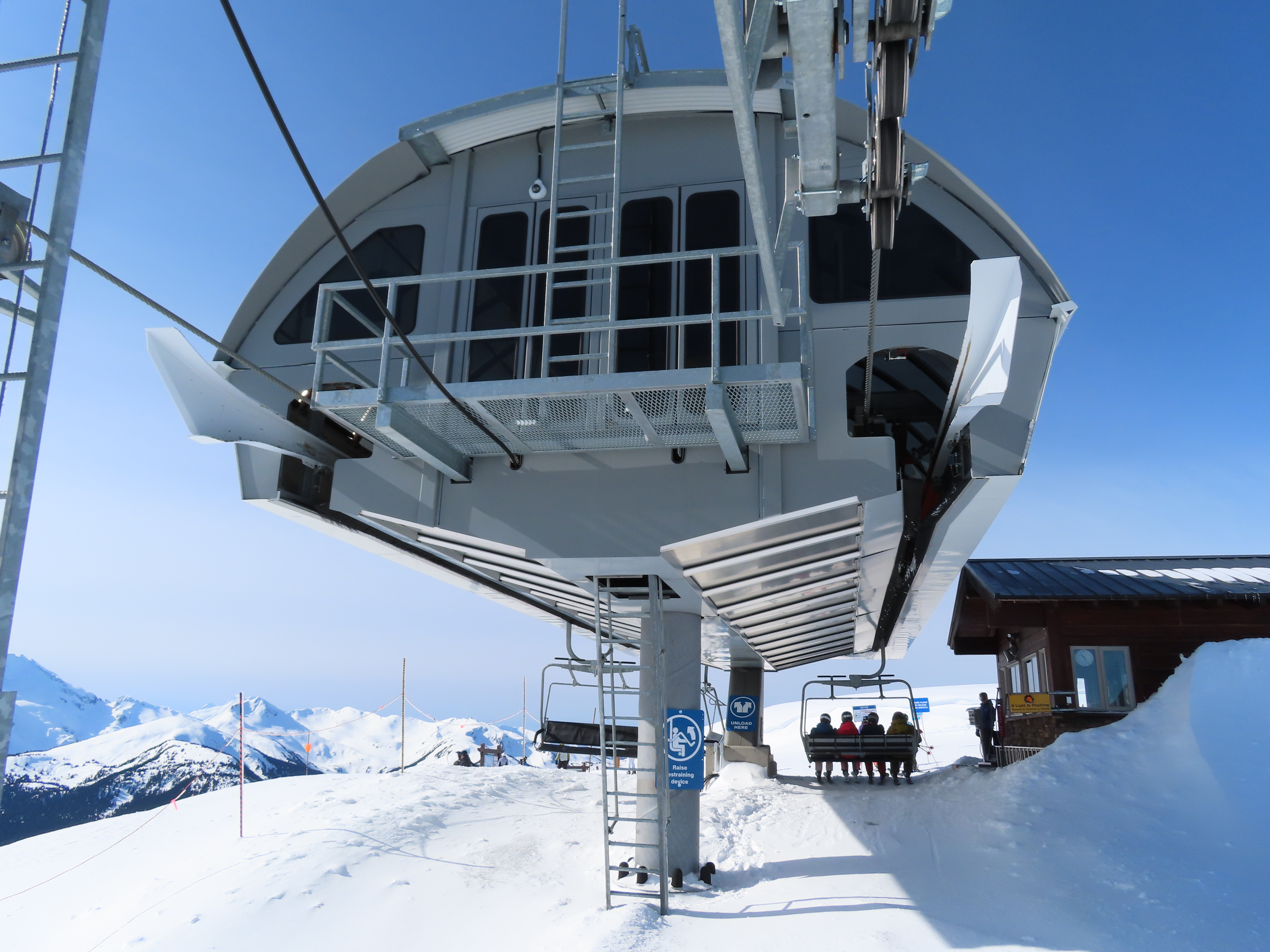 Doppelmayr CTEC Uni-GS bottom terminal.Riding up.Middle portion of the line.Bottom station with parking rail.Not all chairs can be parked here but there is enough space for the chairs that would be parked above treeline.Depression towers 20 and 21.The big top breakover.Top terminal seen from the Harmony zone.Final steep pitch.View up the above treeline portion of the line.Looking down the line and toward Blackcomb.Upper lift line.Doppelmayr CTEC merger era towers and chairs.Tower 1.View up the treed portion of the lift line.Riding near the summit.View back down the Symphony Amphitheatre.Breakover towers.Arriving at the summit.Unloading area.Top station overview.Uni-GS station.Another view of the final three towers.The top bowl.Amphitheatre seen from Blackcomb Mountain.Doppelmayr Worldbook entry.