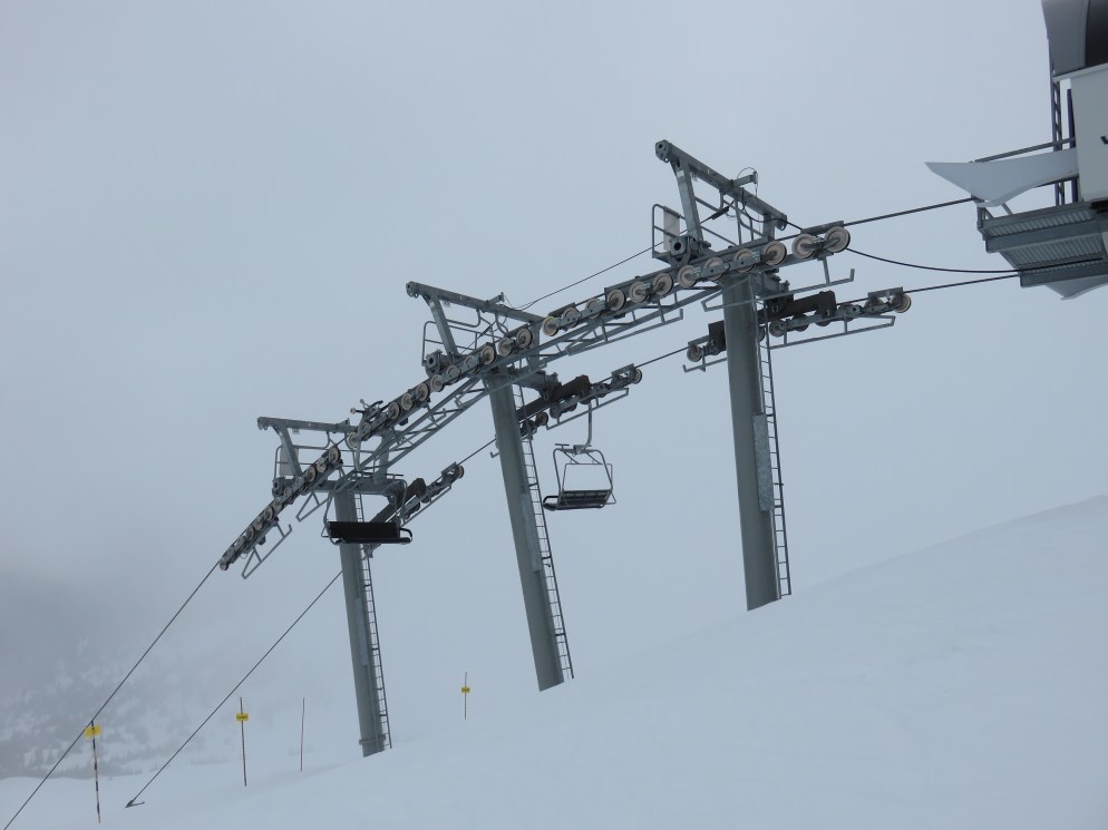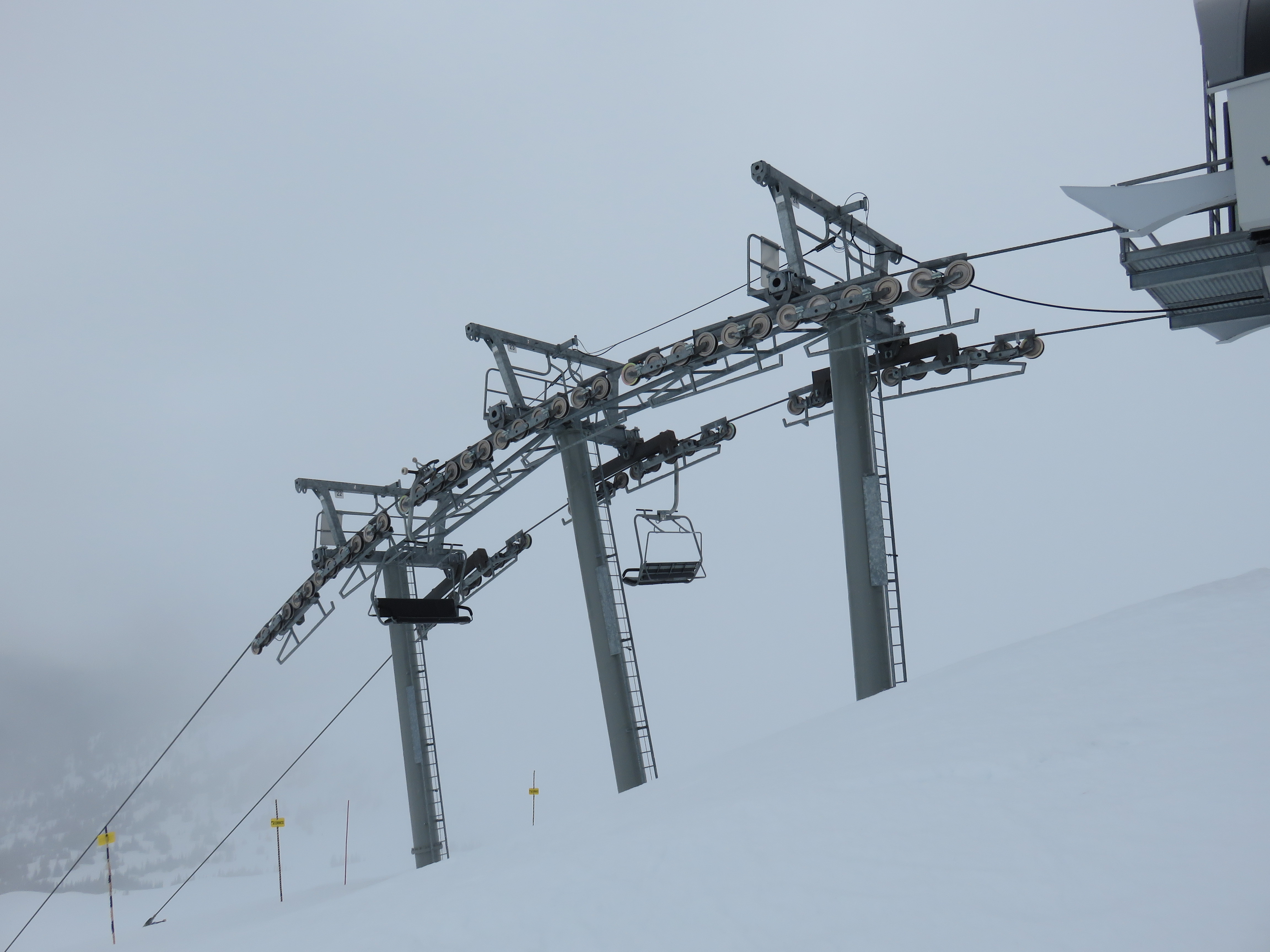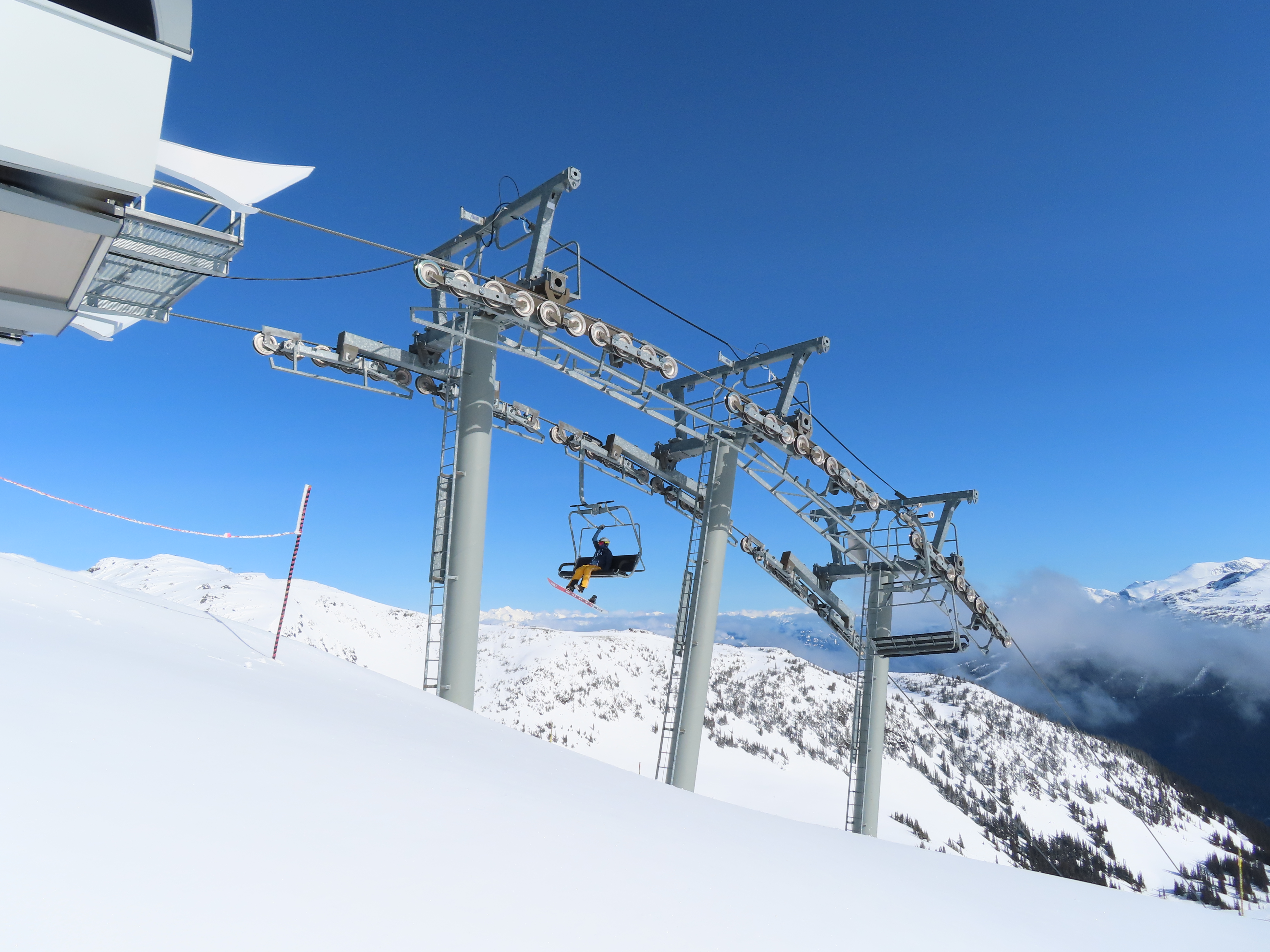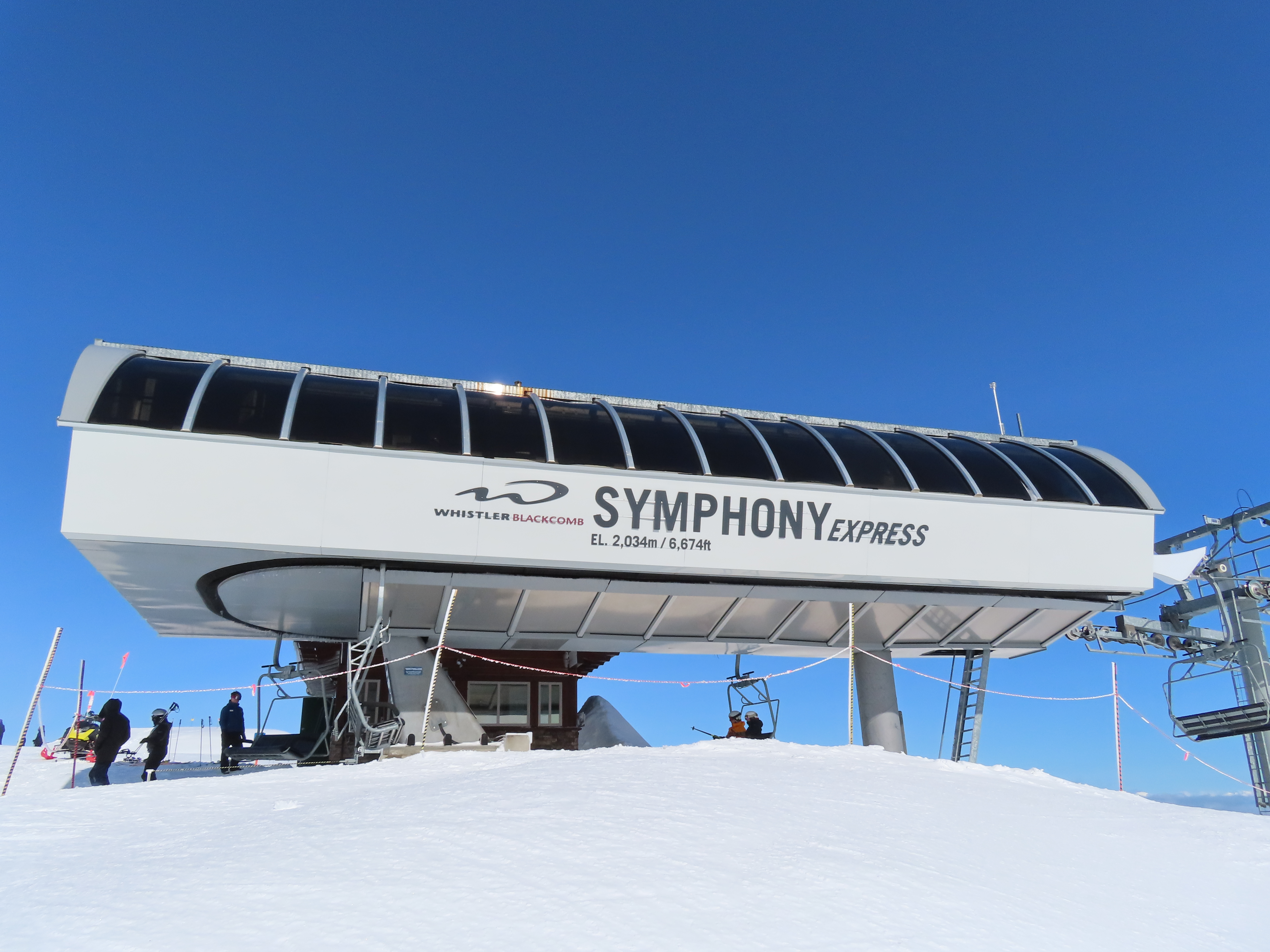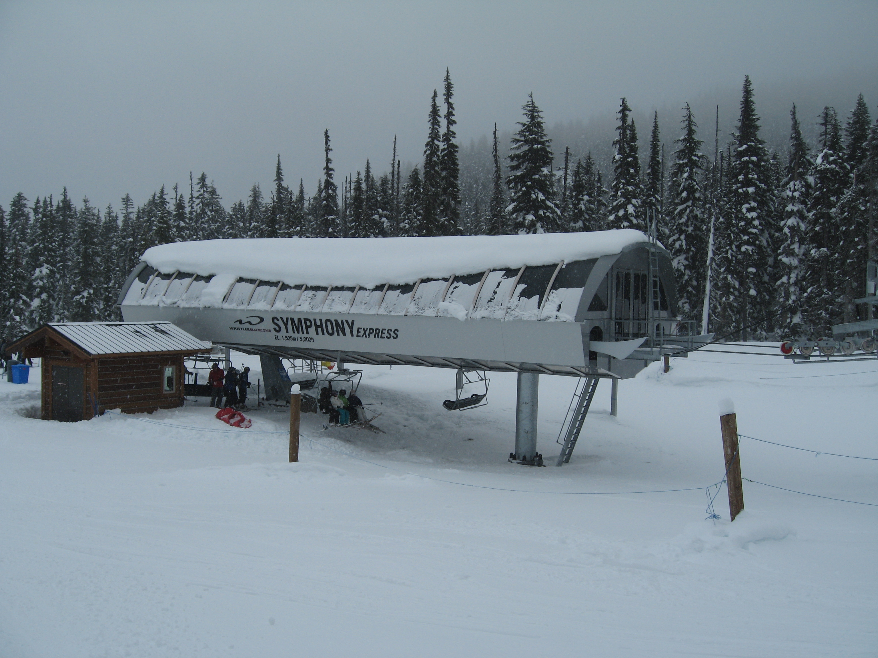 Doppelmayr CTEC Uni-GS bottom terminal.Riding up.Middle portion of the line.Bottom station with parking rail.Not all chairs can be parked here but there is enough space for the chairs that would be parked above treeline.Depression towers 20 and 21.The big top breakover.Top terminal seen from the Harmony zone.Final steep pitch.View up the above treeline portion of the line.Looking down the line and toward Blackcomb.Upper lift line.Doppelmayr CTEC merger era towers and chairs.Tower 1.View up the treed portion of the lift line.Riding near the summit.View back down the Symphony Amphitheatre.Breakover towers.Arriving at the summit.Unloading area.Top station overview.Uni-GS station.Another view of the final three towers.The top bowl.Amphitheatre seen from Blackcomb Mountain.Doppelmayr Worldbook entry.