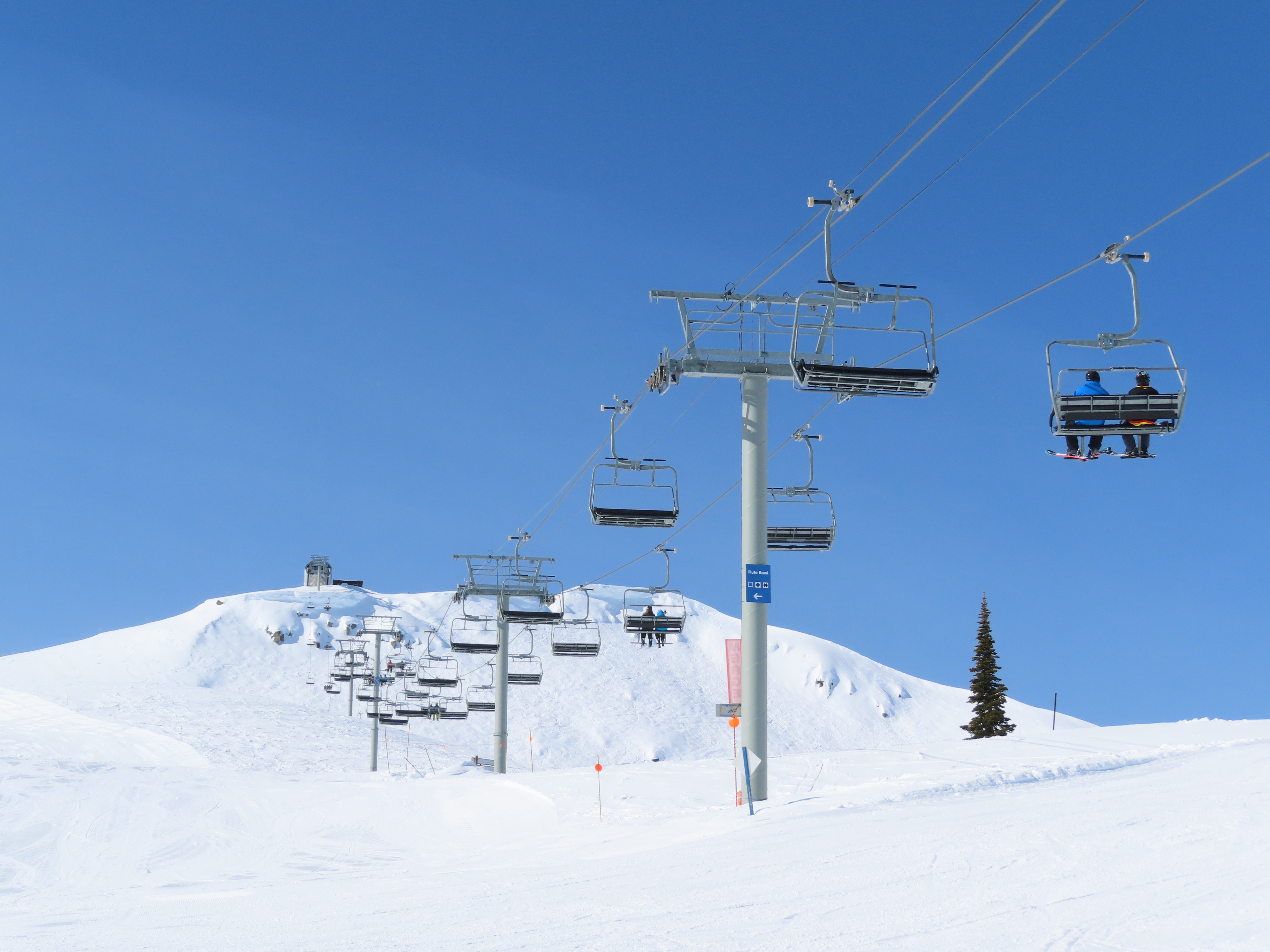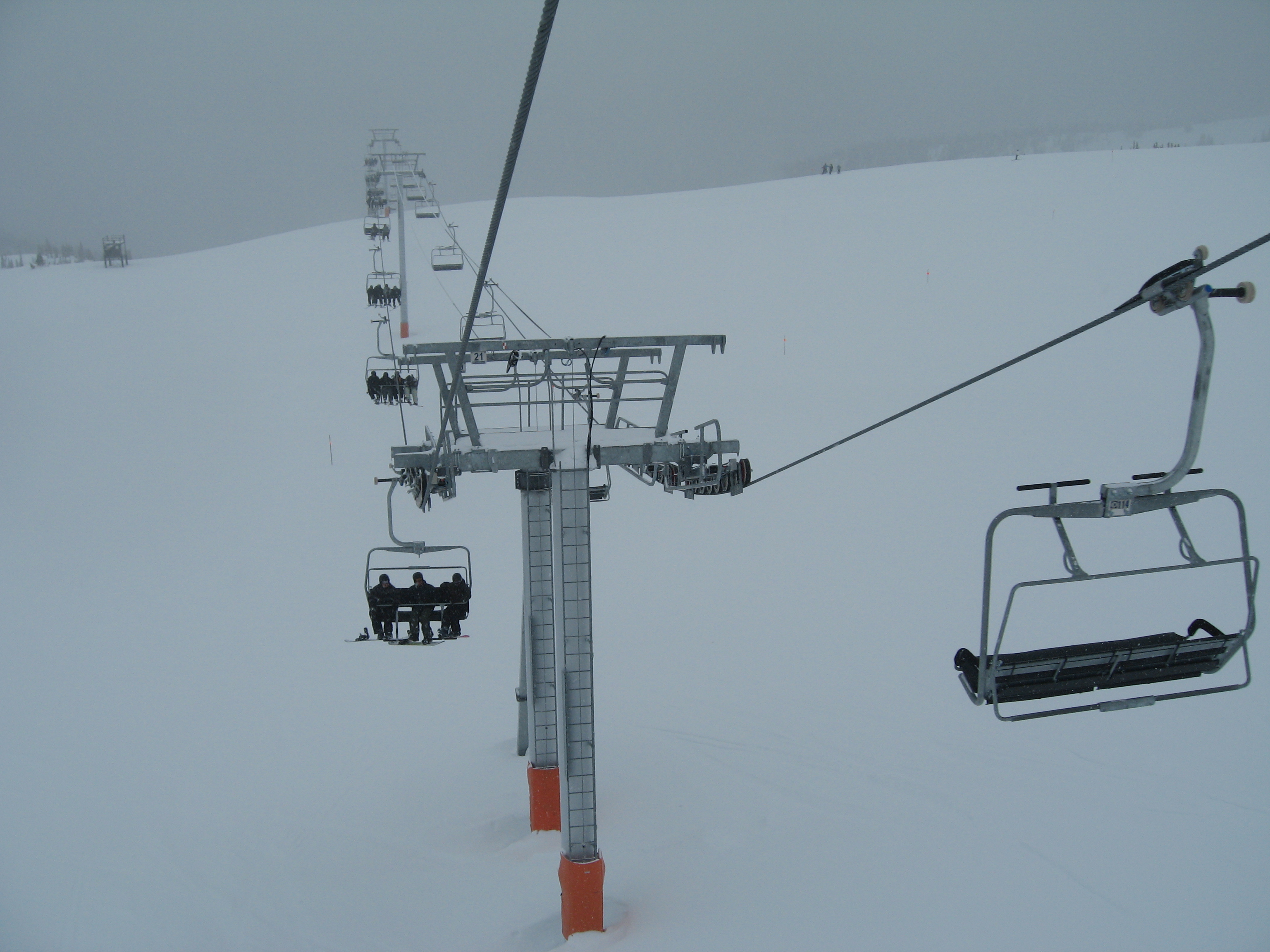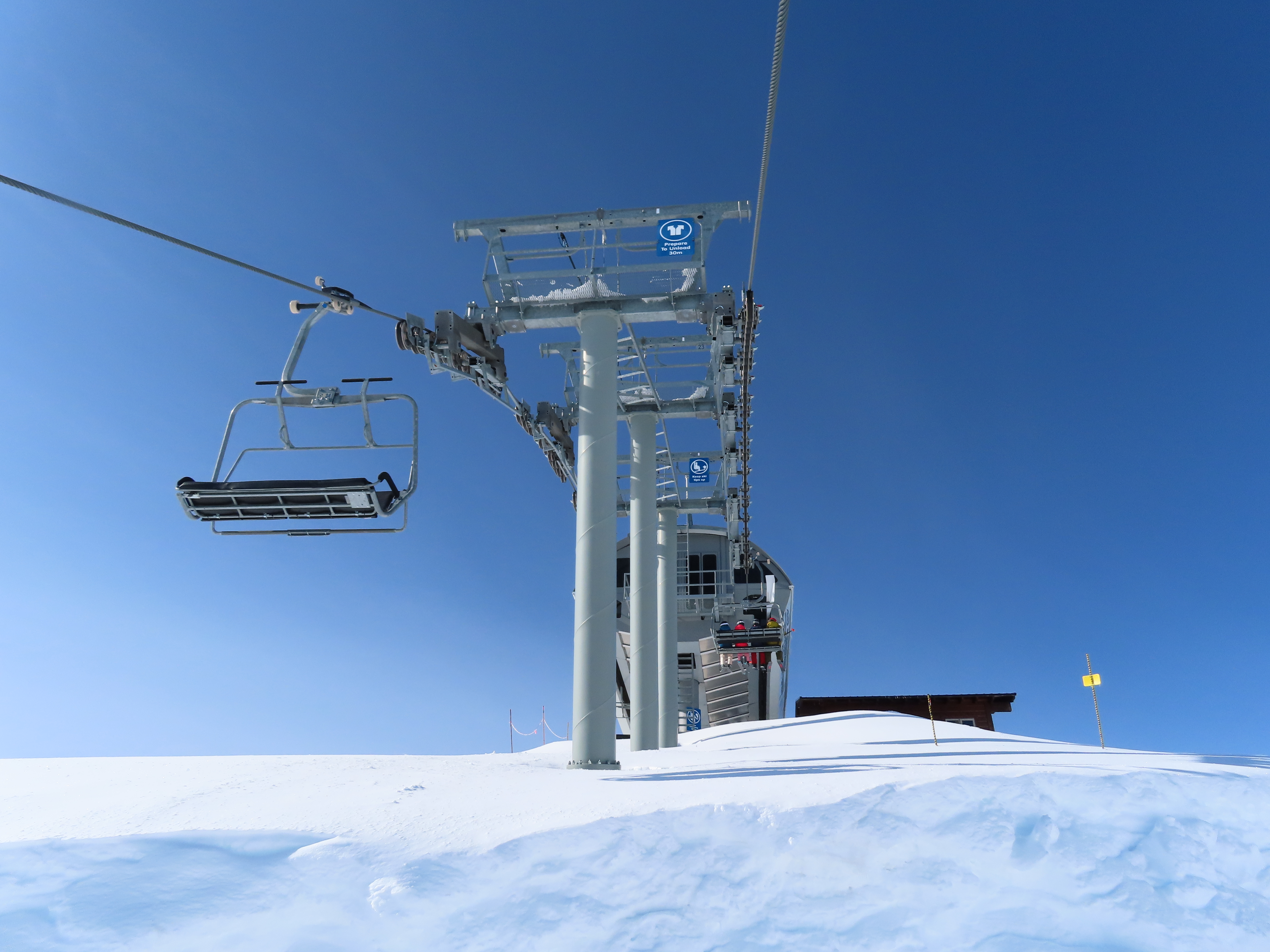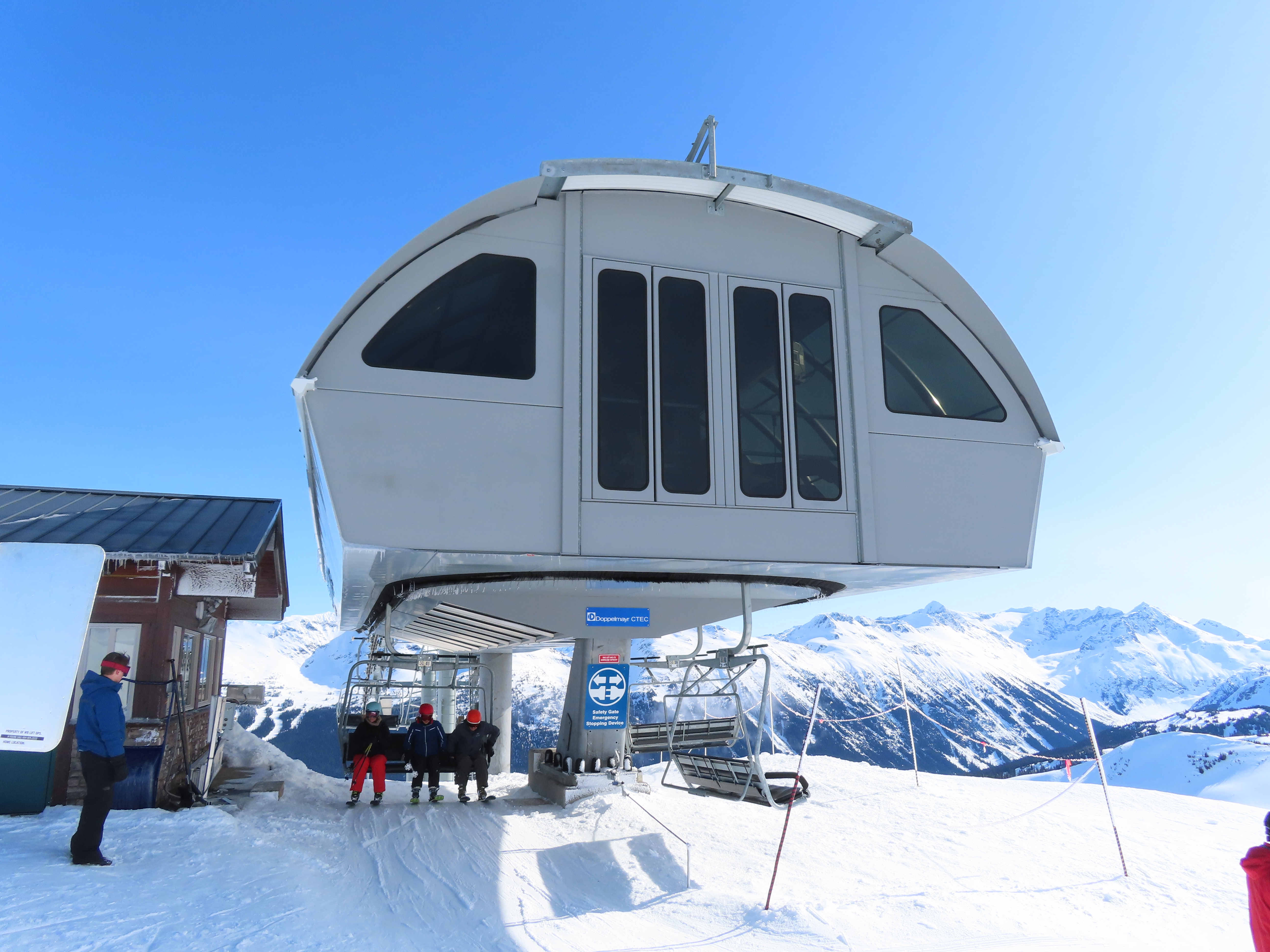 Doppelmayr CTEC Uni-GS bottom terminal.Riding up.Middle portion of the line.Bottom station with parking rail.Not all chairs can be parked here but there is enough space for the chairs that would be parked above treeline.Depression towers 20 and 21.The big top breakover.Top terminal seen from the Harmony zone.Final steep pitch.View up the above treeline portion of the line.Looking down the line and toward Blackcomb.Upper lift line.Doppelmayr CTEC merger era towers and chairs.Tower 1.View up the treed portion of the lift line.Riding near the summit.View back down the Symphony Amphitheatre.Breakover towers.Arriving at the summit.Unloading area.Top station overview.Uni-GS station.Another view of the final three towers.The top bowl.Amphitheatre seen from Blackcomb Mountain.Doppelmayr Worldbook entry.