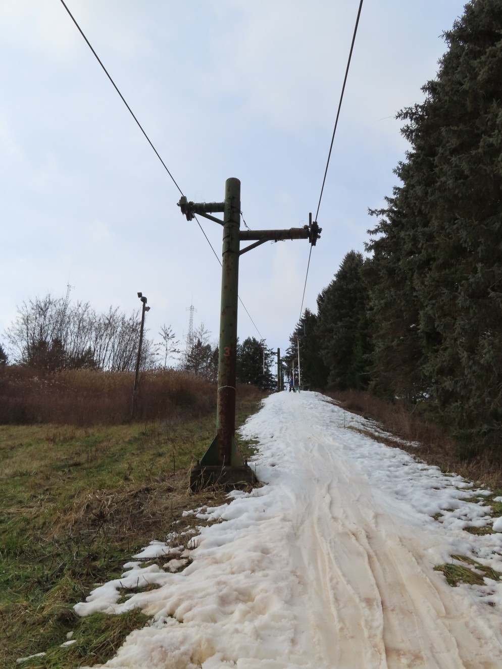 This Sneller T-Bar supplements two handle tows at the small Brantling ski area.Bottom terminal with drive and tensioning.Lower part of the track.Tower 3.Upper part of the line.View down the track.Unload point at tower 6.Top bullwheel.