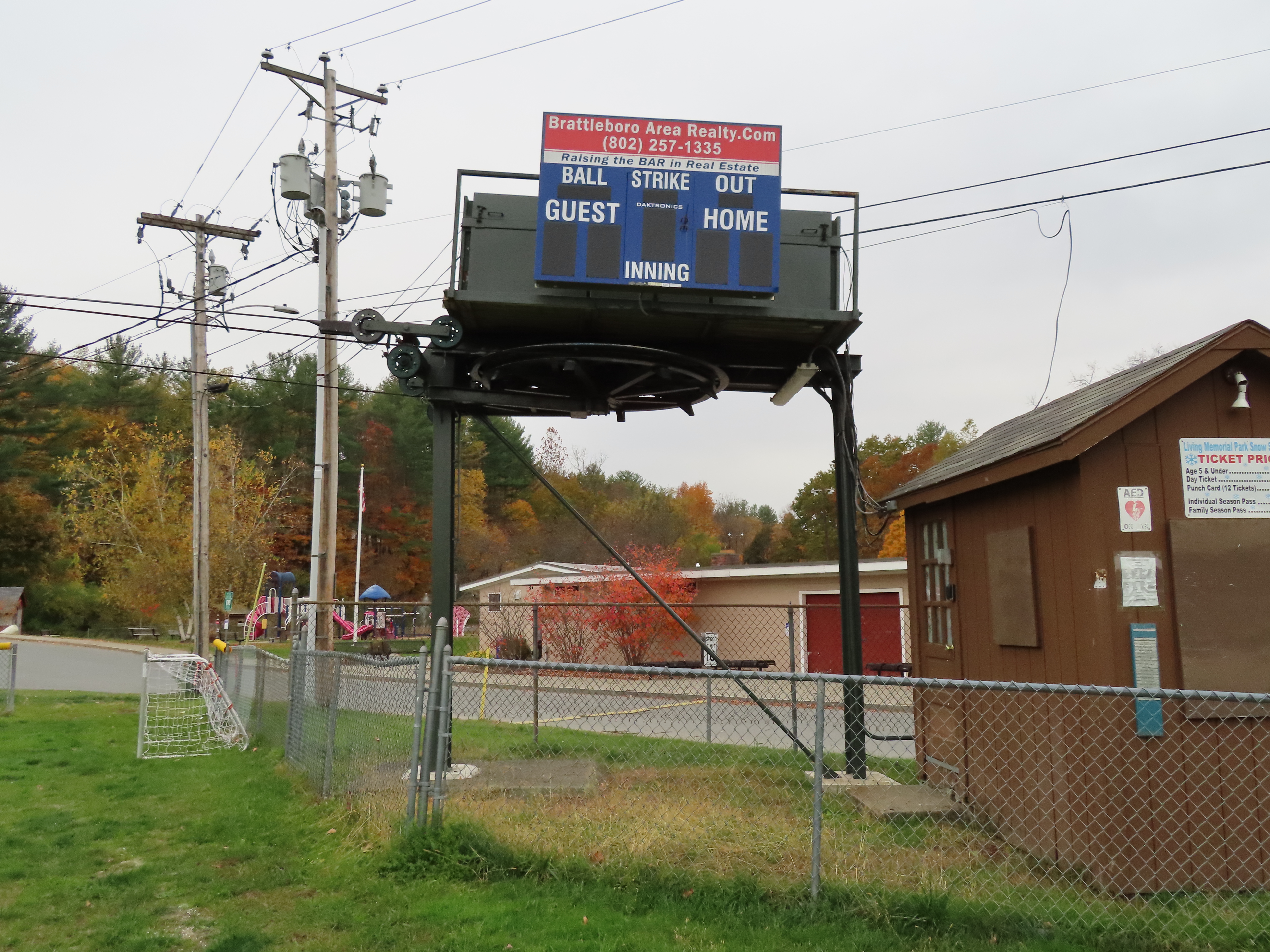 This drive station doubles as a scoreboard for the local ball field.
