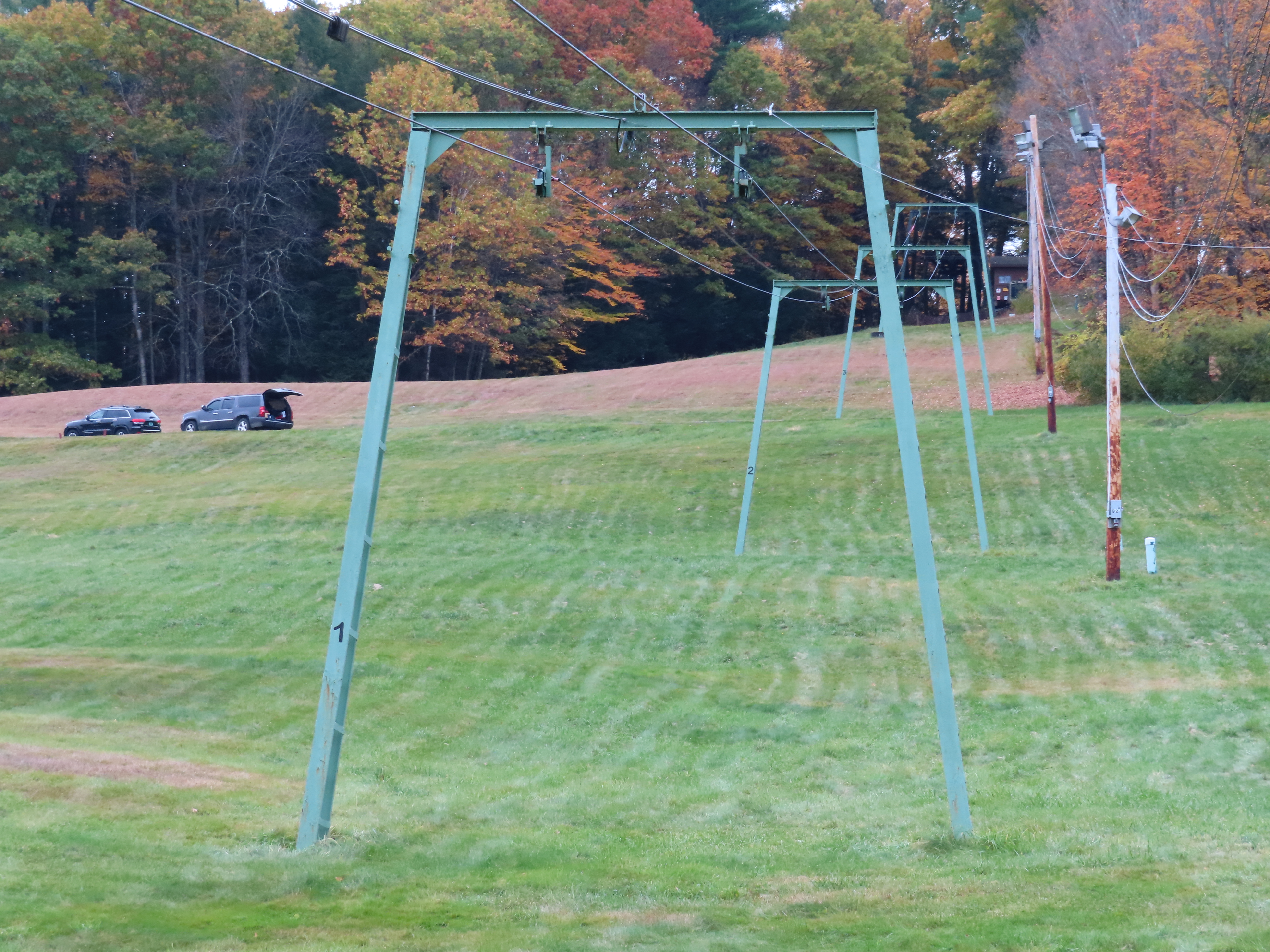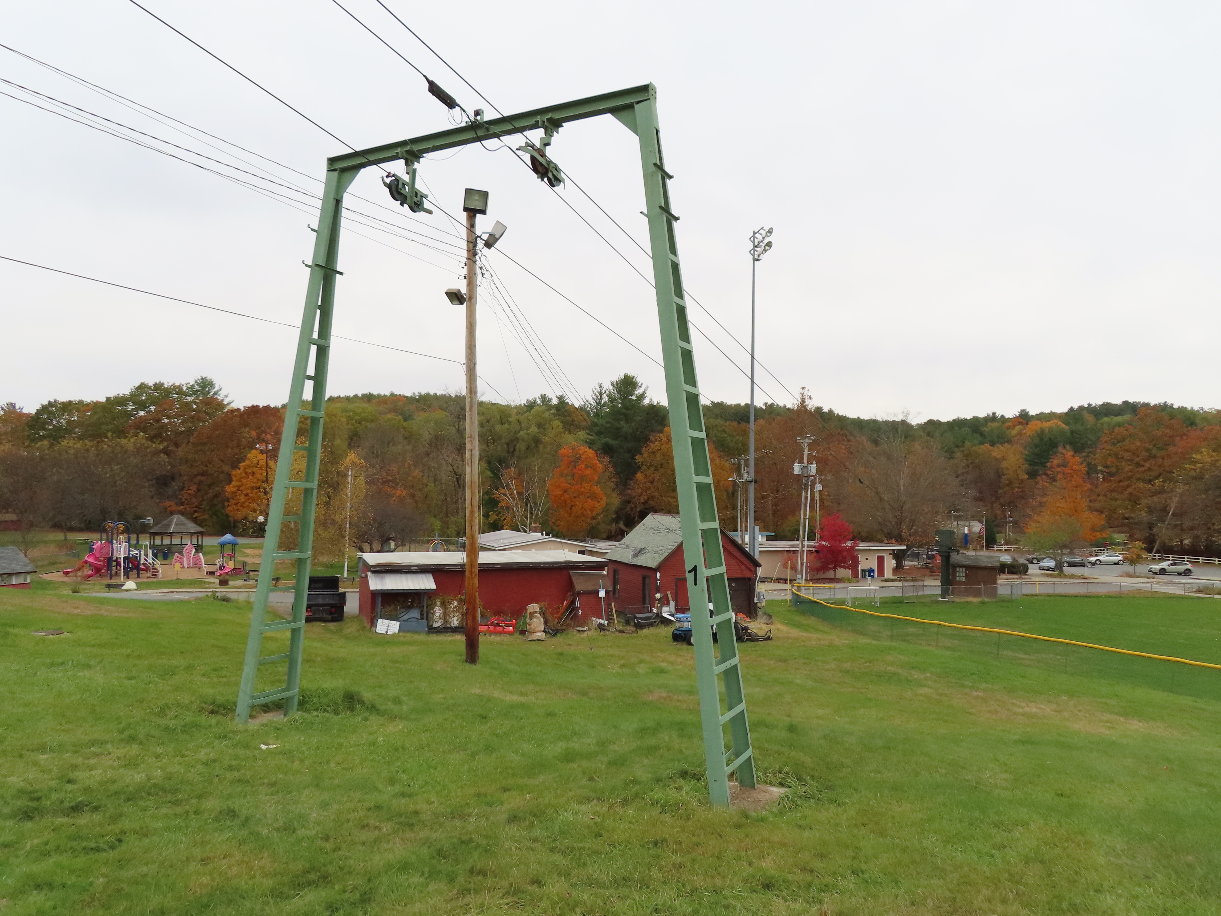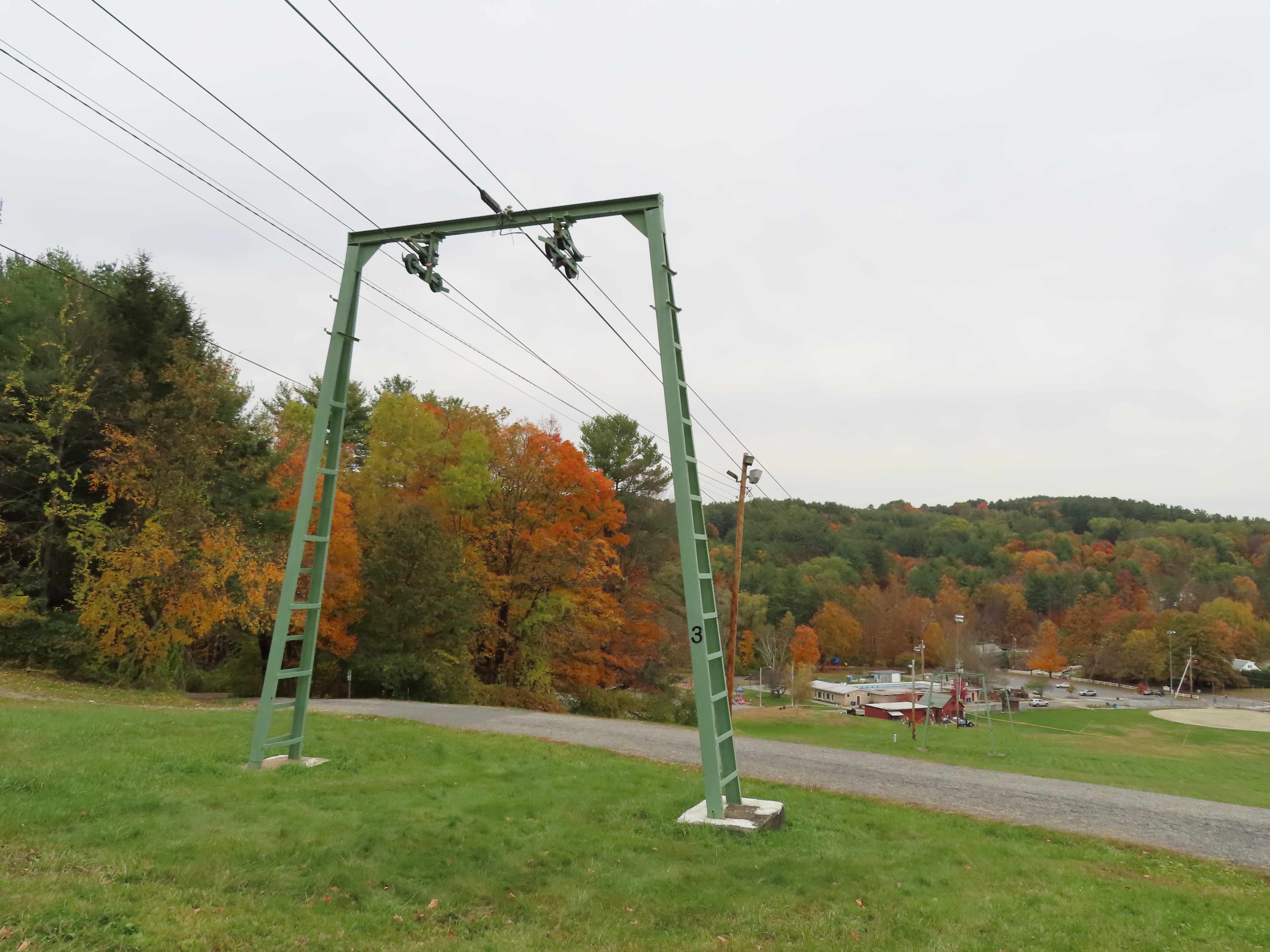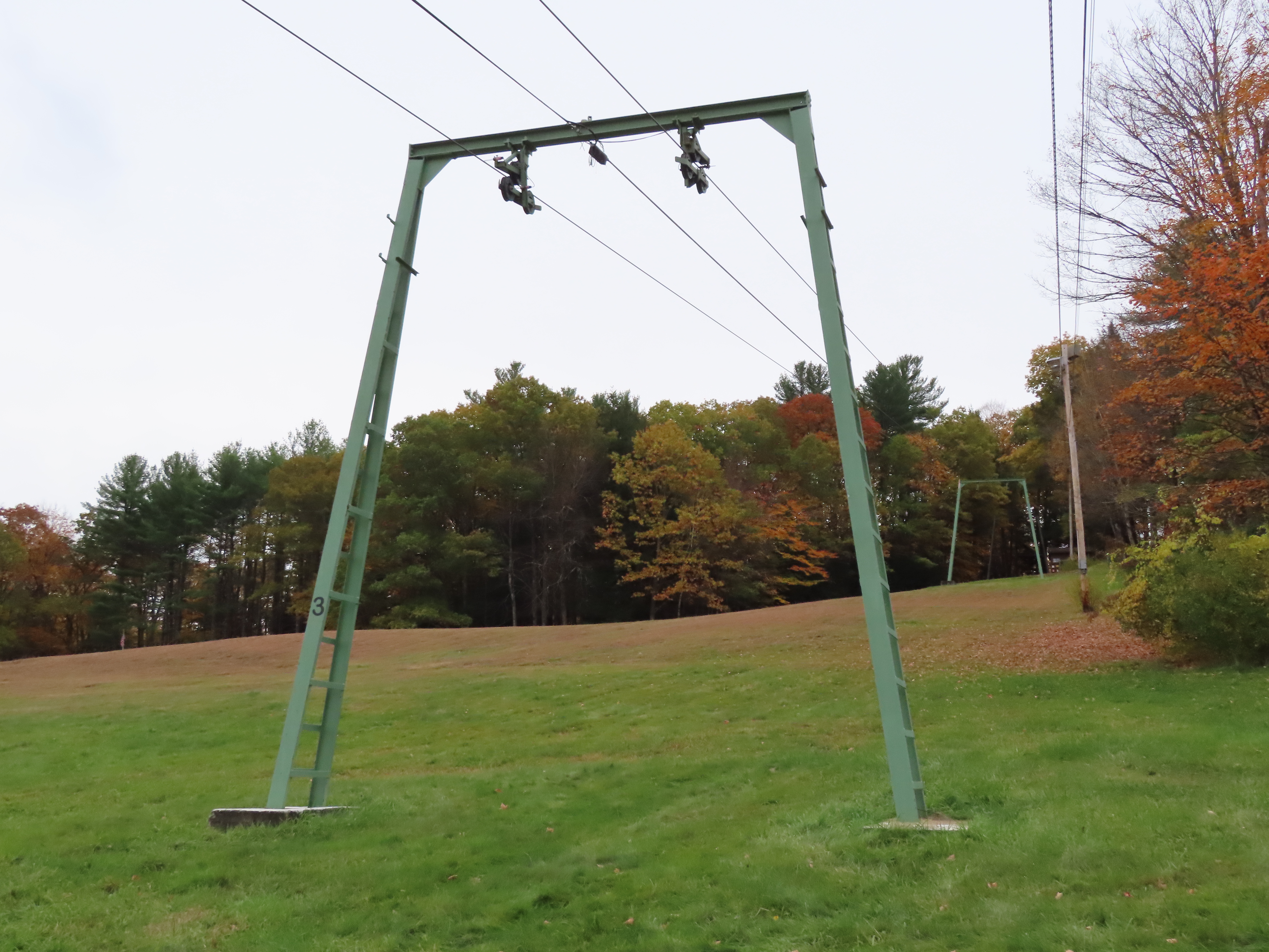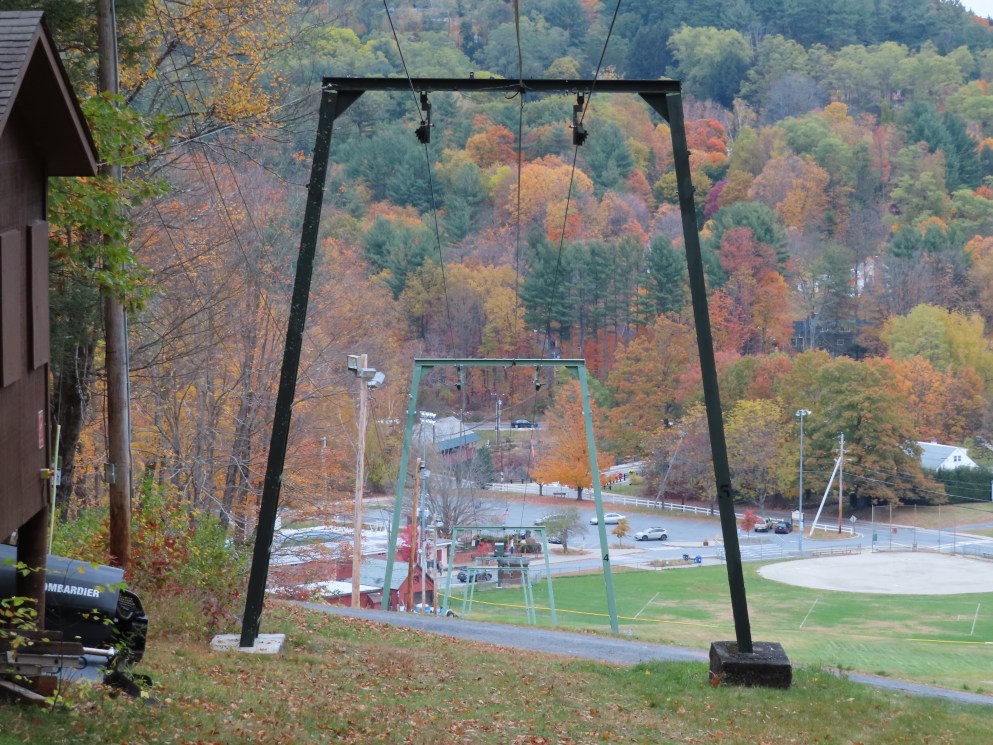 Some background: This lift was built at the same time as Summit #1 and Summit #2 at neighboring Hogback. Hogback offered to cover shipping costs because they were already getting new lifts. This hill is owned by the town of Brattleboro and operates Thursdays – Sundays and also offers night skiing. The hill is called “Living Memorial Park” and stands today as one of the few old-timey ski hills in the state.