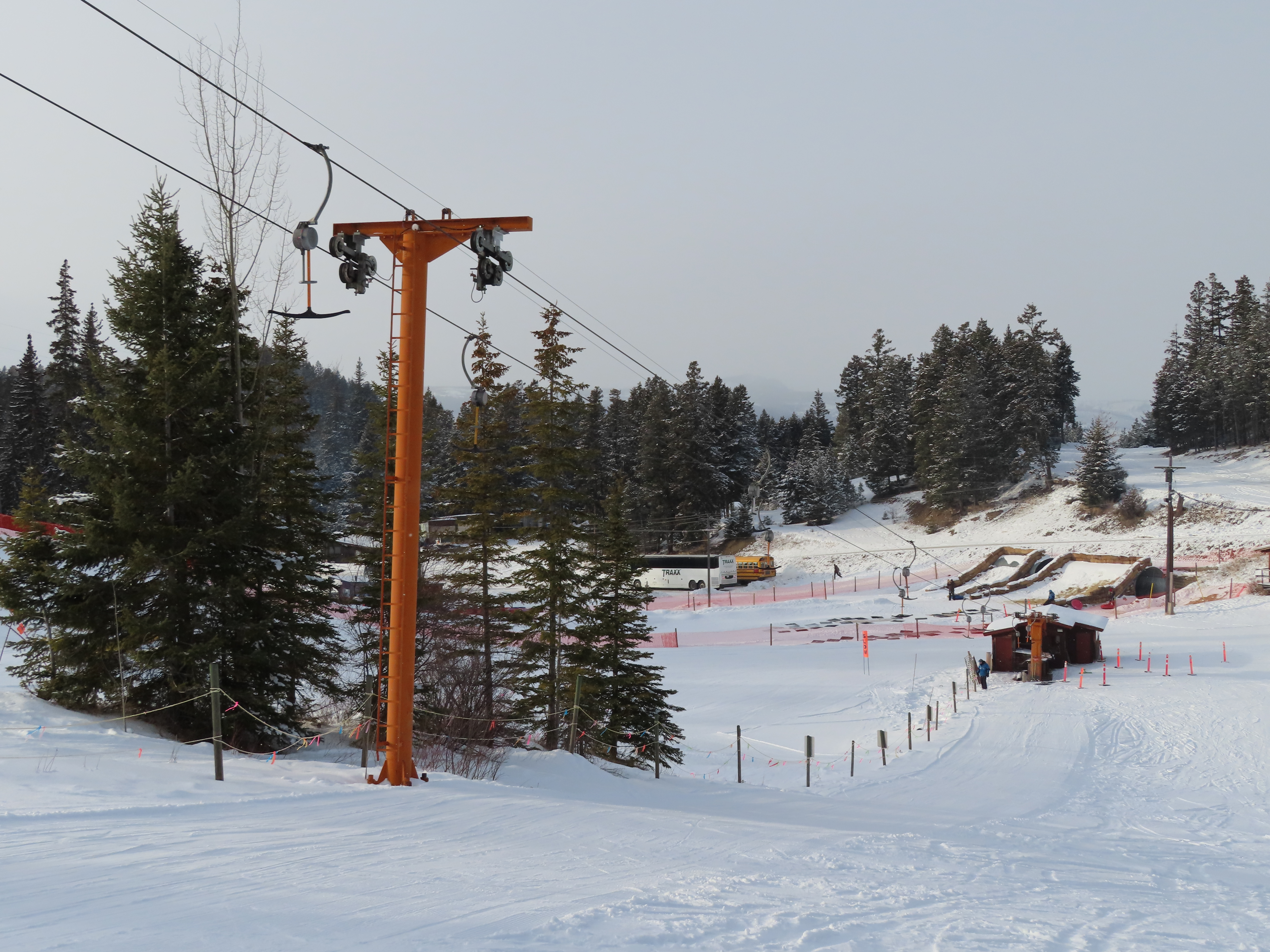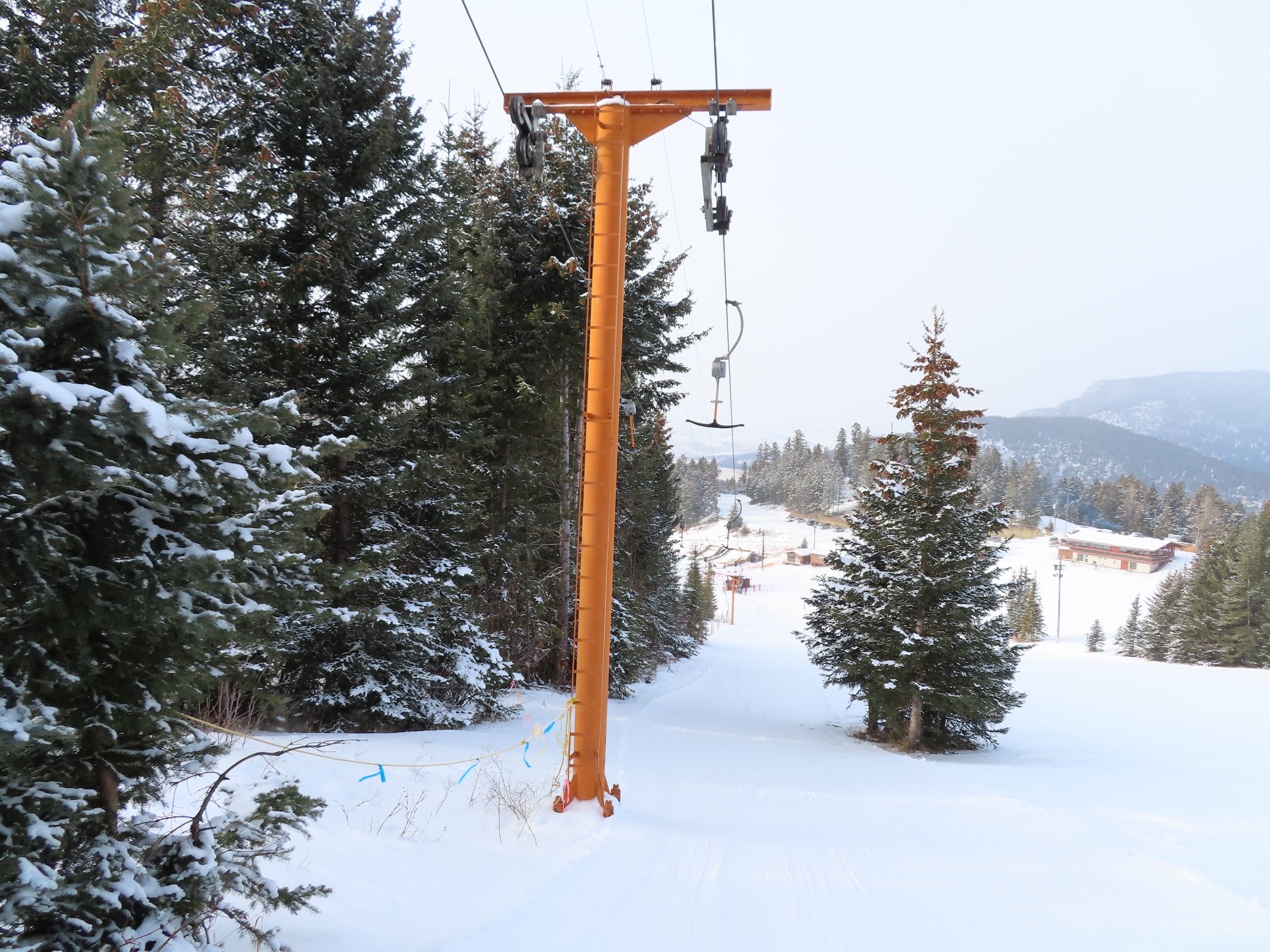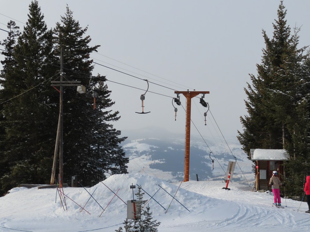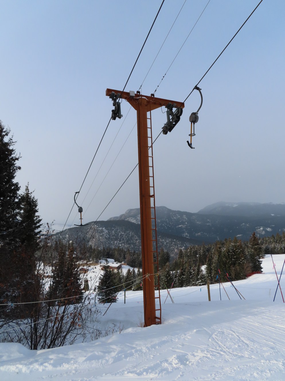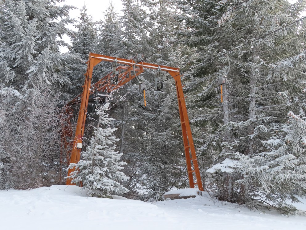 This lift was the first to open at Harper back in 1973.Unloading area at tower 7.The top terminal above the unload area.There’s a counterweight for tensioning here.A Doppelmayr tower.Lower part of the lift line seen from the first official unload area.Tower 1.This lift runs up to 580 feet per minute.View up at T-1.Tower 2.Unloading for beginners at tower 3.View back down the lift line.The last tower and top operator house, which is usually unmanned.The drive terminal runs off a diesel engine in the building behind.Like many vintage Doppelmayr T-Bars, the bottom bullwheel is not level with the ground but slanted up.Lift overview.