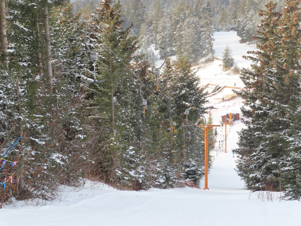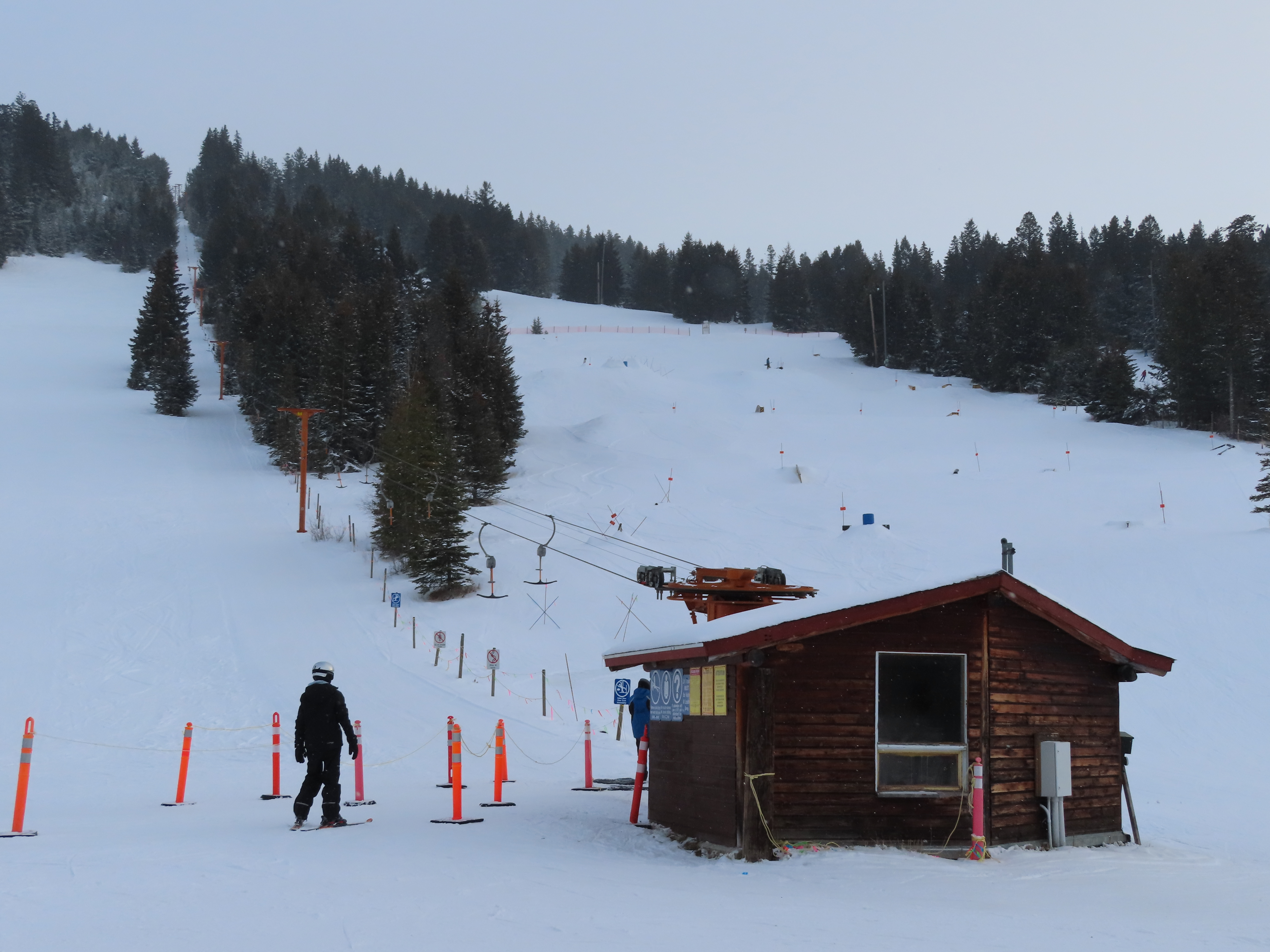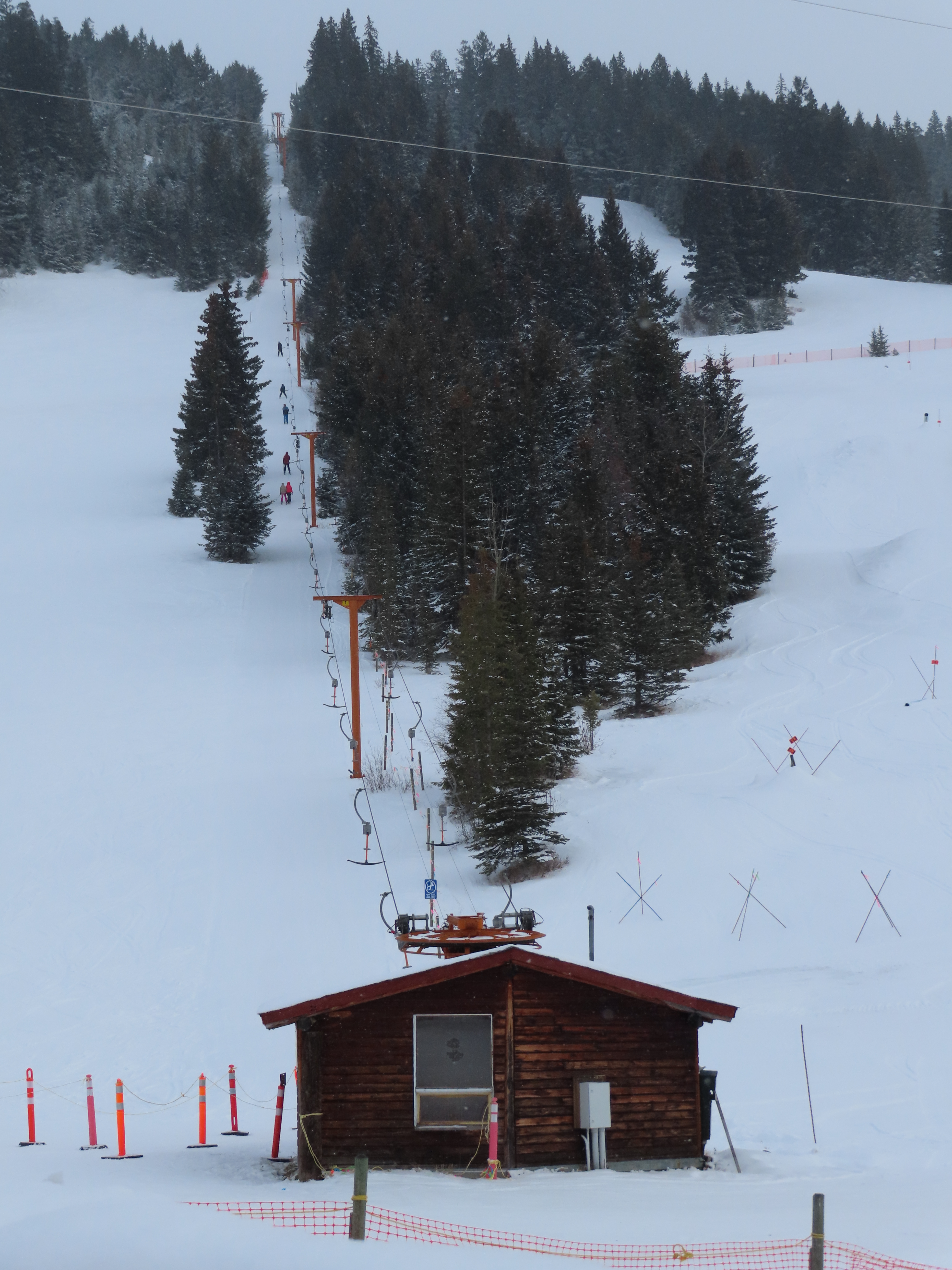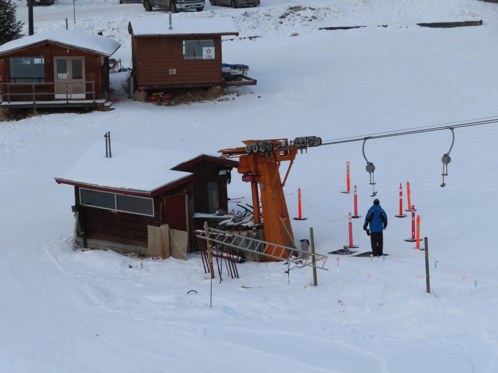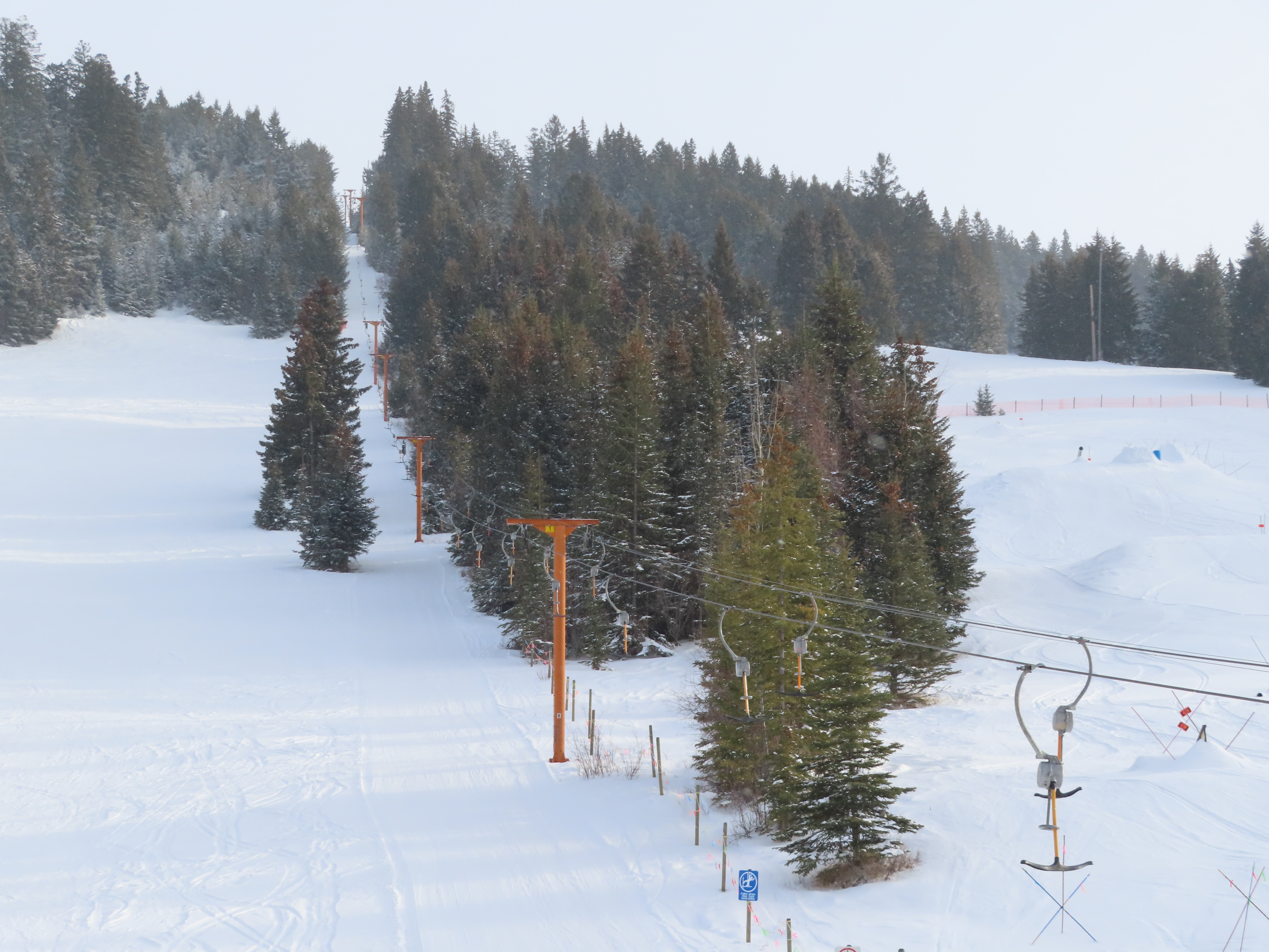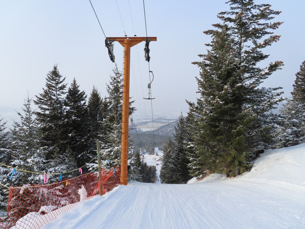 This lift was the first to open at Harper back in 1973.Unloading area at tower 7.The top terminal above the unload area.There’s a counterweight for tensioning here.A Doppelmayr tower.Lower part of the lift line seen from the first official unload area.Tower 1.This lift runs up to 580 feet per minute.View up at T-1.Tower 2.Unloading for beginners at tower 3.View back down the lift line.The last tower and top operator house, which is usually unmanned.The drive terminal runs off a diesel engine in the building behind.Like many vintage Doppelmayr T-Bars, the bottom bullwheel is not level with the ground but slanted up.Lift overview.