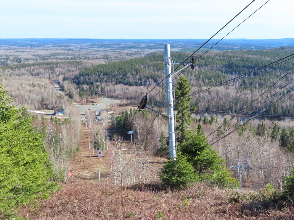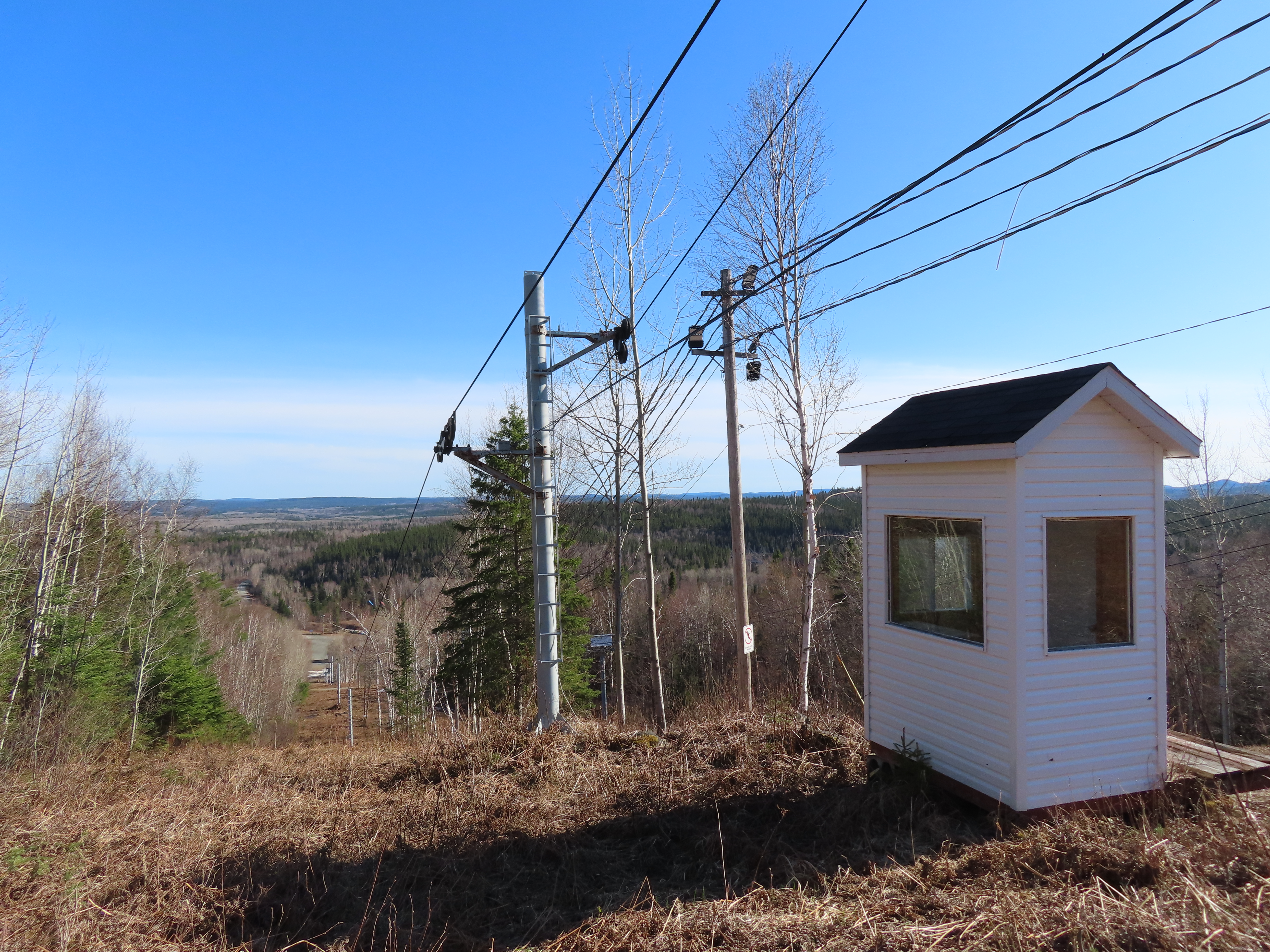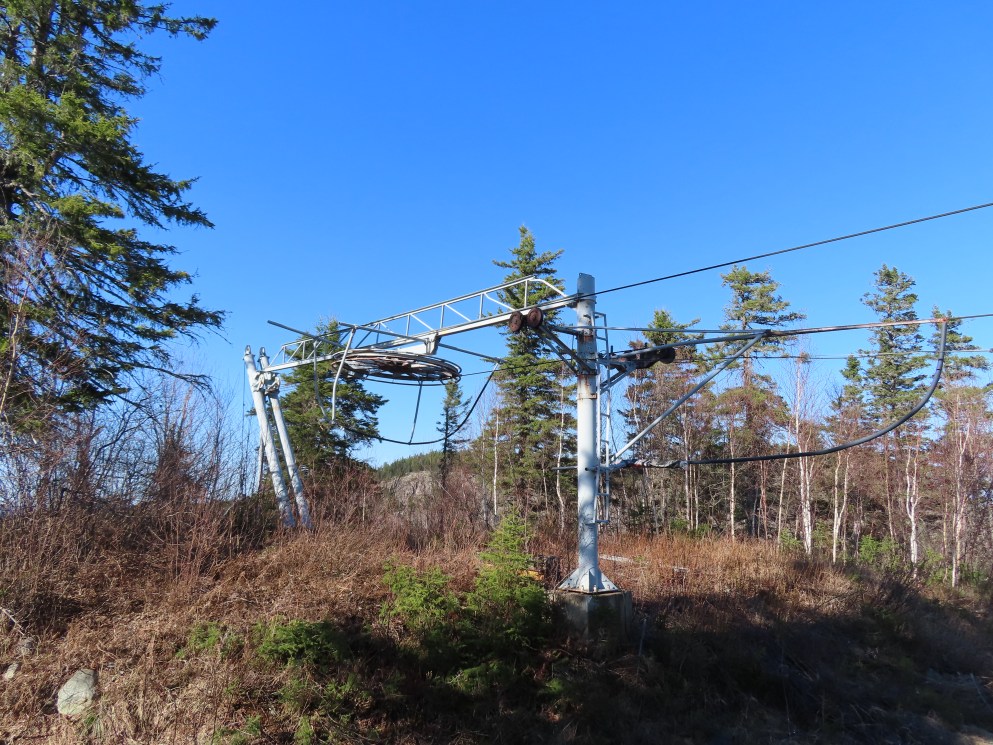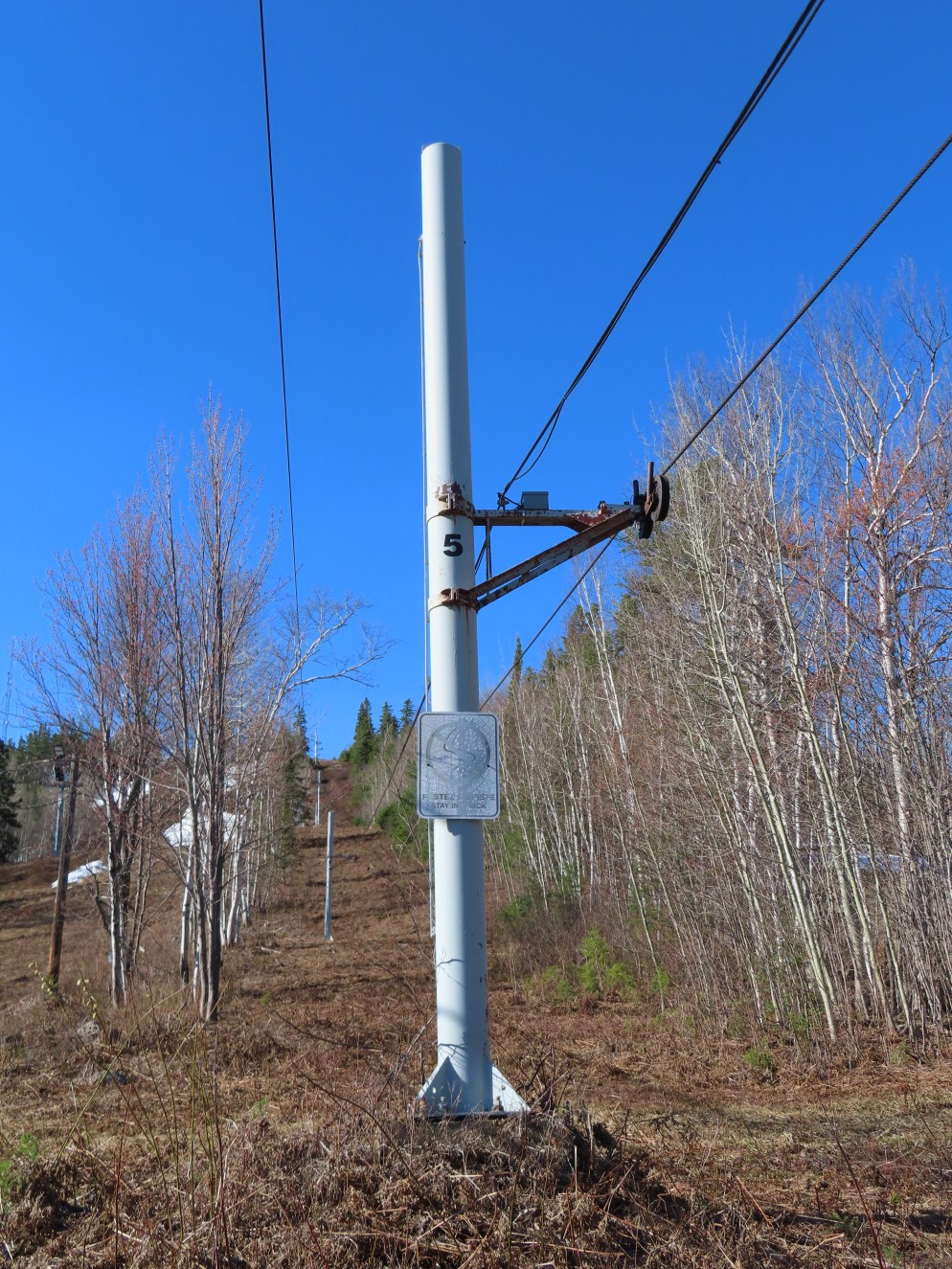This Samson T-Bar serves as a backup to a parallel quad chair.Samson sister lifts next to each other.View up the line from tower 1.Split tower.Half tower.Mid unload area.View up from the midstation.Looking down near the summit.Top terminal.Counterweight.Unloading area at tower 12.T11.