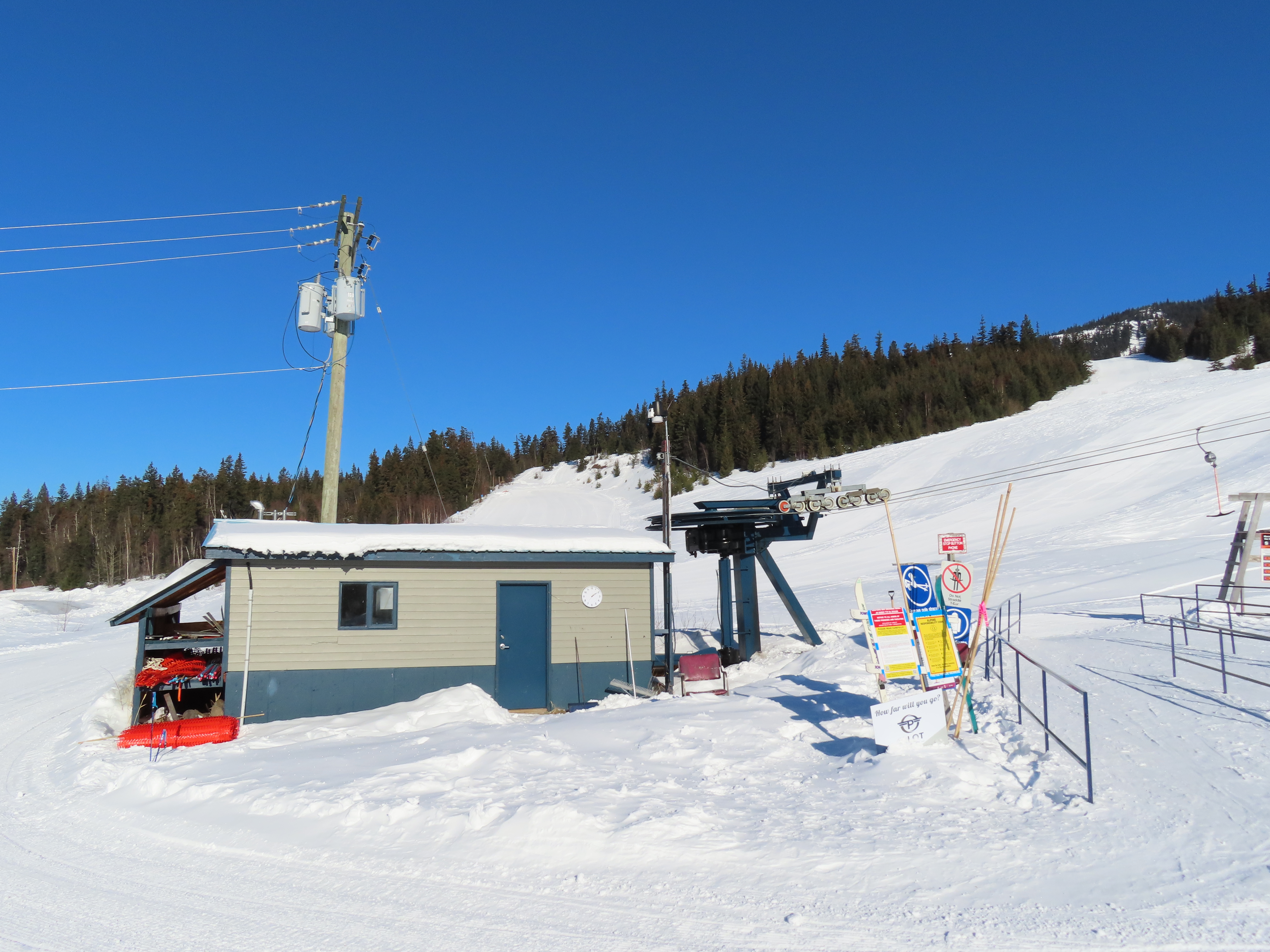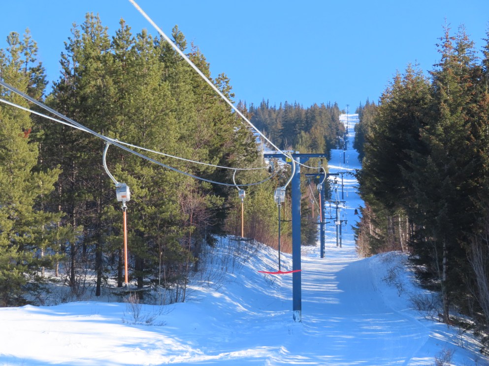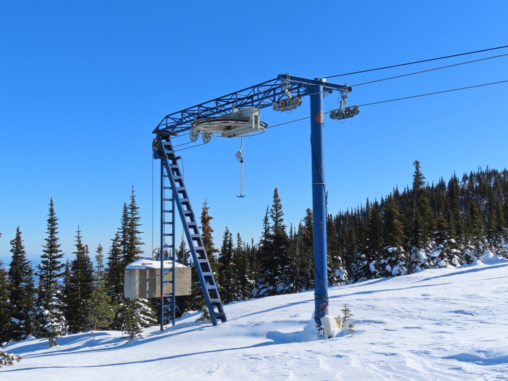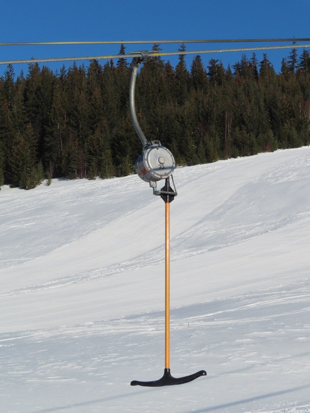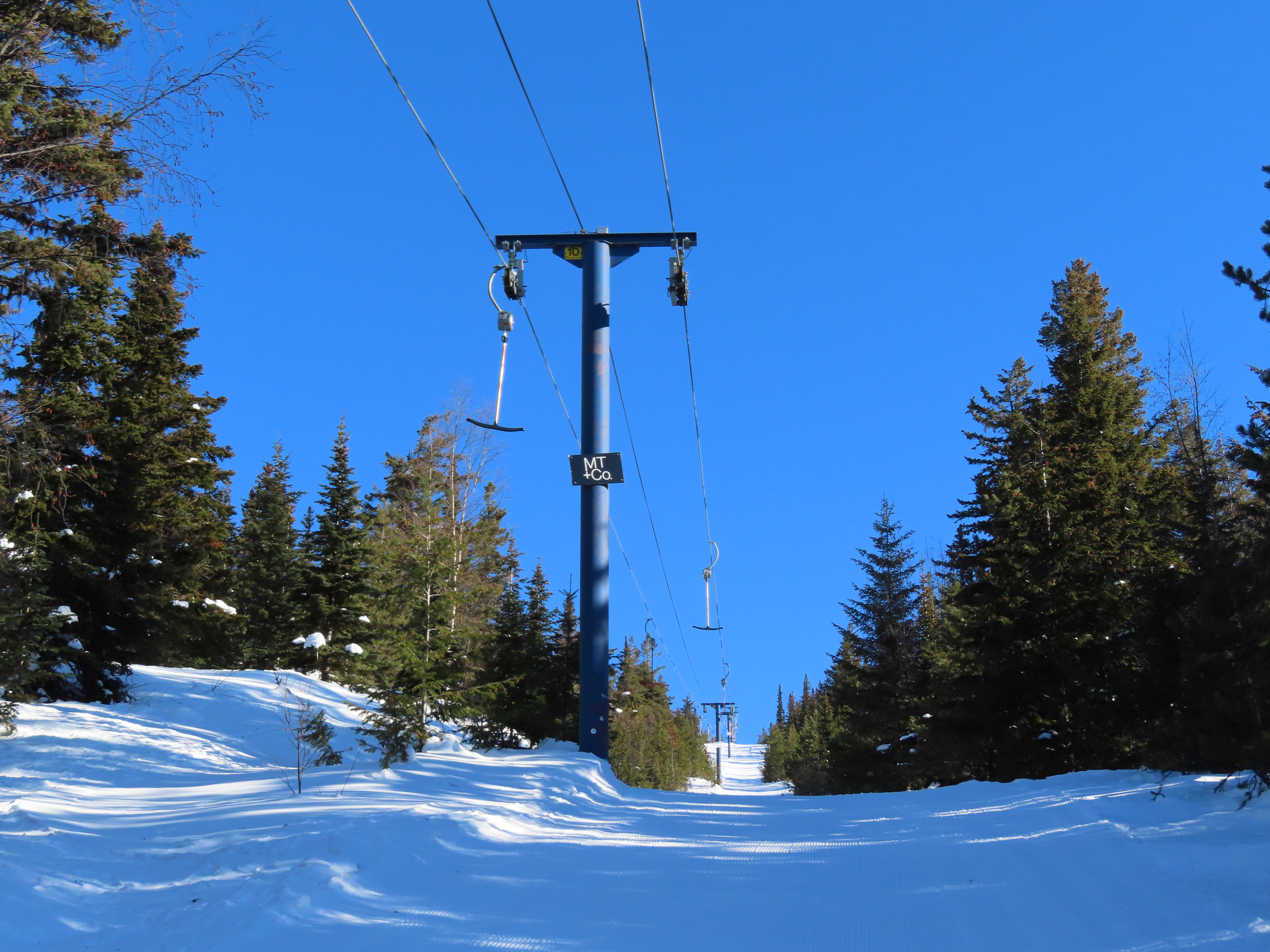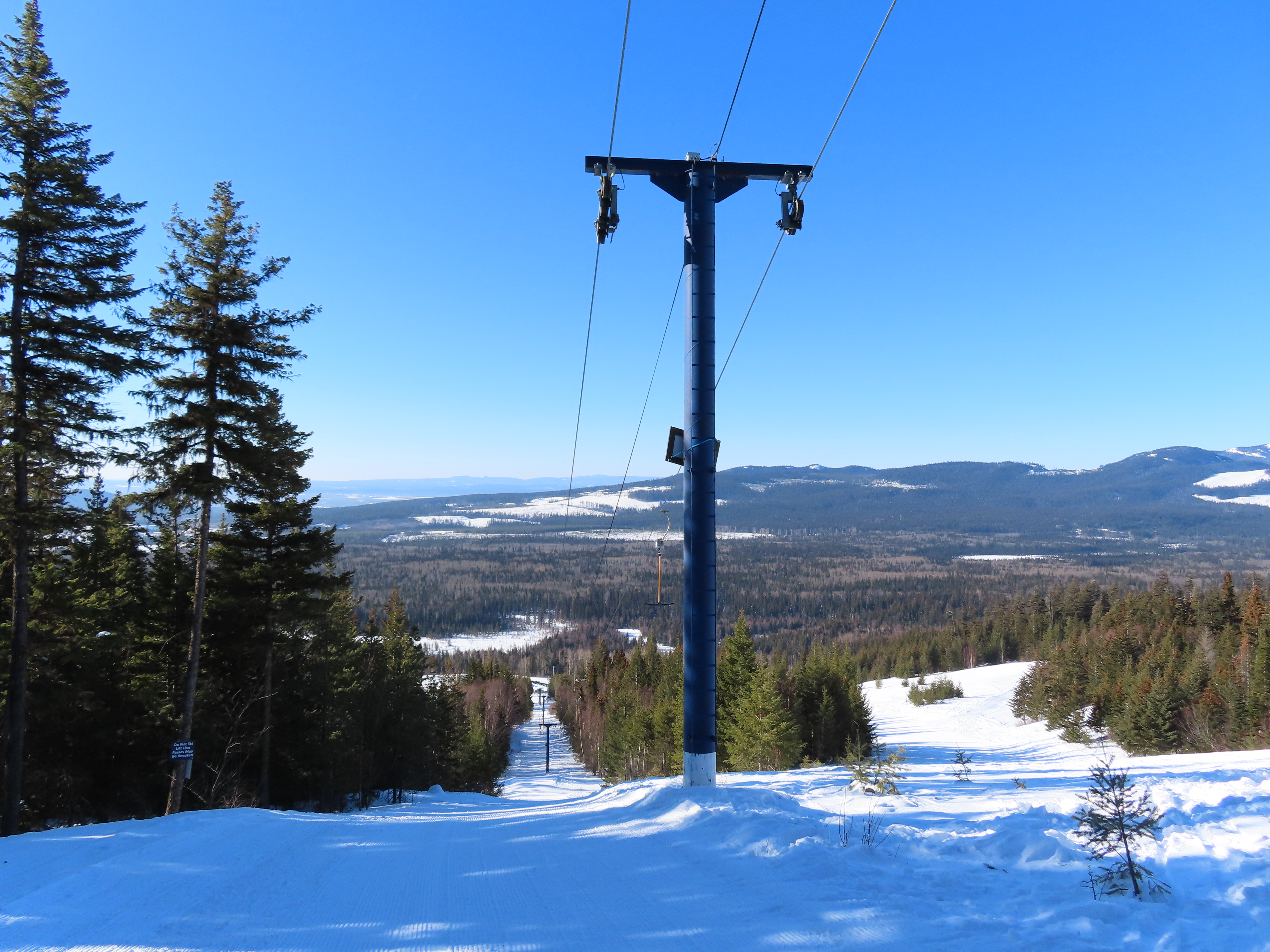 Behold the longest T-Bar in North America, spanning more than 6,400 feet.Drive station with propulsion in the adjacent building.View up from the base area.Side view of the bottom station.A T.View up at tower 2.There are three official unload point, the first of which is at tower 3.View down the middle part of the lift line.Tower 7.Nearing the summit.View down the track.View near the summit.Top terminal with counterweight tensioning.View from the unload point at tower 15.T14 view.Lower lift line at tower 3.Second unload point at tower 8.View riding up the line.Side view of the summit station.Lift line with very wide tower spacing.