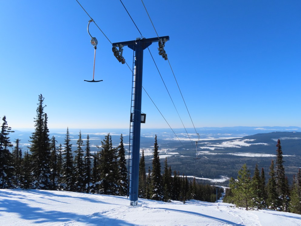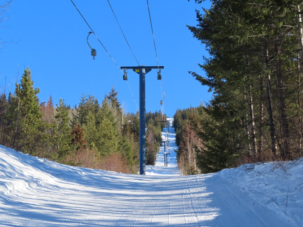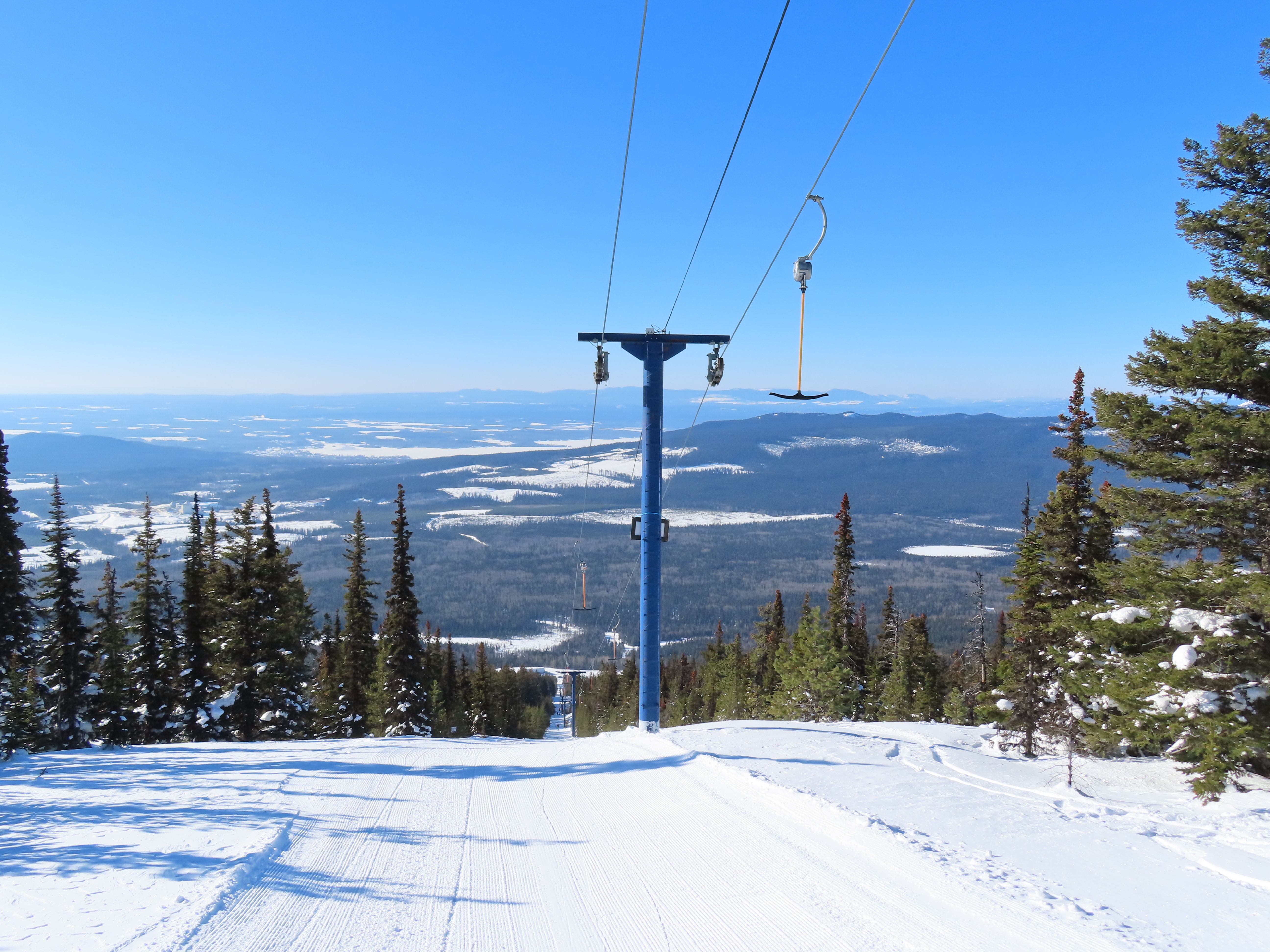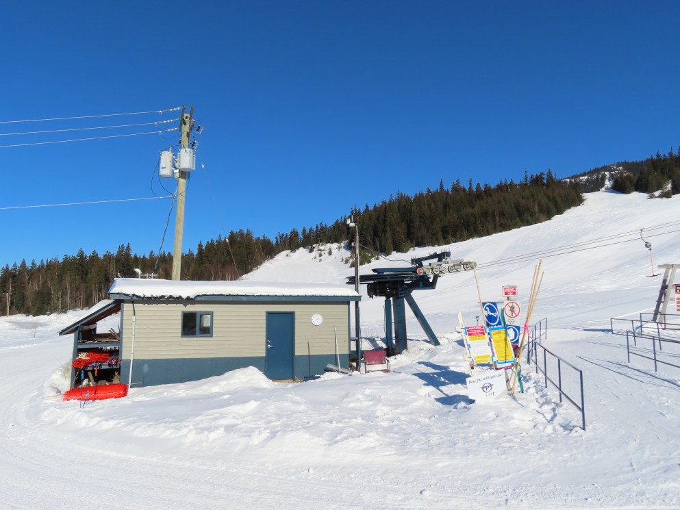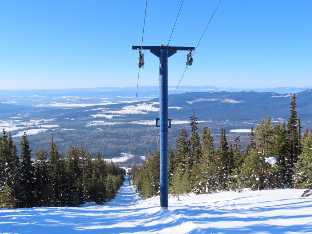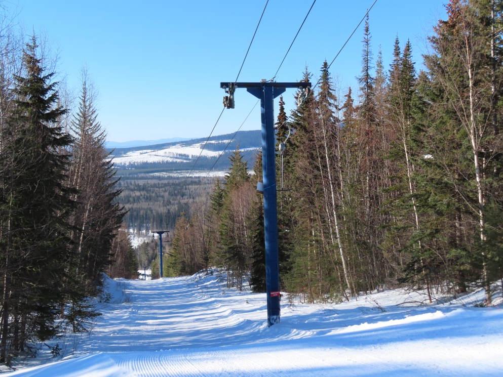 Behold the longest T-Bar in North America, spanning more than 6,400 feet.Drive station with propulsion in the adjacent building.View up from the base area.Side view of the bottom station.A T.View up at tower 2.There are three official unload point, the first of which is at tower 3.View down the middle part of the lift line.Tower 7.Nearing the summit.View down the track.View near the summit.Top terminal with counterweight tensioning.View from the unload point at tower 15.T14 view.Lower lift line at tower 3.Second unload point at tower 8.View riding up the line.Side view of the summit station.Lift line with very wide tower spacing.