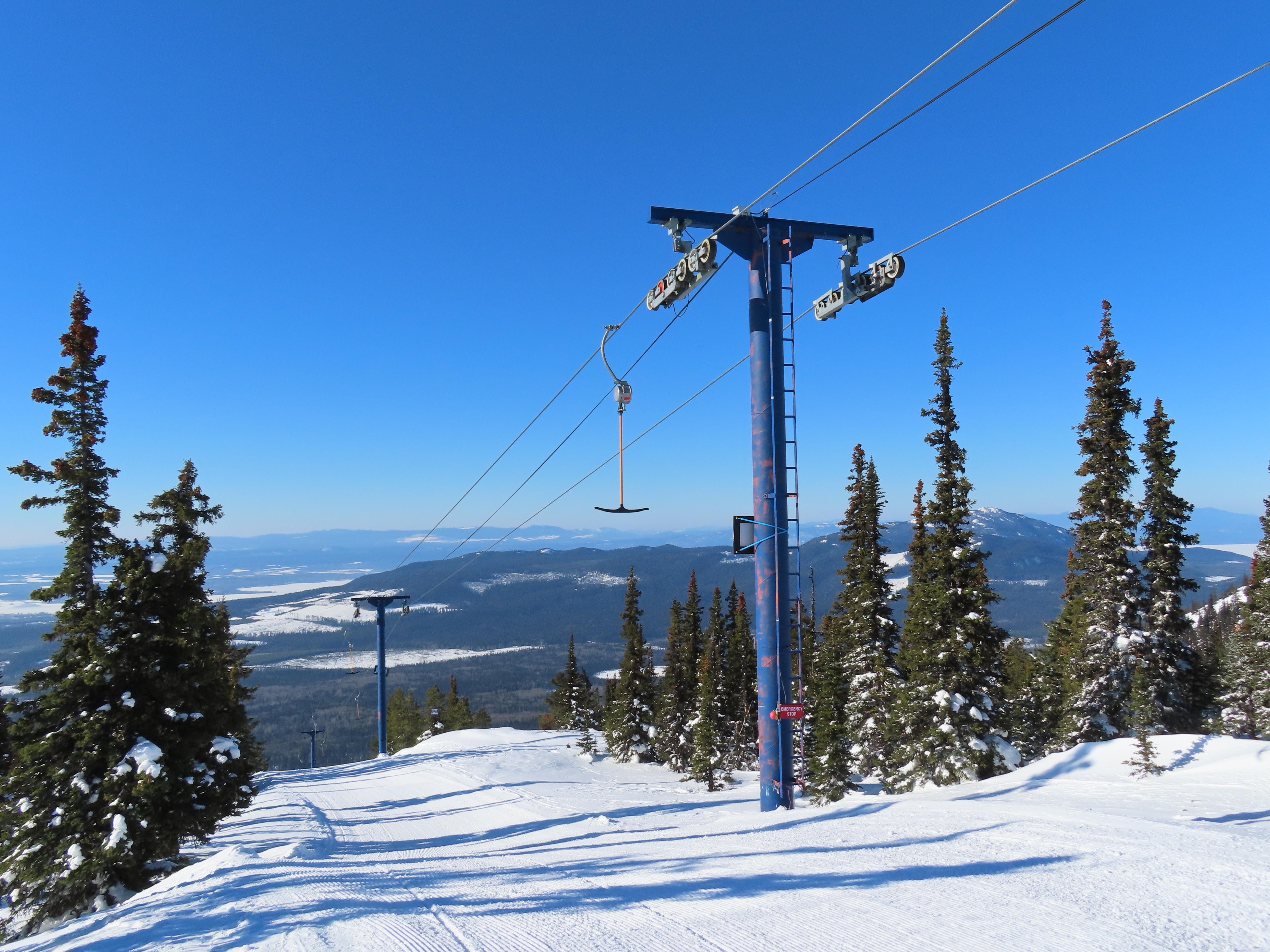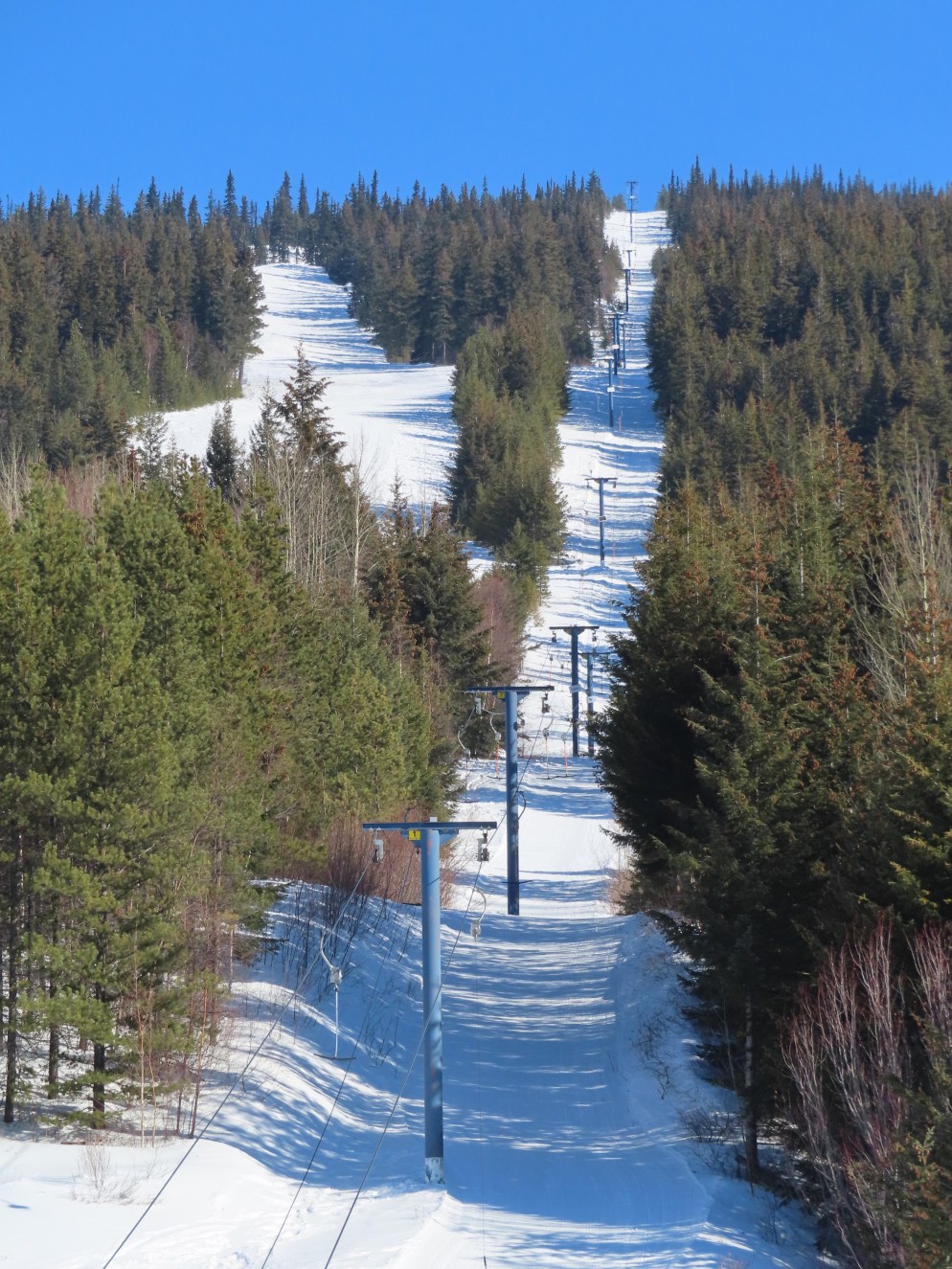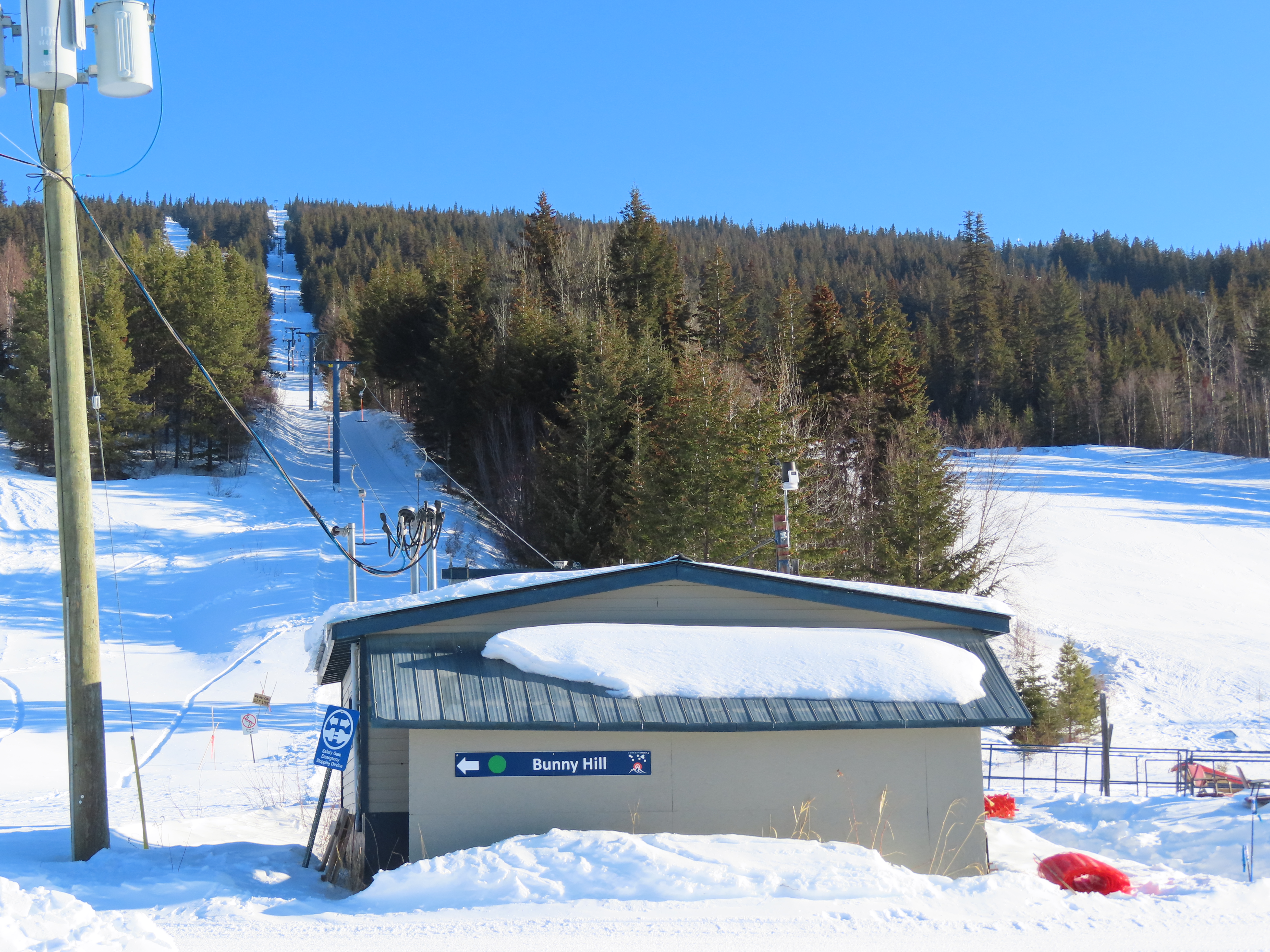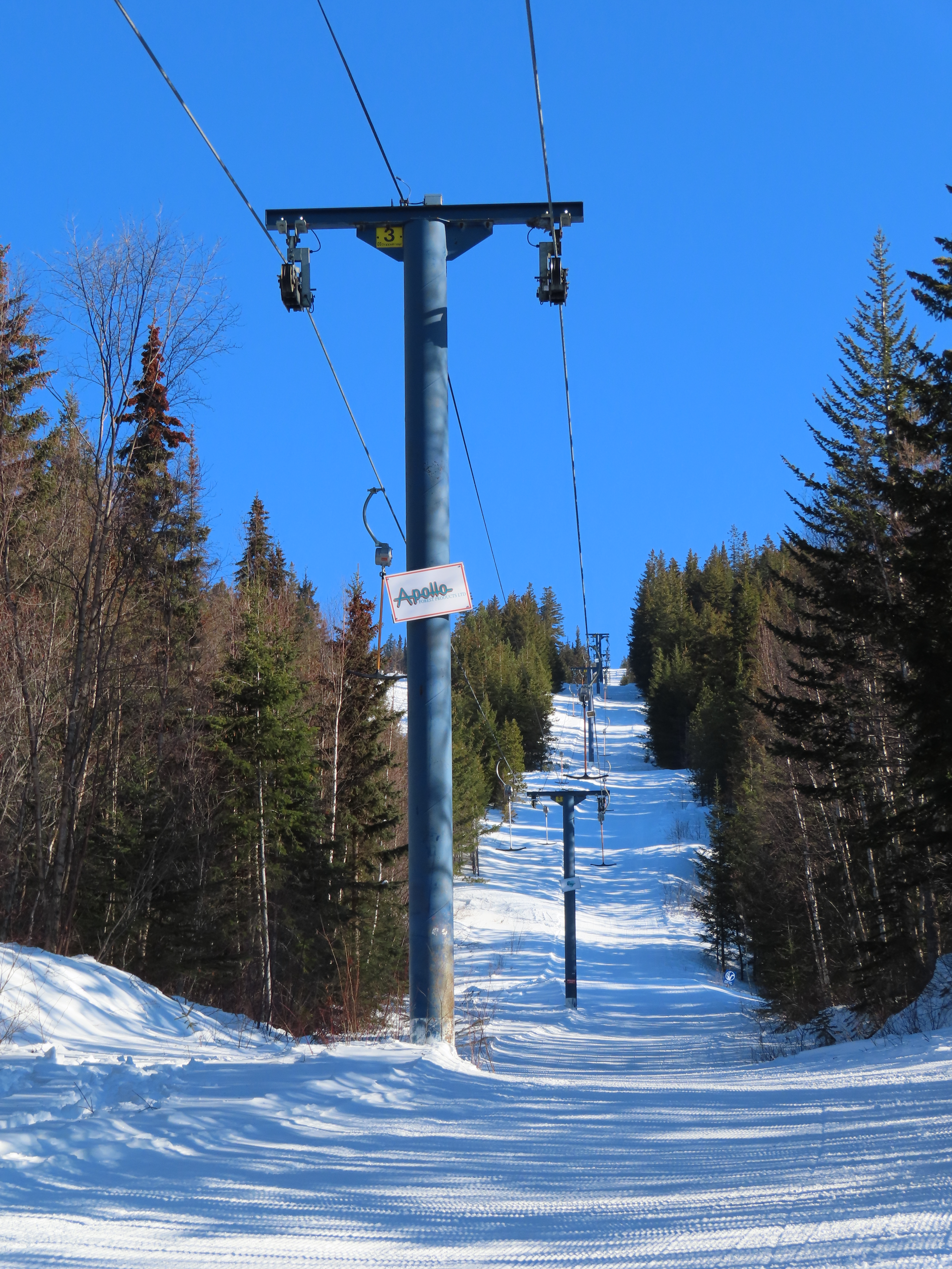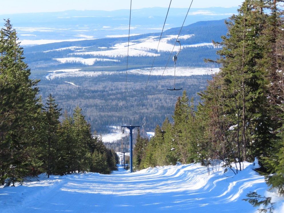 Behold the longest T-Bar in North America, spanning more than 6,400 feet.Drive station with propulsion in the adjacent building.View up from the base area.Side view of the bottom station.A T.View up at tower 2.There are three official unload point, the first of which is at tower 3.View down the middle part of the lift line.Tower 7.Nearing the summit.View down the track.View near the summit.Top terminal with counterweight tensioning.View from the unload point at tower 15.T14 view.Lower lift line at tower 3.Second unload point at tower 8.View riding up the line.Side view of the summit station.Lift line with very wide tower spacing.