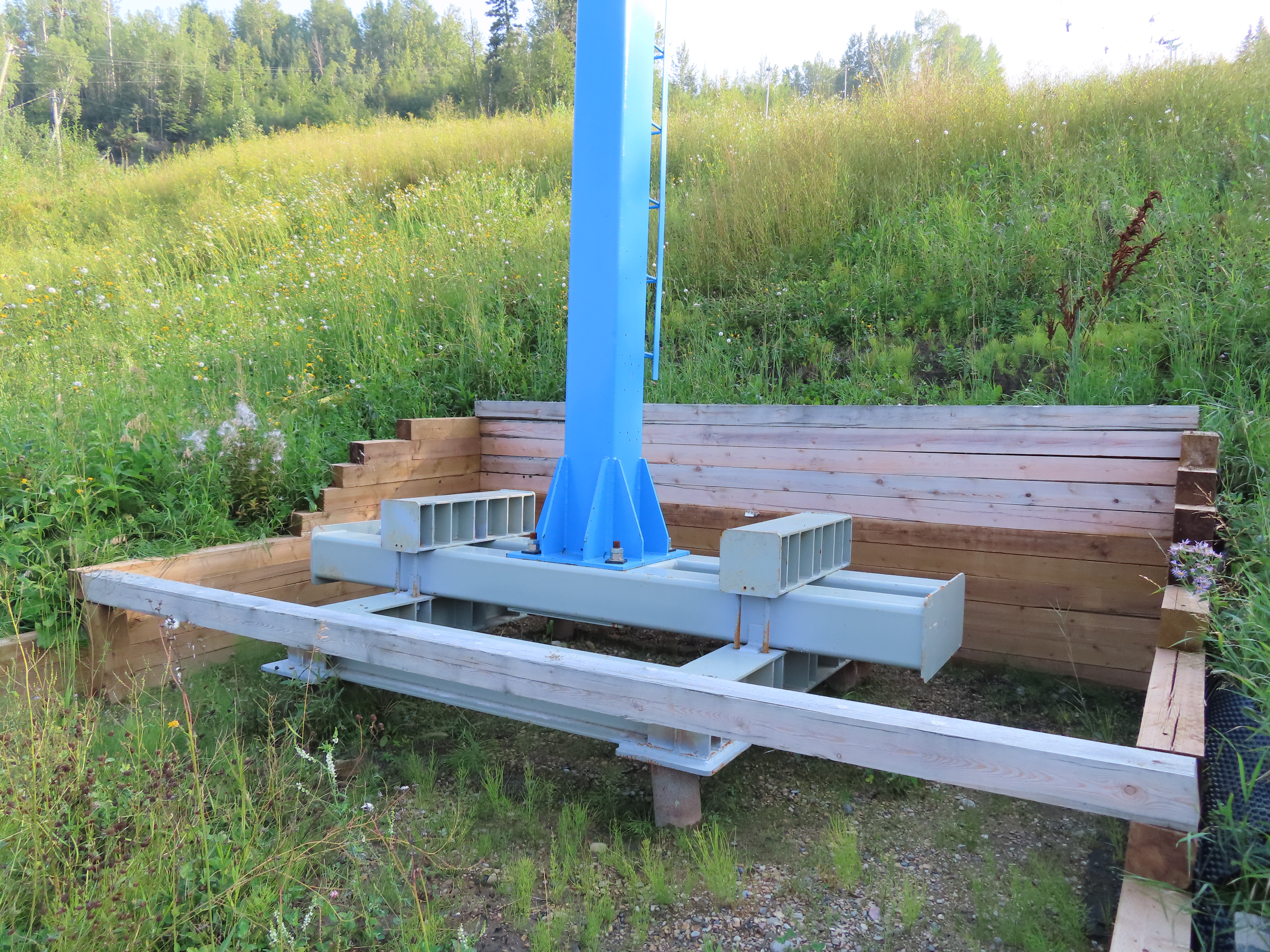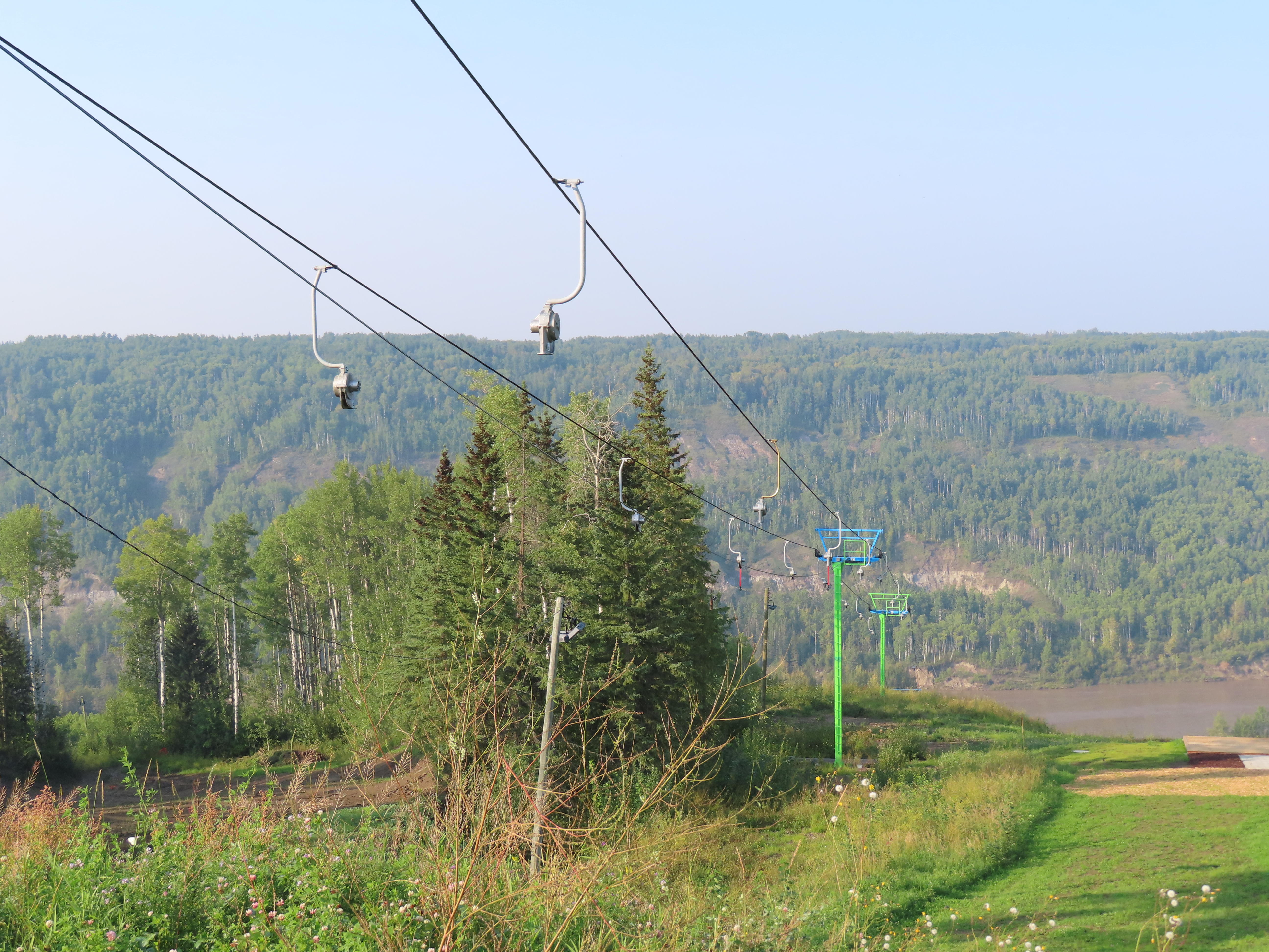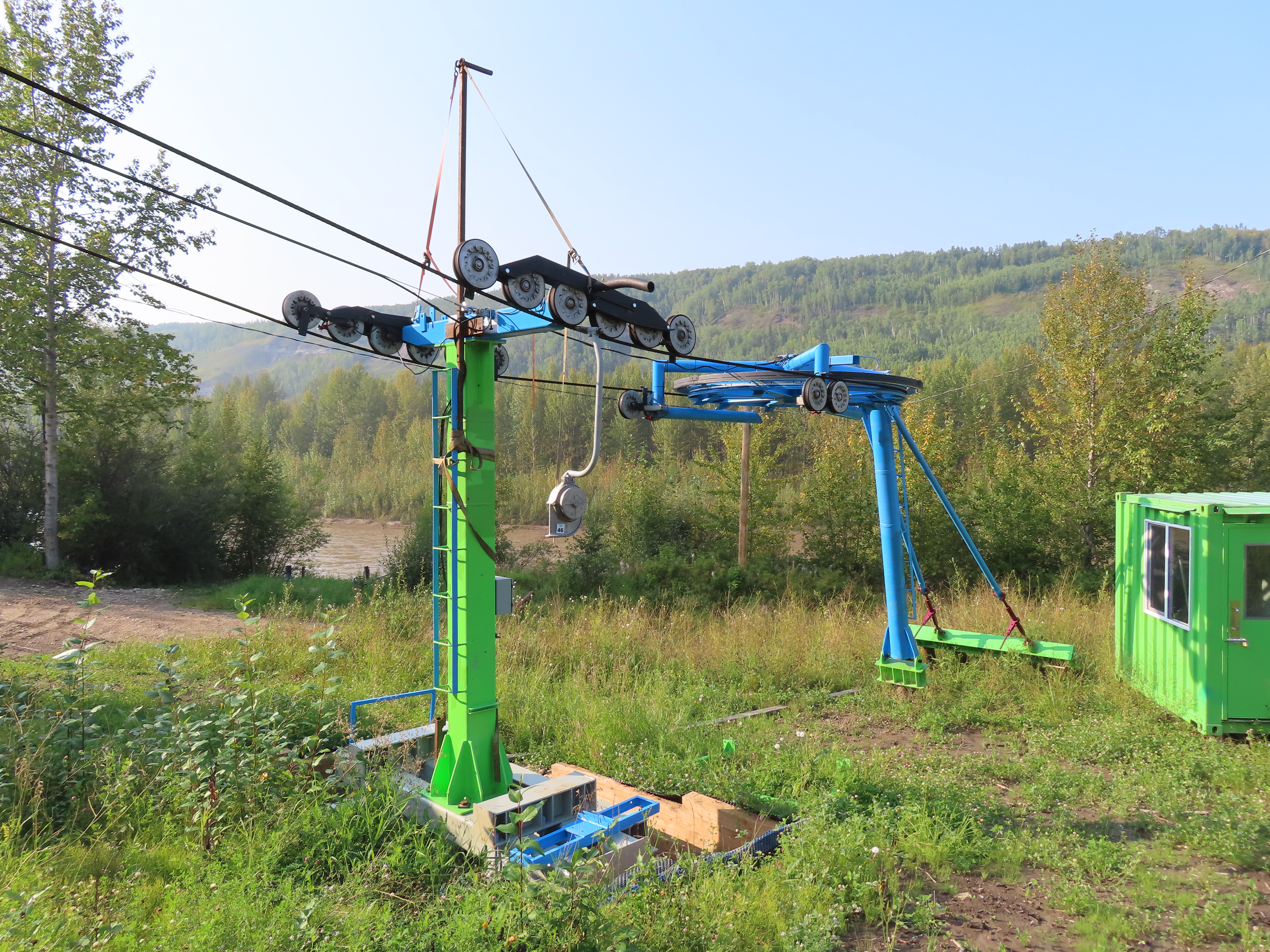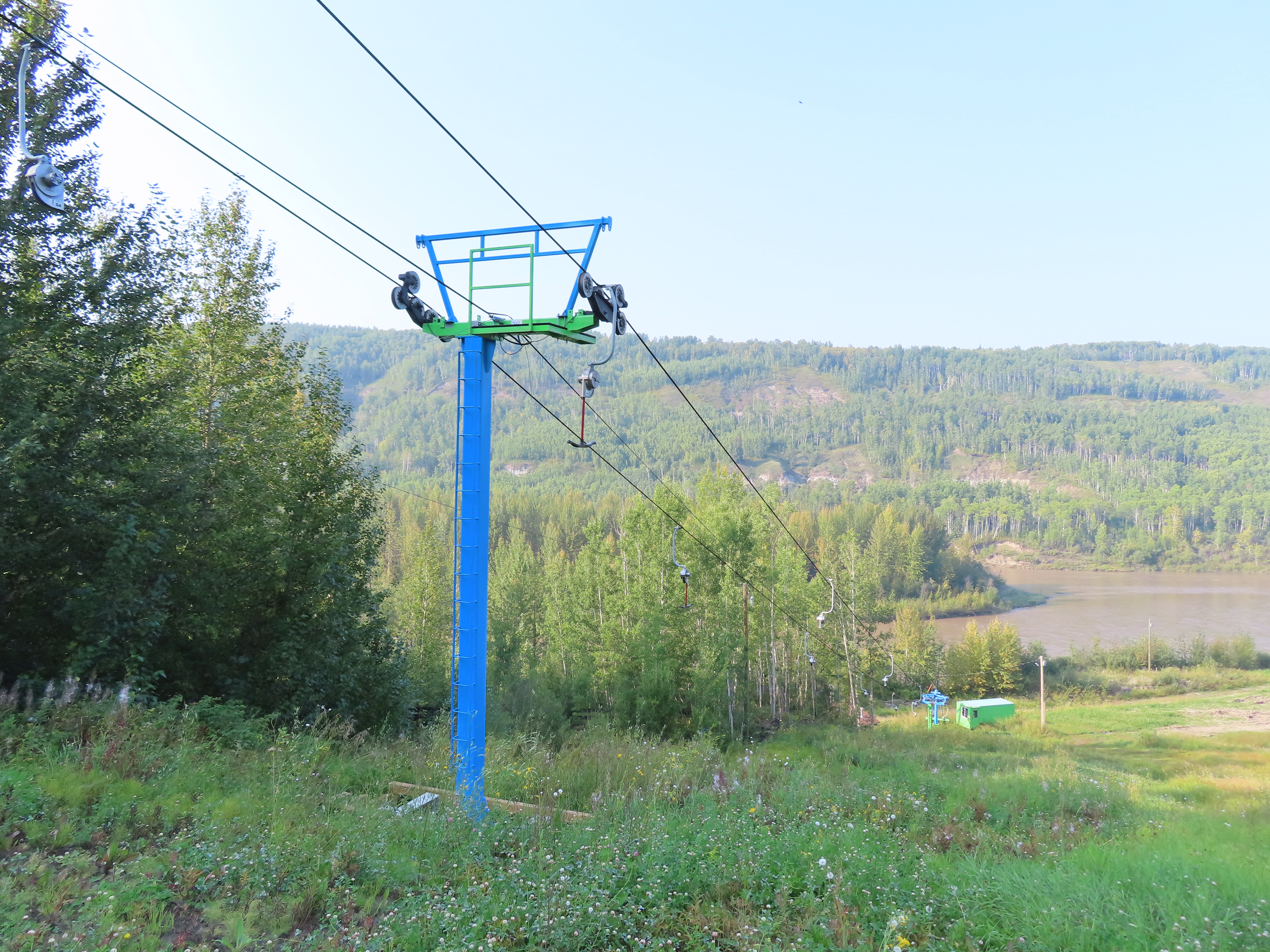 This lift came used from Lake Louise and was converted from a platter to a T-Bar.All the towers are adjustable due to possible ground movement.View up the line from the base terminal.This was the top terminal at Lake Louise but is the bottom here.Another view of the return station.Tower 2.View up at tower 3.Tower foundation.Looking down the line.Upper part of the lift line.Tower 7 side view.View from the summit.Top station with drive and tensioning.Upper station overview.