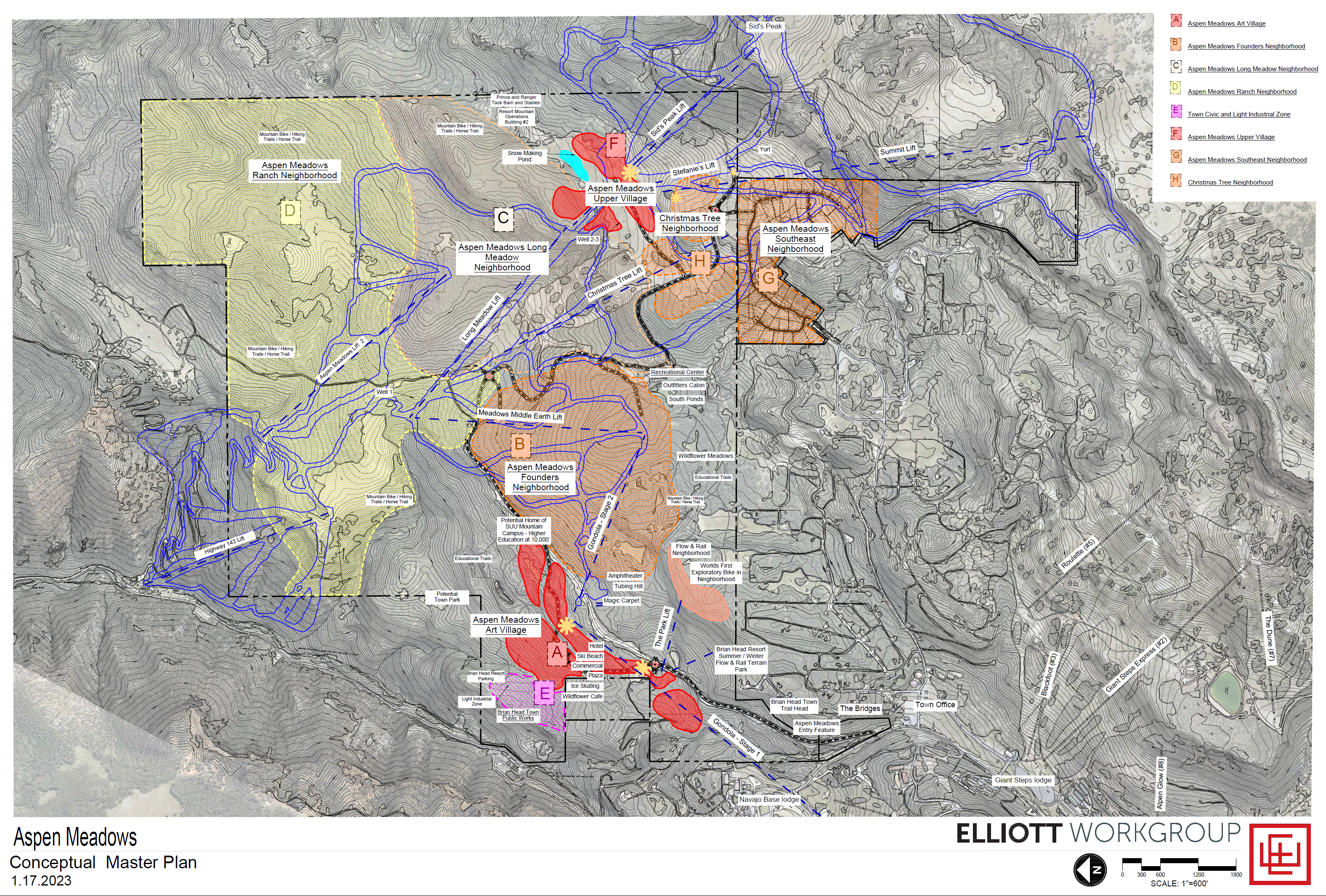 Finally is the Aspen Meadows to Highway 143 pod with a substantial new day skier portal called Art Village. This pod, located on private land, would include an eight passenger pulse gondola linking to Brian Head’s existing Navajo base. From Art Village, skiers could connect to numerous lifts including four conveyors, six fixed triples and a detachable quad called Long Meadows. The Forest Service notes construction on this pod could begin before or concurrent with projects on public land as it is not subject to the EIS.