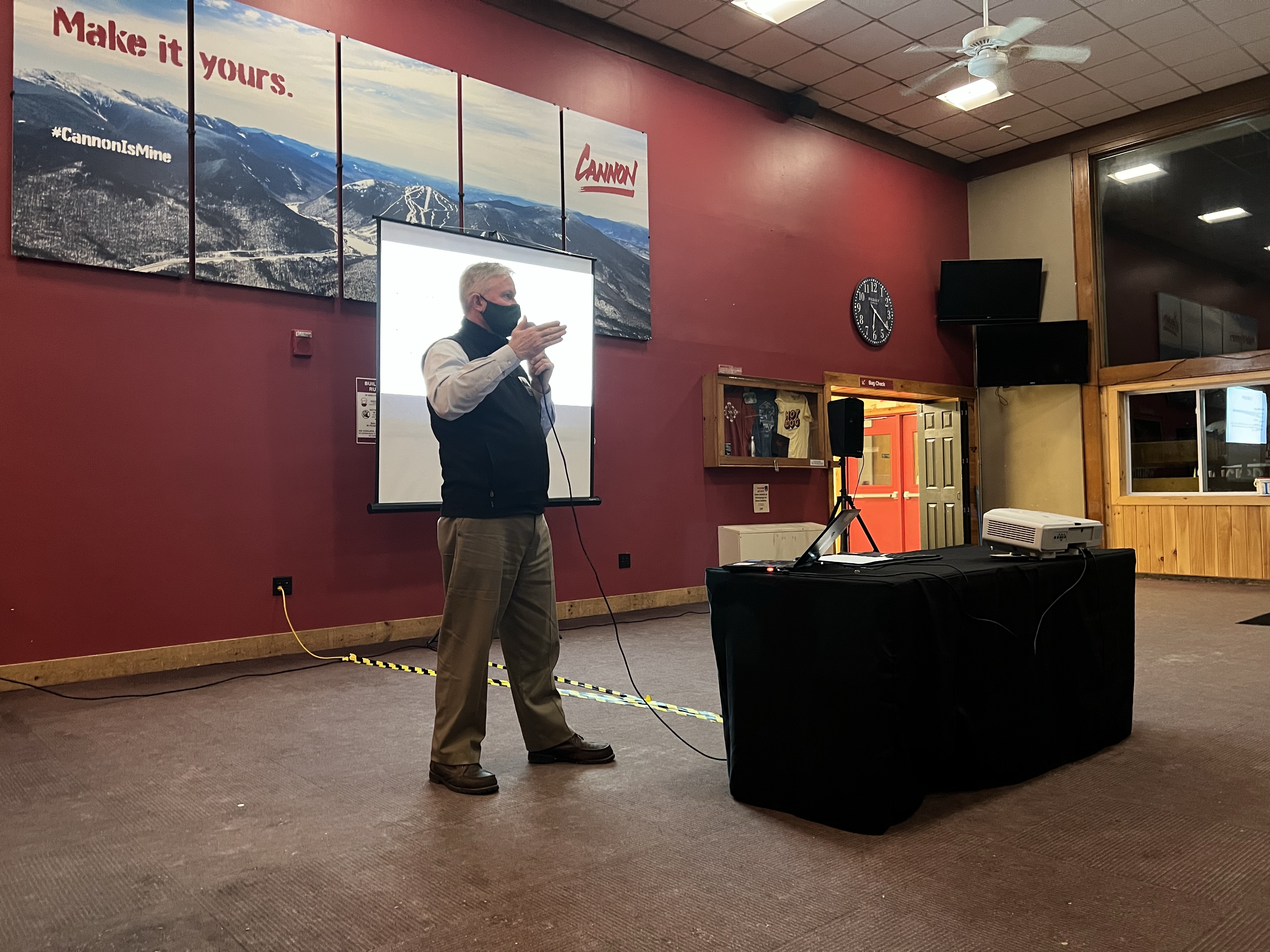 New Hampshire State Parks leaders gathered interested public tonight to present alternatives for future lift service on Cannon Mountain’s east side. At issue is the Cannon Mountain Aerial Tram, which turns 43 this year. Cannon General Manager John DeVivo and Parks Director Phil Bryce said the state is at a crossroads because multiple systems are in need of overhaul and parts are becoming more difficult to source.