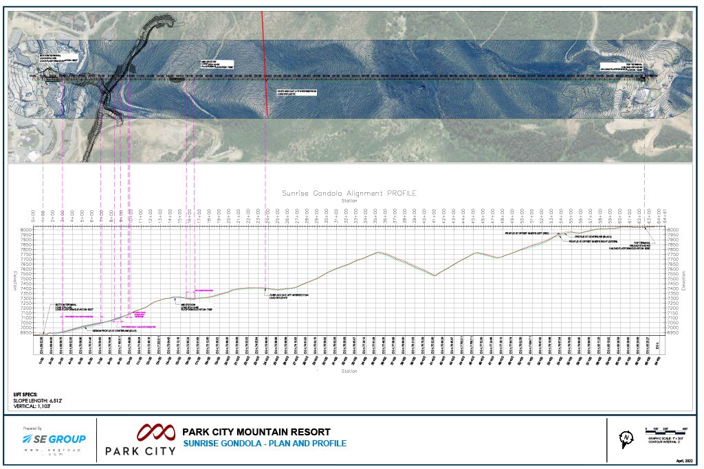 The 6,512 foot long gondola will replace the Sunrise double and run along an undulating alignment crossing the existing Over and Out quad. 10 passenger cabins will carry riders 1,103 vertical feet between the village and mid-mountain. The bottom terminal will be located near the new Pendry hotel and the top will sit near the Saddleback Express and High Meadow Express lifts.