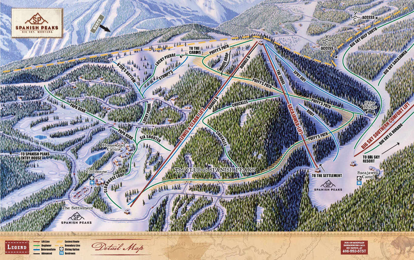 Spanish Peaks was developed by timber billionaire Tim Blixseth, (who founded the neighboring Yellowstone Club) and James Dolan, the CEO of Cablevision. Doppelmayr built all 5 of Spanish Peaks’ lifts in the summer of 2005. In addition to Lewis & Clark, there are 2 triples and 2 platters. Lifts and trails opened for the 2005-06 ski season.