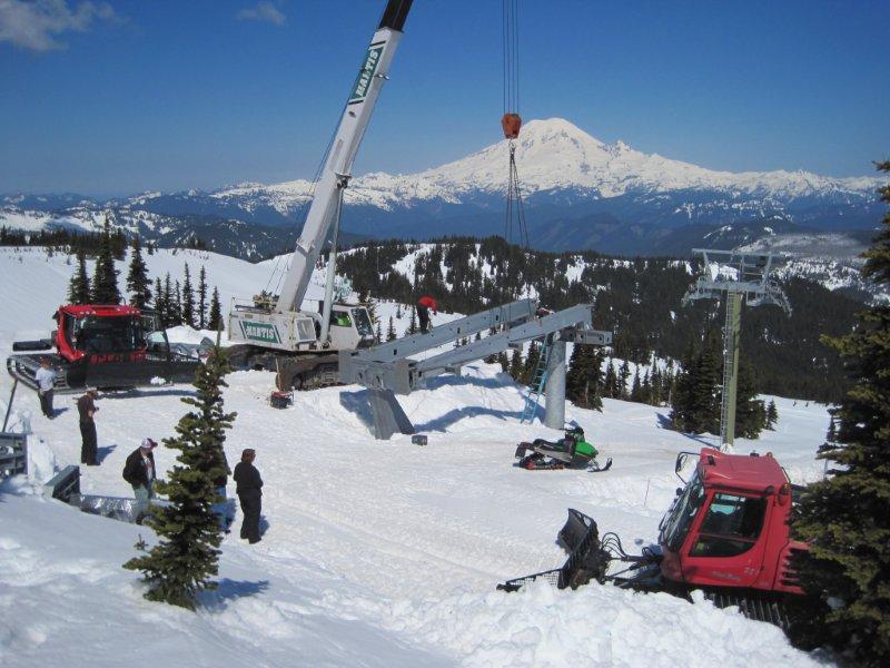 Building the Couloir Express over snow with a unique construction schedule due to environmental concerns. Photo credit: White Pass Ski Area
