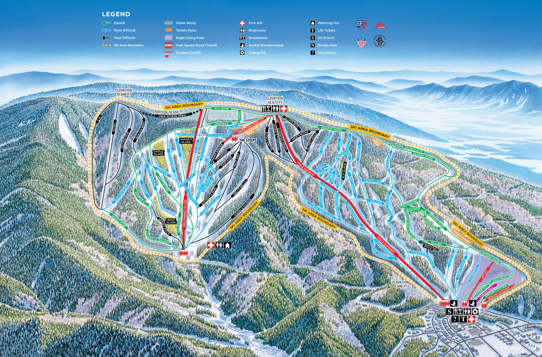 The Golden Eagle Express was constructed by Leitner-Poma in 2000 and is a workhorse, operating daily in both winter and summer as well as nights. It’s one of the longest and tallest gondolas in North America with 55 cabins carrying skiers more than 3,500 vertical feet. Without the gondola, approximately 70 percent of the mountain cannot be accessed.